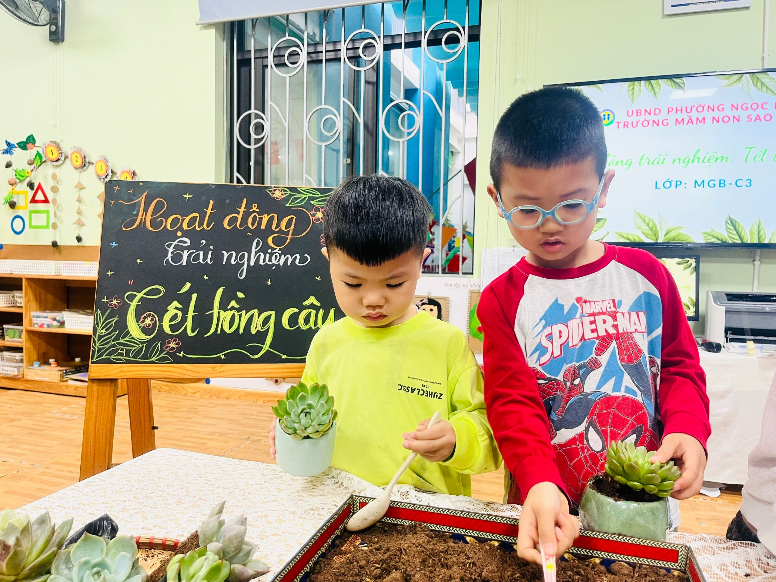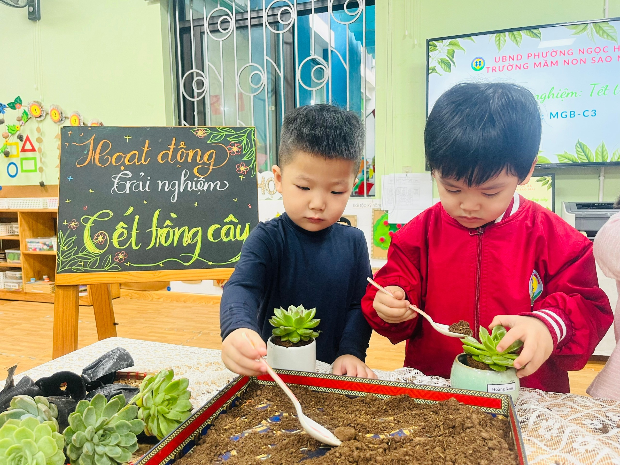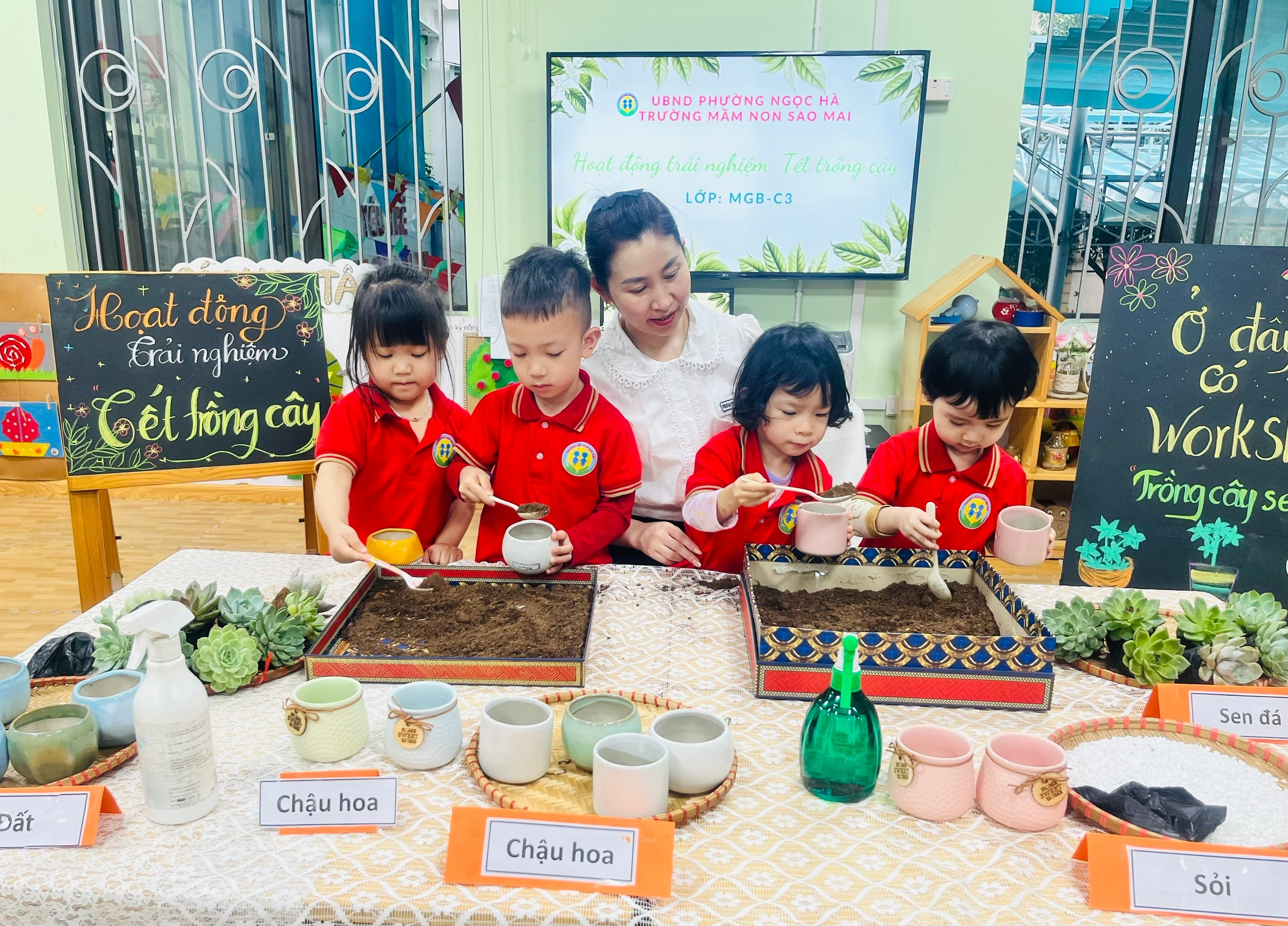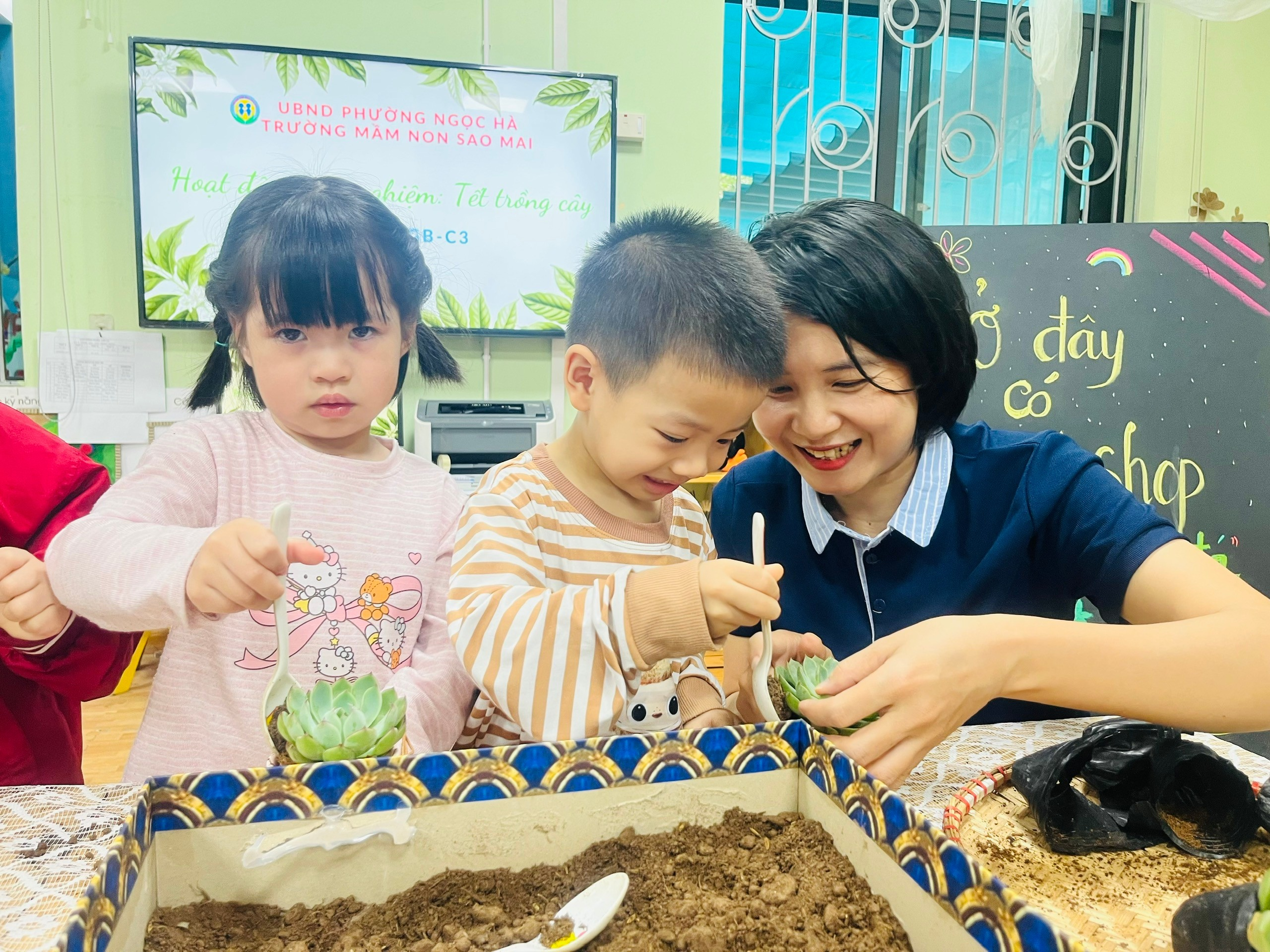 Đặc biệt, tinh thần hào hứng, tự giác và hợp tác của các bạn nhỏ lớp C3 thật đáng khen ngợi. Dù còn nhỏ tuổi, các con đã biết lắng nghe hướng dẫn của cô giáo, chia sẻ dụng cụ với bạn và cùng nhau hoàn thành hoạt động trong không khí vui tươi, đoàn kết. Mỗi chậu sen đá không chỉ là một mầm xanh của thiên nhiên mà còn là biểu tượng của tình yêu thương, sự trưởng thành và ý thức trách nhiệm đang được nuôi dưỡng từng ngày trong tâm hồn trẻ thơ.