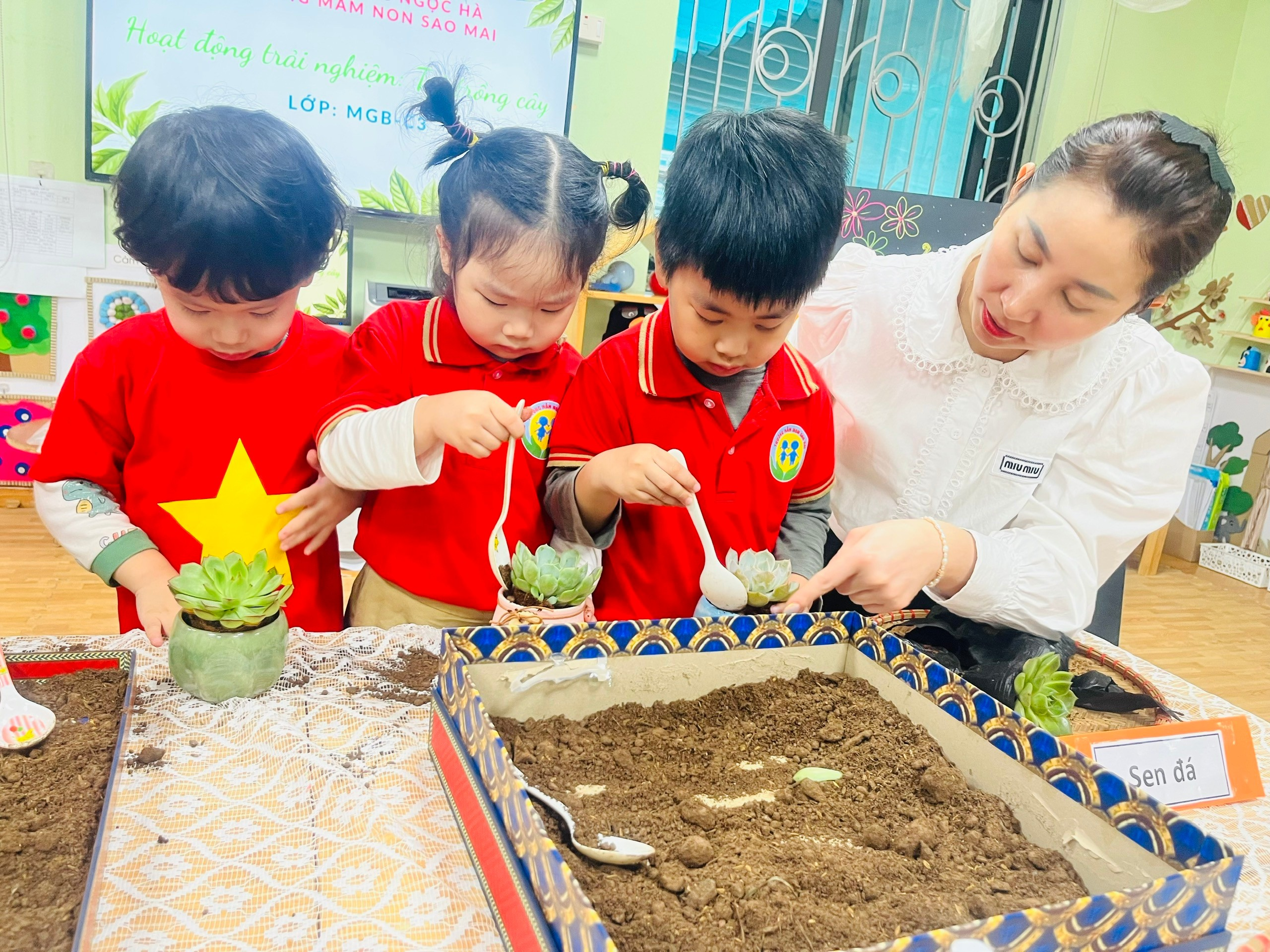 Lời dạy giản dị mà sâu sắc ấy không chỉ nhấn mạnh tầm quan trọng của việc bảo vệ môi trường, mà còn đề cao vai trò của giáo dục trong việc vun trồng thế hệ tương lai. Thực hiện lời Bác, hoạt động trải nghiệm “Trồng cây sen đá” của các bé lớp C3, Trường Mầm non Sao Mai chính là một việc làm nhỏ nhưng mang ý nghĩa lớn – gieo vào tâm hồn trẻ thơ tình yêu thiên nhiên, ý thức trách nhiệm và những thói quen tốt đẹp ngay từ những năm tháng đầu đời.
