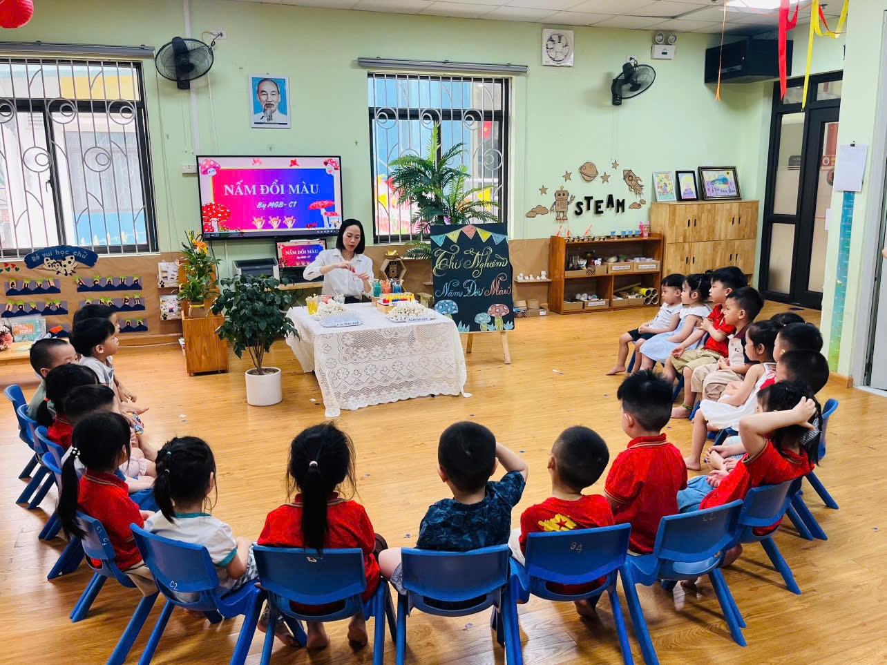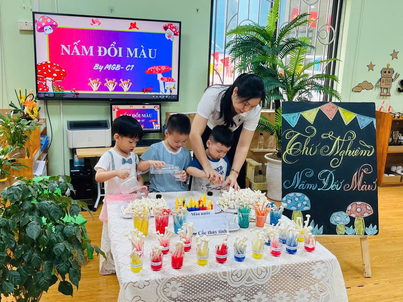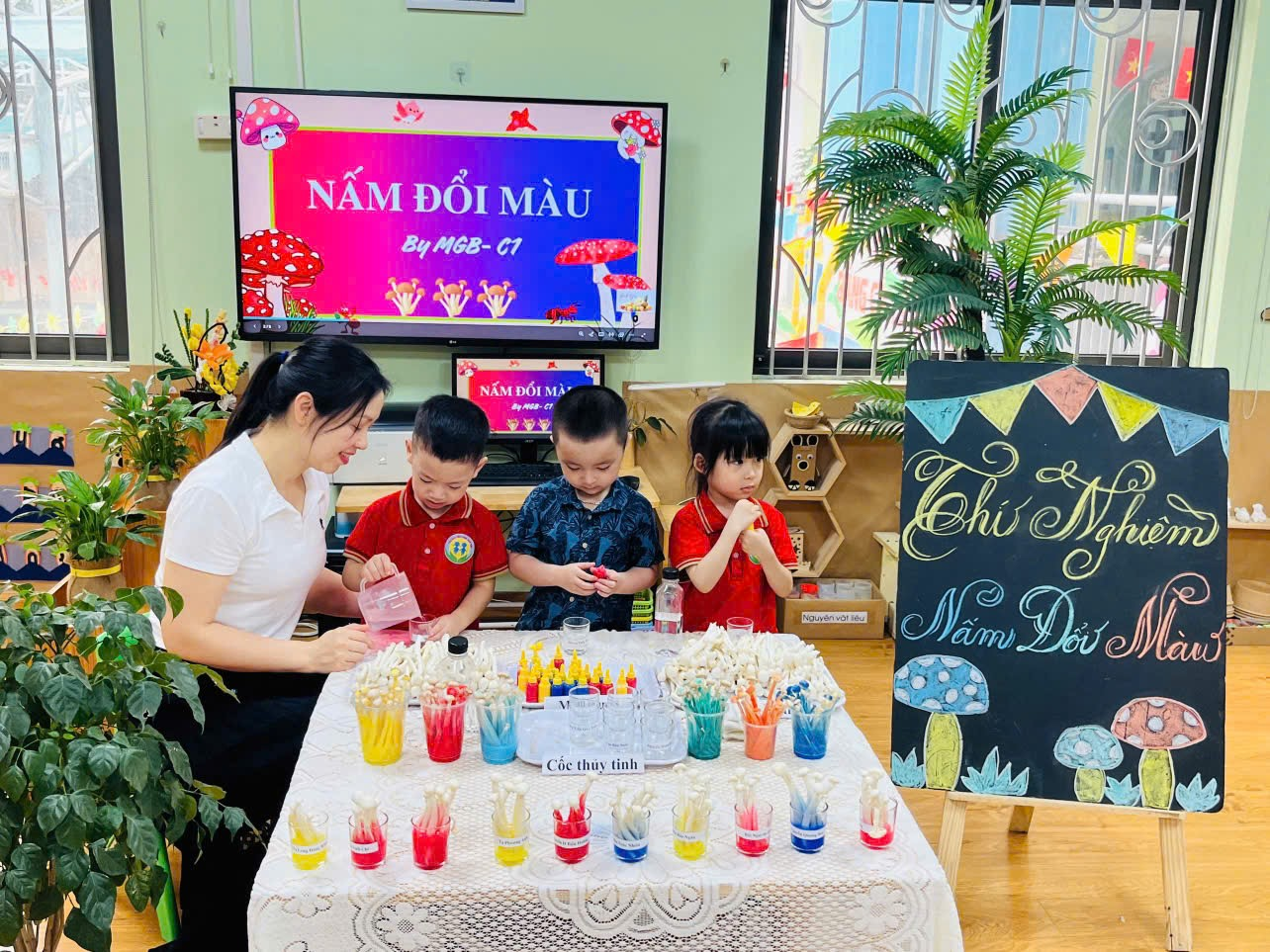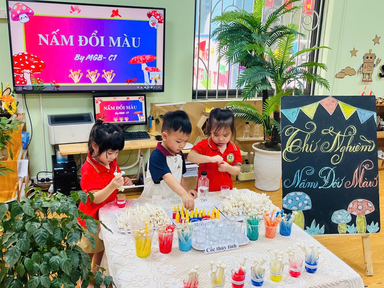 Thí nghiệm “Nấm đổi màu” đã mang lại cho các bé những trải nghiệm bổ ích và niềm vui trong học tập. Kết thúc hoạt động, mỗi bạn nhỏ đều tự hào với sản phẩm của mình, góp phần làm phong phú thêm hành trình khám phá thế giới đầy sắc màu của các bé lớp C1.