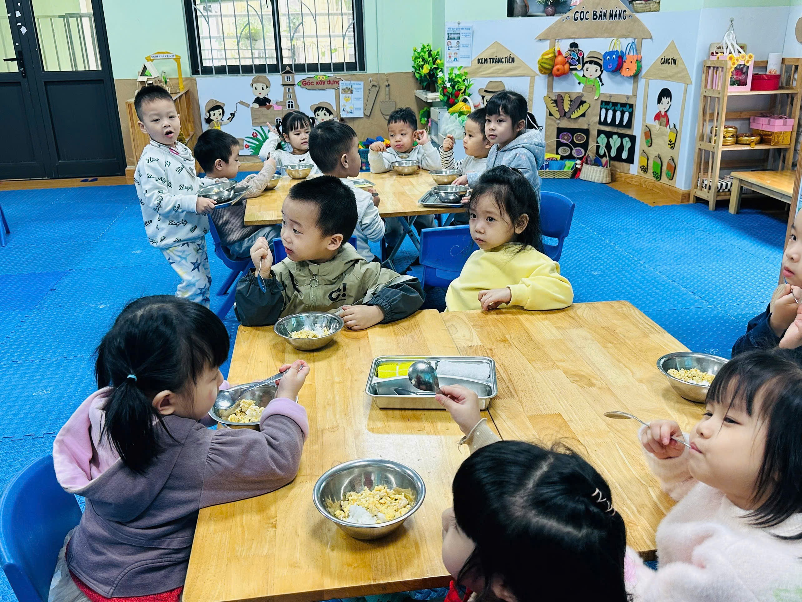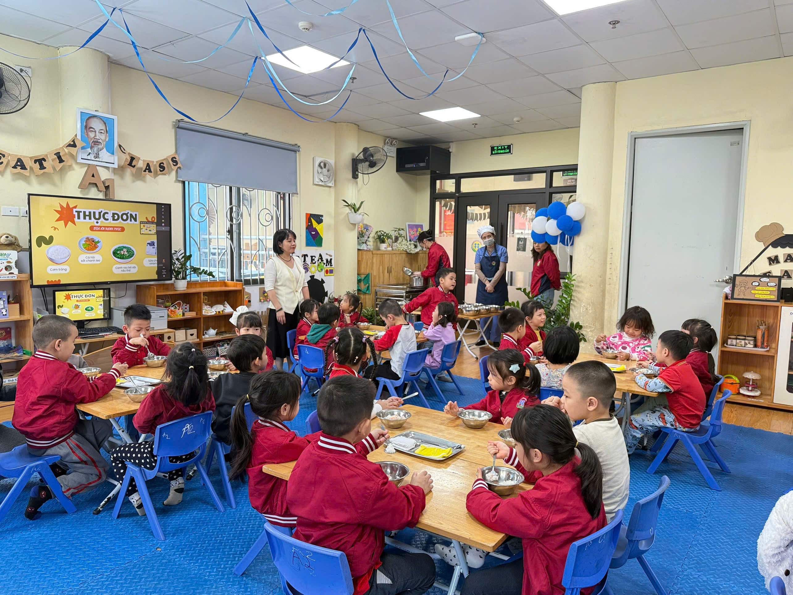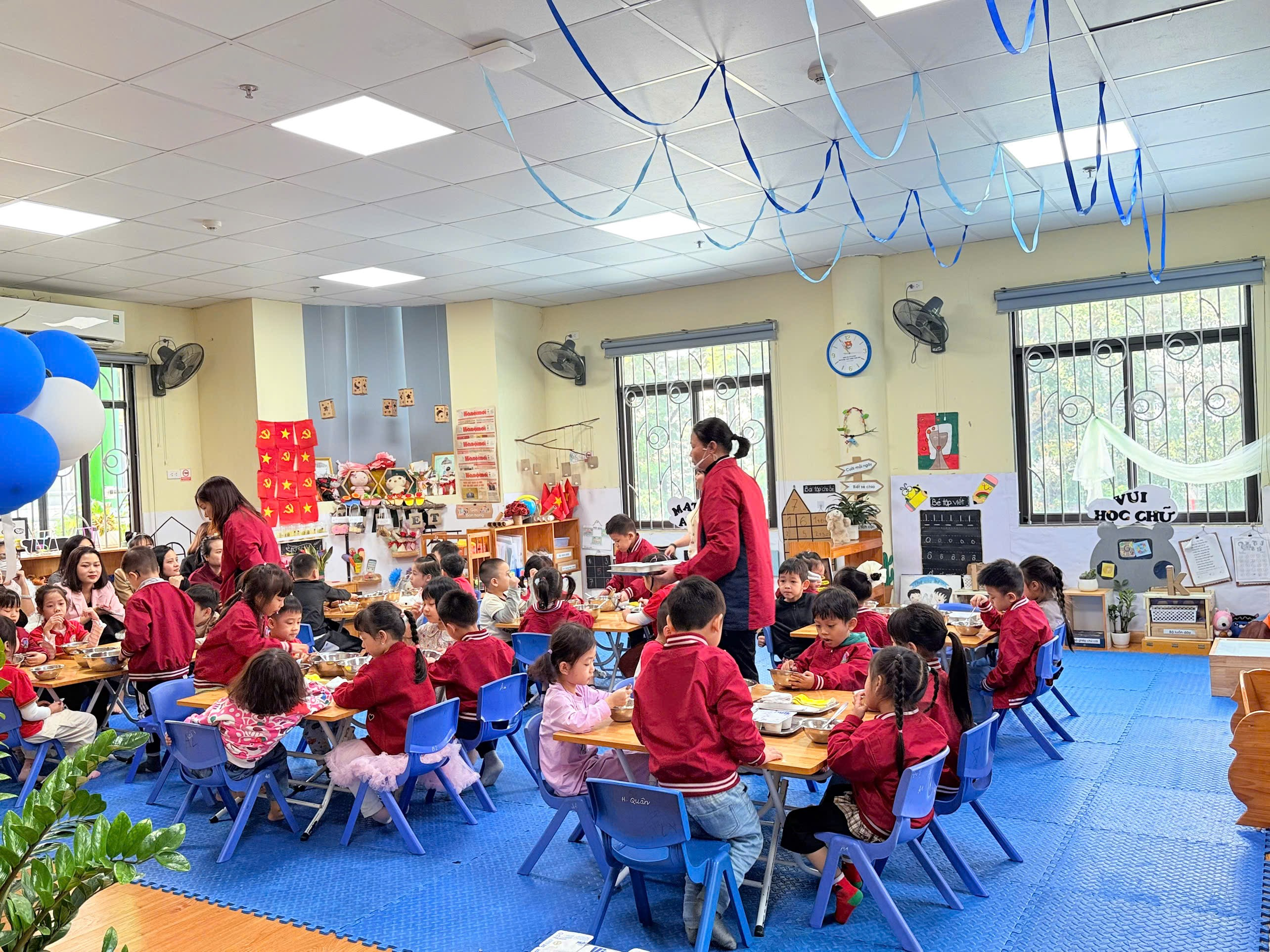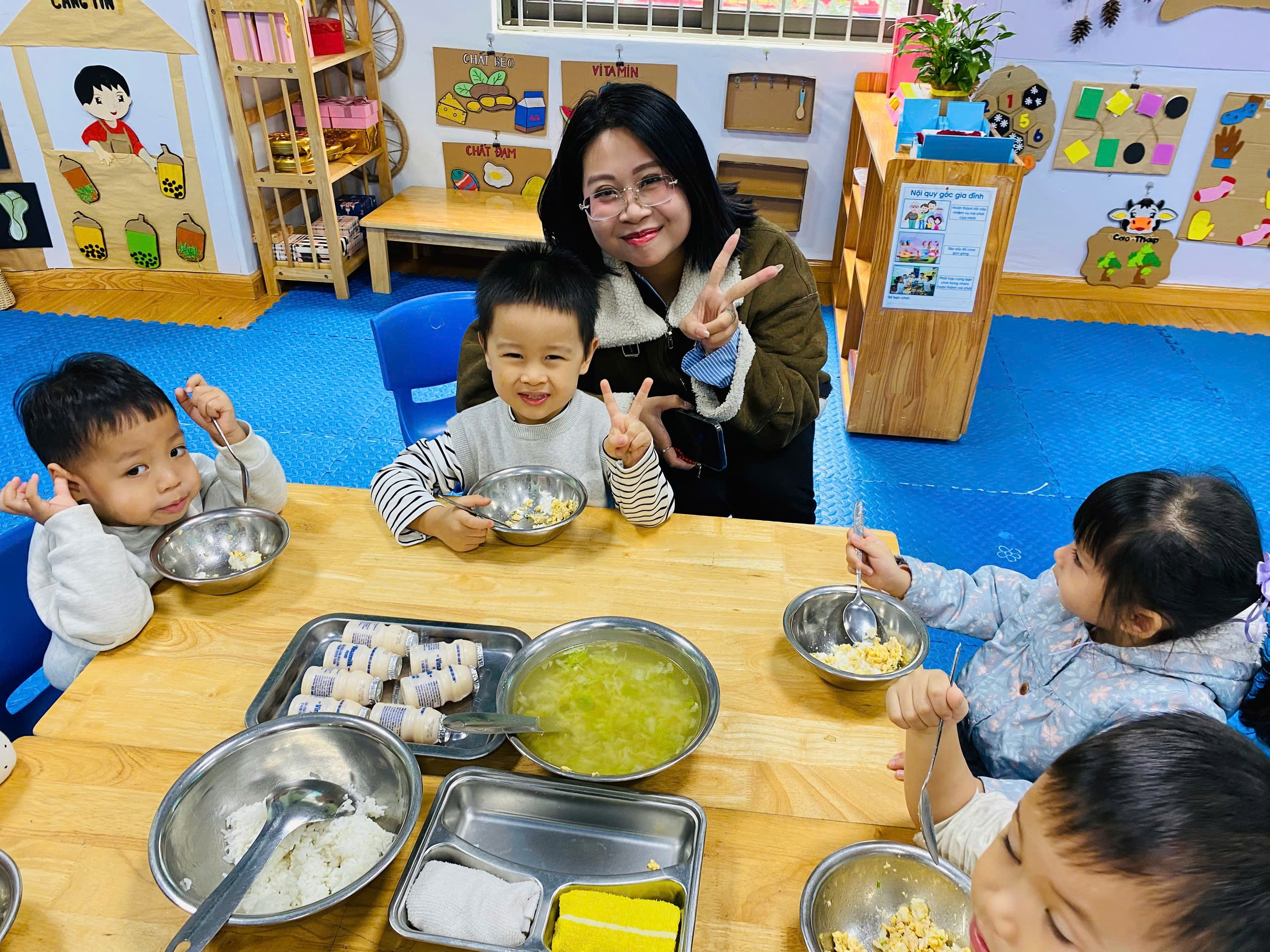 Không chỉ chú trọng khẩu phần dinh dưỡng, nhà trường còn đặt nặng yếu tố giáo dục: hình thành thói quen ăn uống văn minh, khuyến khích trẻ mạnh dạn, tự lập và biết chia sẻ với bạn bè. Nhiều phụ huynh chia sẻ sự bất ngờ và vui mừng khi thấy con mình ăn ngon miệng, biết tự phục vụ và hợp tác tốt cùng cô và bạn trong giờ ăn, những điều đôi khi cha mẹ ít có cơ hội quan sát tại nhà.
