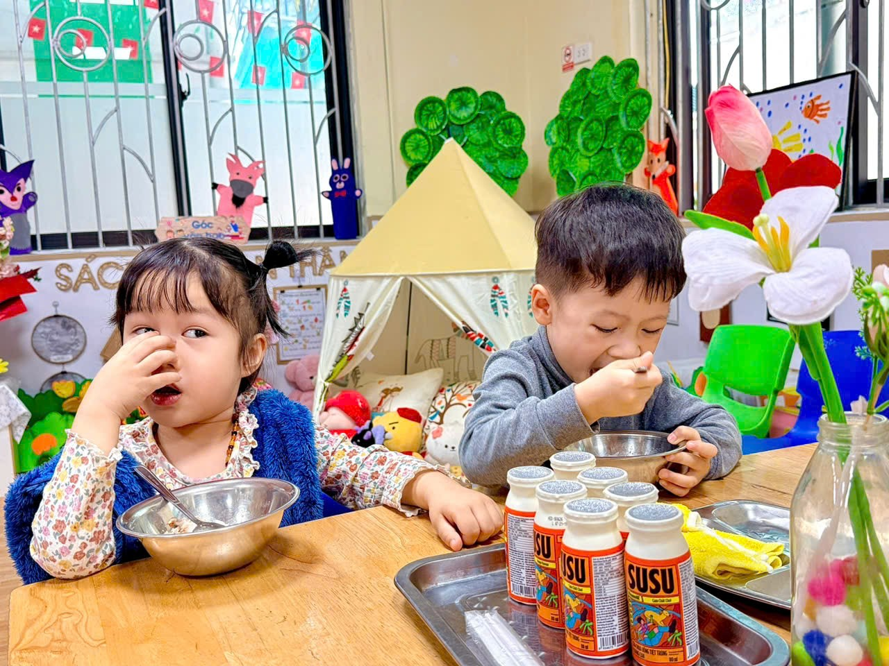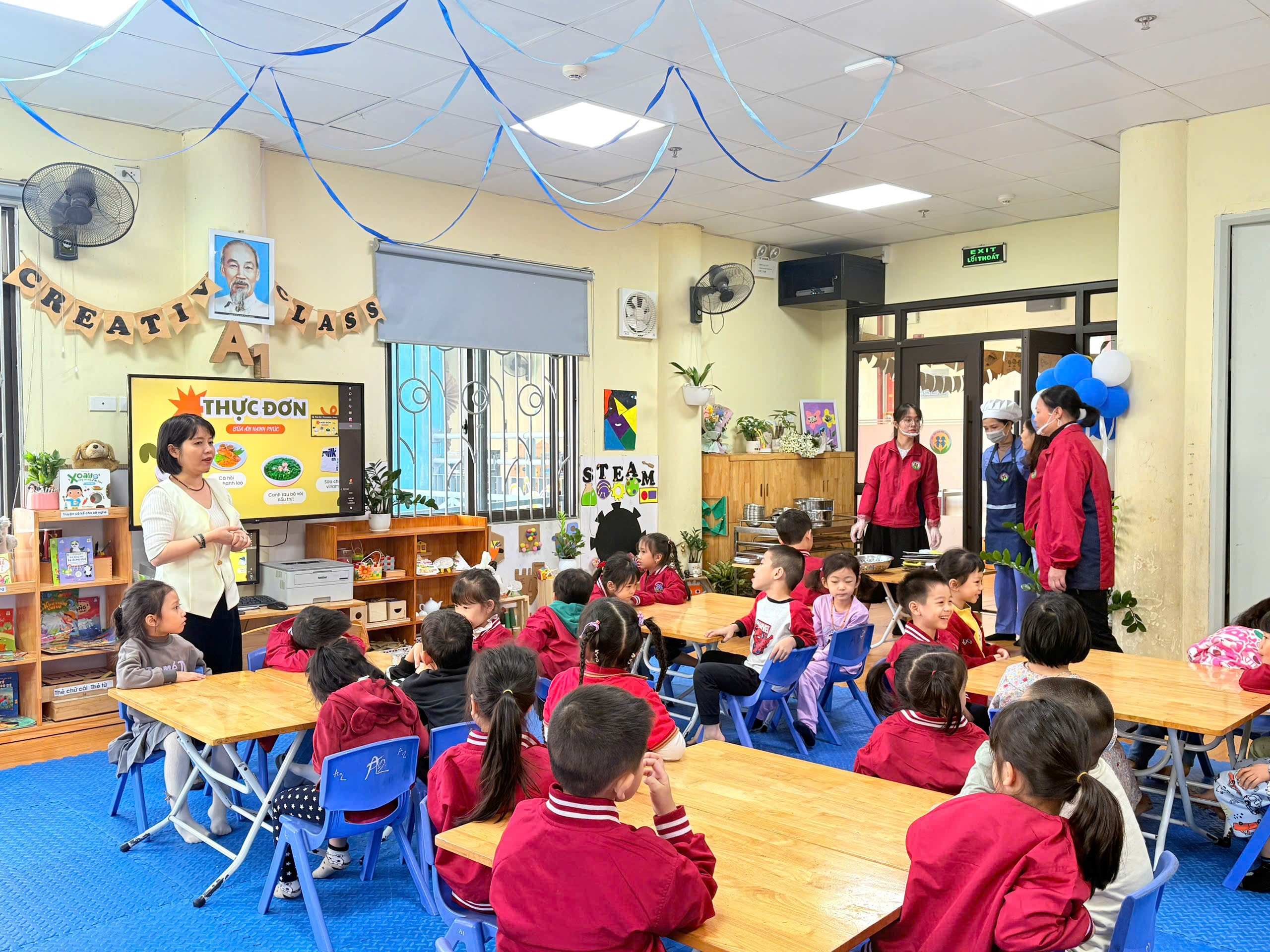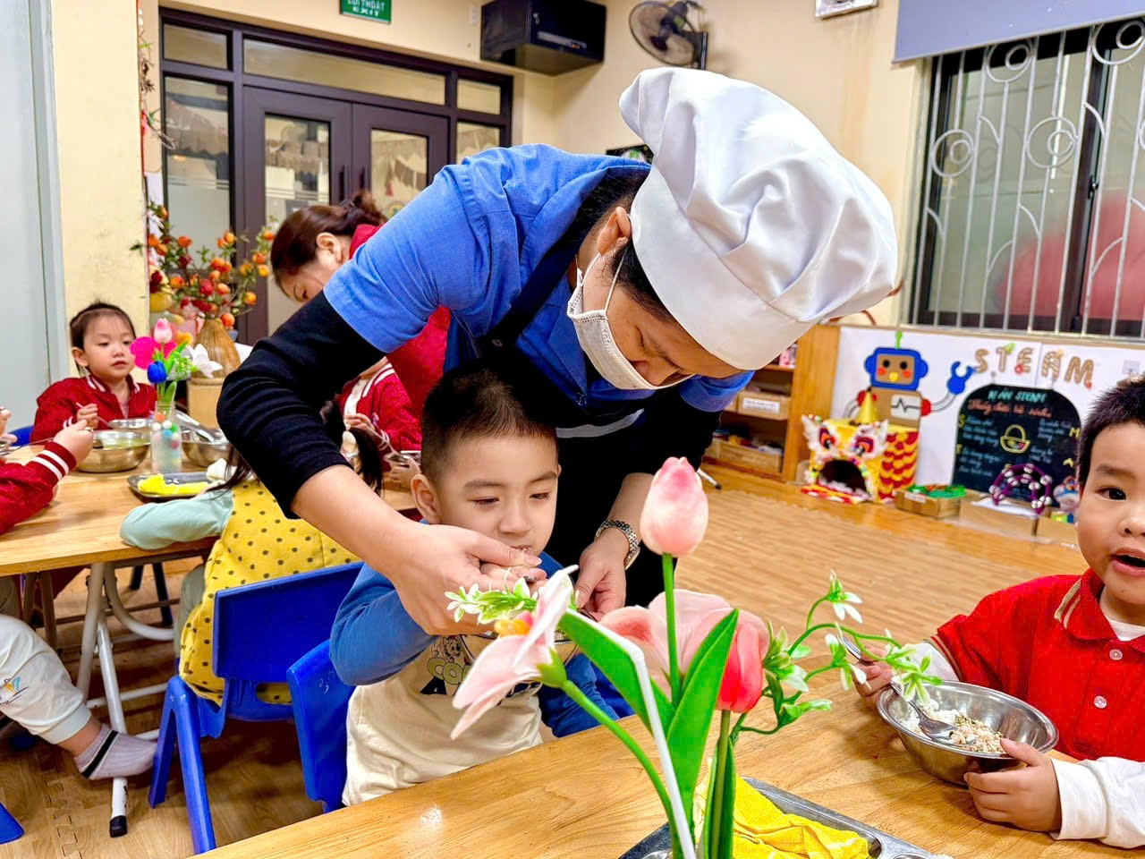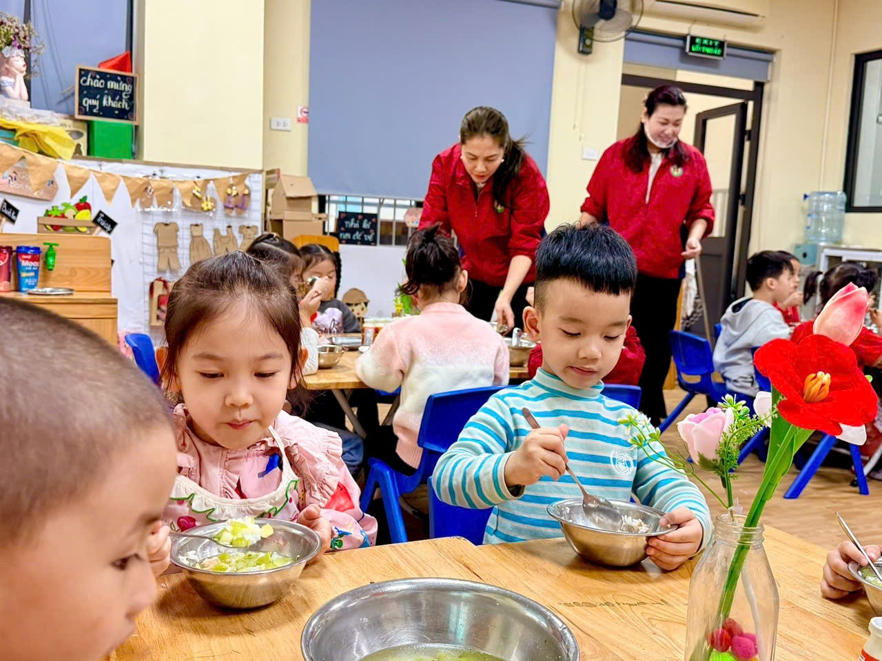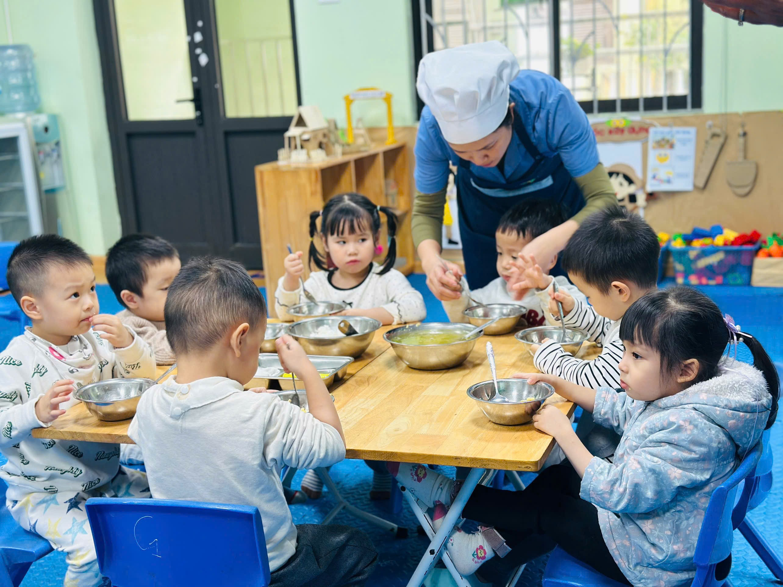 Không chỉ chú trọng khẩu phần dinh dưỡng, nhà trường còn đặt nặng yếu tố giáo dục: hình thành thói quen ăn uống văn minh, khuyến khích trẻ mạnh dạn, tự lập và biết chia sẻ với bạn bè. Nhiều phụ huynh chia sẻ sự bất ngờ và vui mừng khi thấy con mình ăn ngon miệng, biết tự phục vụ và hợp tác tốt cùng cô và bạn trong giờ ăn, những điều đôi khi cha mẹ ít có cơ hội quan sát tại nhà.