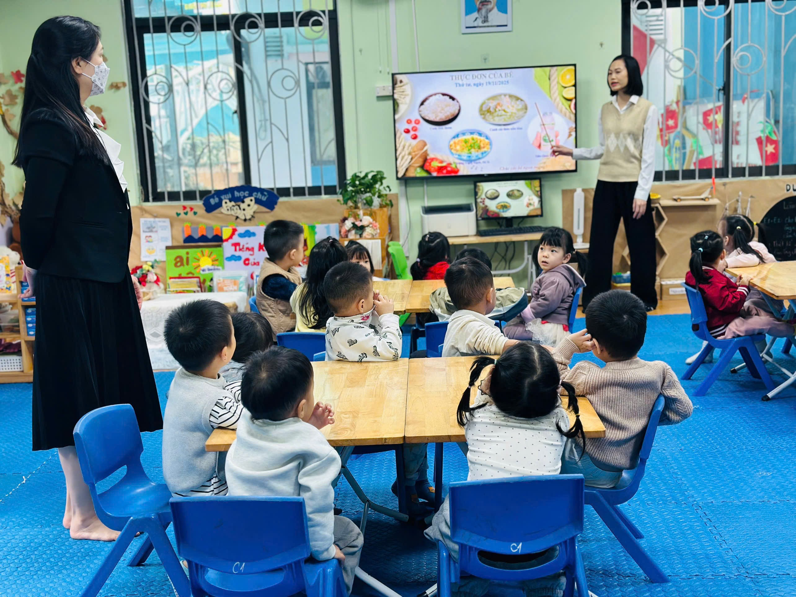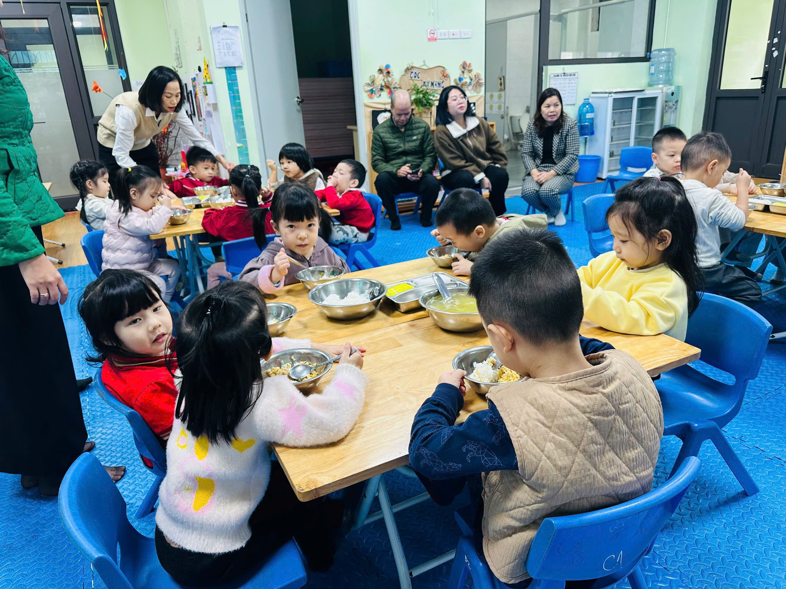 Bên cạnh việc theo dõi giờ ăn của trẻ, Ban Giám hiệu cũng dành thời gian trao đổi cùng phụ huynh về chế độ dinh dưỡng, cách cân bằng thực đơn, nhu cầu năng lượng của trẻ theo từng độ tuổi và một số lưu ý giúp rèn luyện thói quen ăn uống tích cực tại gia đình. Phụ huynh được lắng nghe, trao đổi, đặt câu hỏi và chia sẻ những mối quan tâm thực tế, từ đó tạo nên sự thấu hiểu và phối hợp hiệu quả giữa hai môi trường giáo dục quan trọng nhất của trẻ.