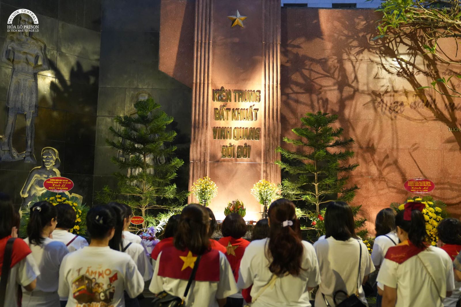 Đúng 18h30, đoàn Trường Mầm non Sao Mai đã có mặt tại khu di tích. Trong không khí trang nghiêm, dưới sự hướng dẫn của Ban tổ chức, đoàn đã thành kính dâng hương tại khu tưởng niệm – nơi ghi dấu những hy sinh anh dũng của các chiến sĩ cách mạng. Những nén hương thơm như lời tri ân sâu sắc gửi tới thế hệ cha anh đã ngã xuống vì độc lập, tự do của Tổ quốc.