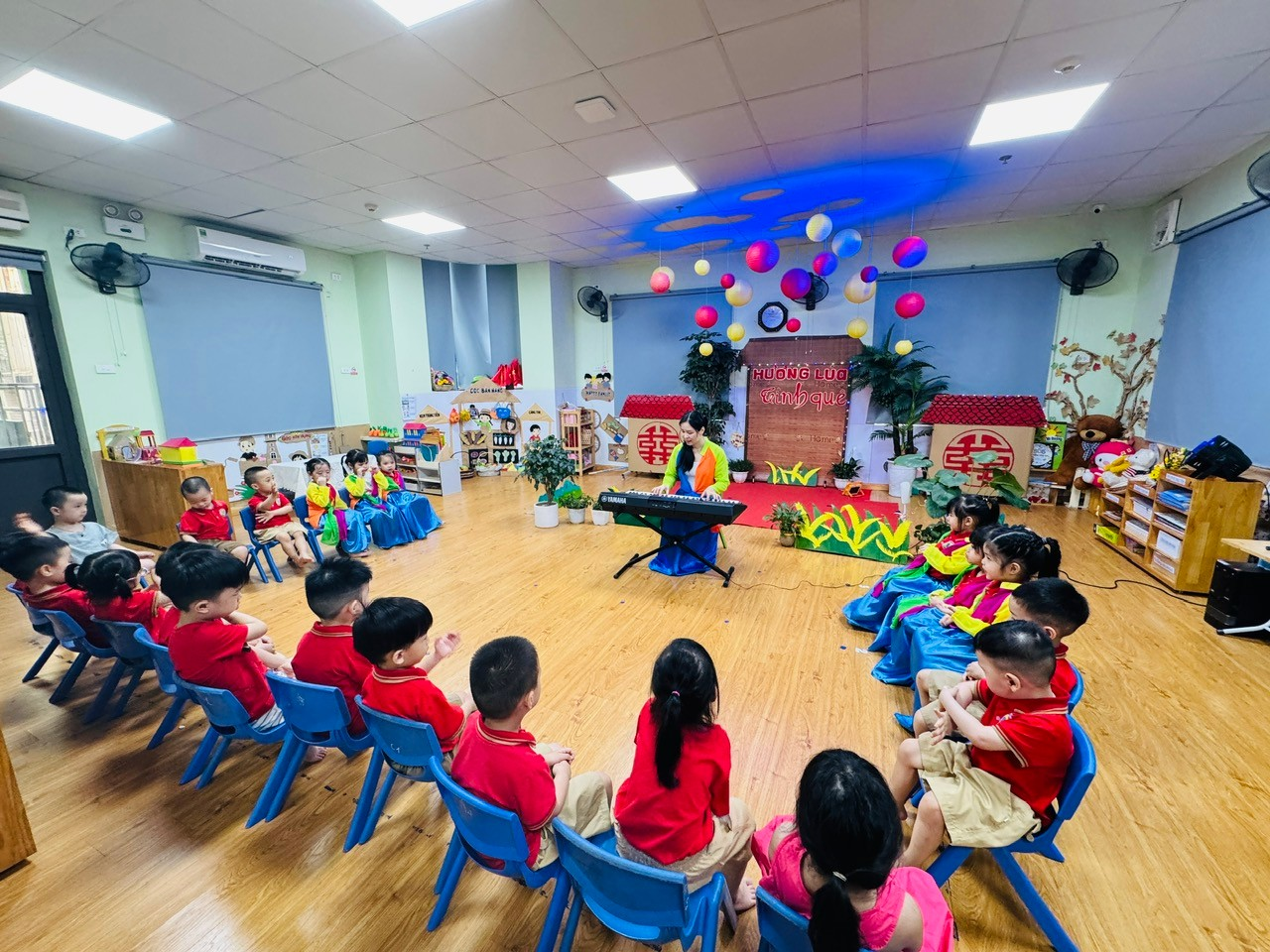 Thông qua hoạt động nghệ thuật “Hương lúa tình quê”, các bé không chỉ được rèn luyện kỹ năng nghe nhạc, cảm thụ âm nhạc mà còn được làm quen với những làn điệu dân ca truyền thống của dân tộc. Đây chính là nền tảng quan trọng giúp các con thêm yêu văn hóa Việt Nam, yêu bác nông dân, biết trân trọng những bát cơm thơm dẻo.