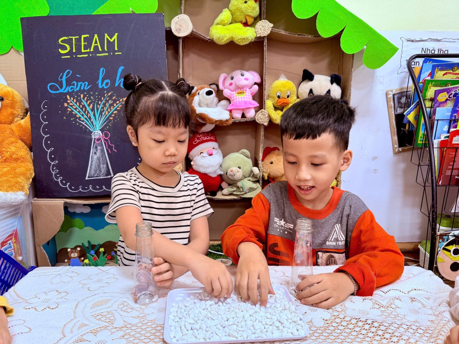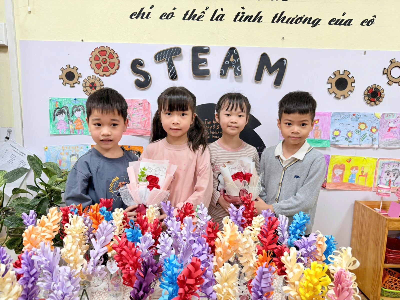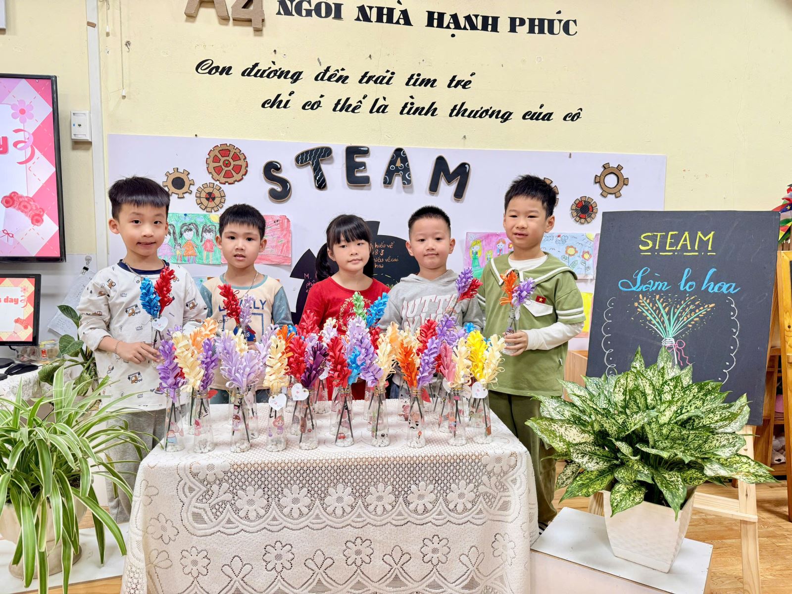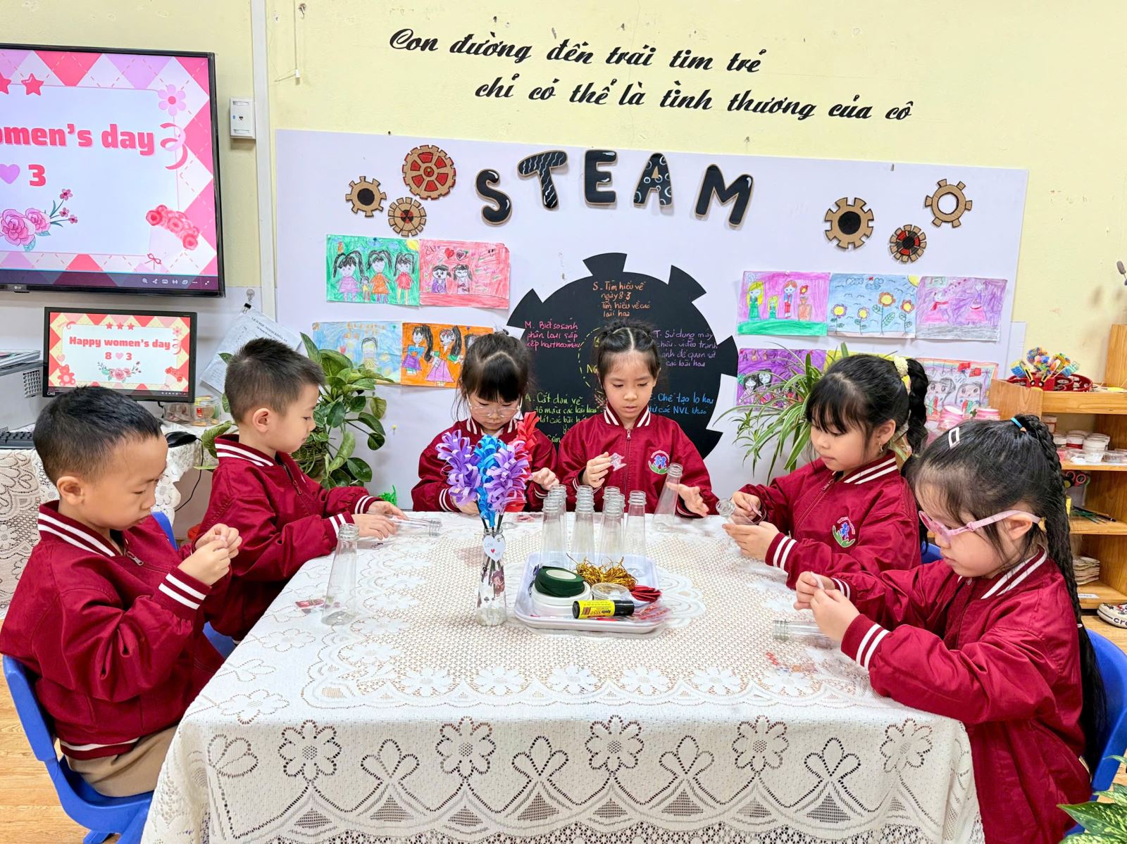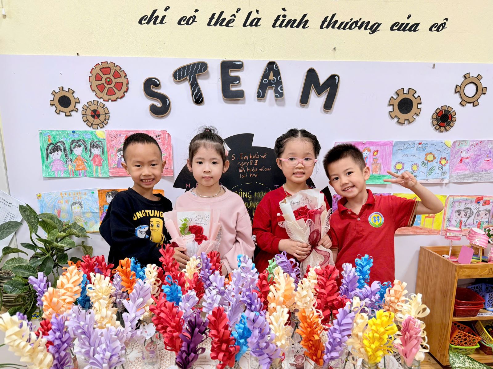 Thông qua hoạt động STEAM, các bé không chỉ được phát huy khả năng sáng tạo, rèn luyện sự khéo léo của đôi bàn tay mà còn học cách bày tỏ tình cảm, biết yêu thương và trân trọng những người phụ nữ thân yêu trong cuộc sống của mình. Những trải nghiệm nhỏ bé nhưng ấm áp ấy chính là những hạt mầm cảm xúc đẹp đang được gieo trồng mỗi ngày trong môi trường giáo dục hạnh phúc của Trường Mầm non Sao Mai.
