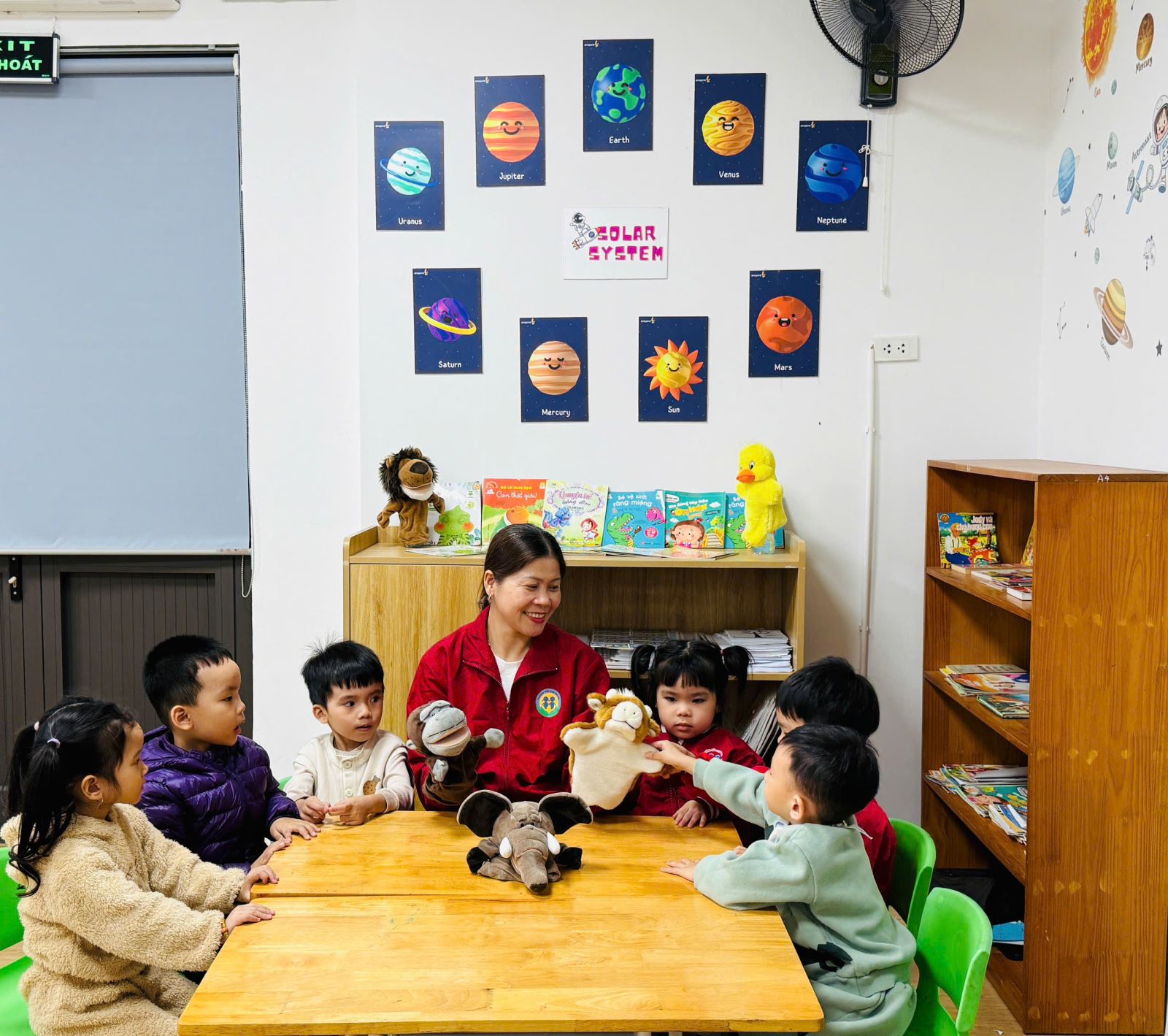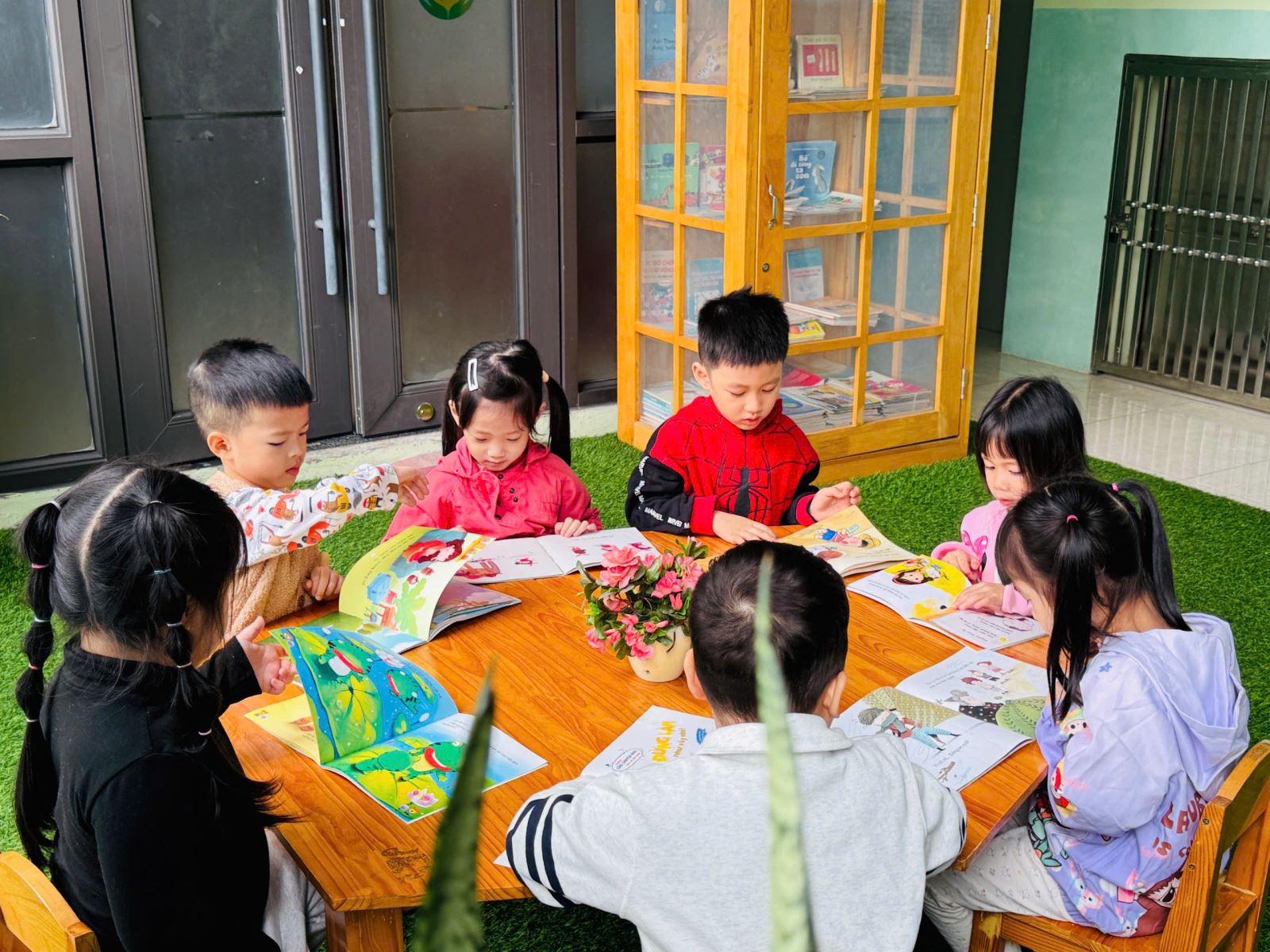 Nhằm tạo dựng một môi trường học tập thân thiện và giàu tính trải nghiệm, nhà trường luôn chú trọng phát triển các hoạt động gắn với sách. Giờ đọc sách tại góc thư viện đã trở thành một hoạt động quen thuộc, mang lại nhiều niềm vui và hứng thú cho các bé.
