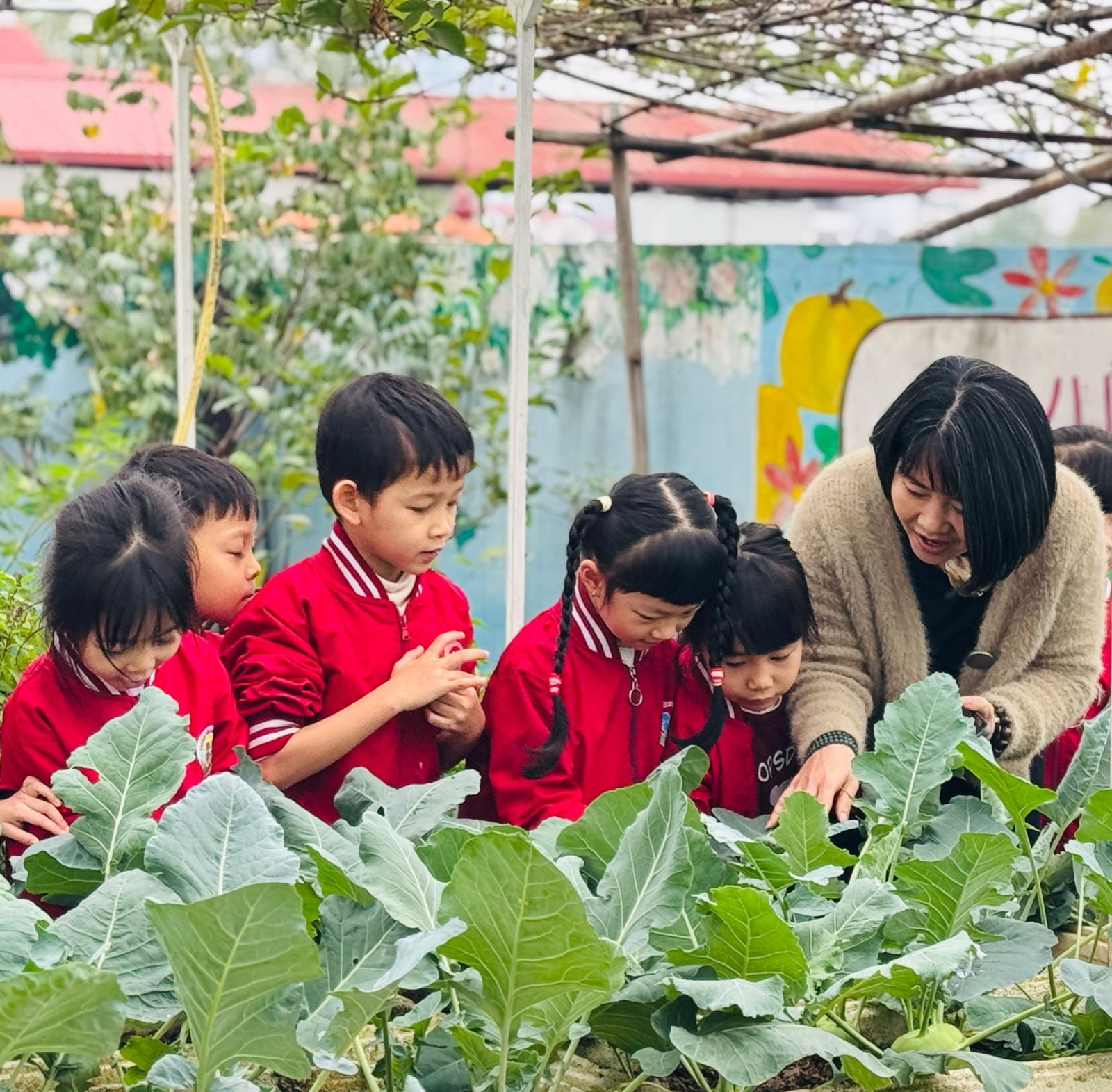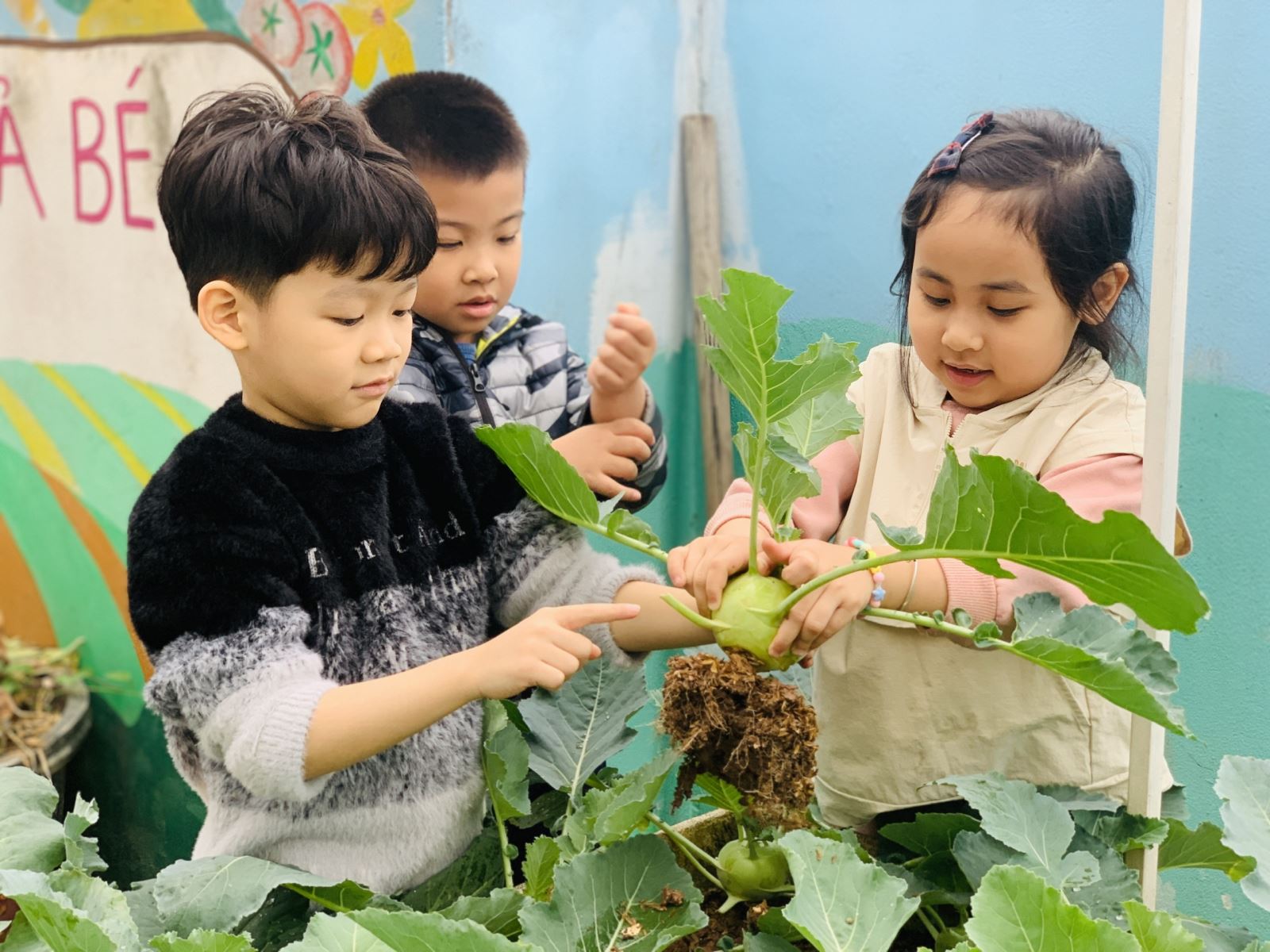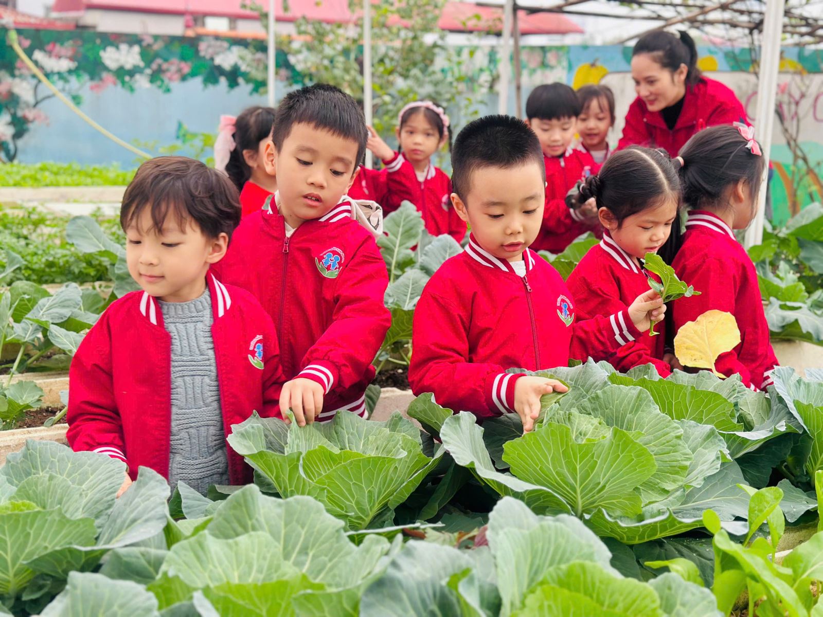 Mùa đông về cũng là lúc khu vườn rau của Trường Mầm non Sao Mai khoác lên mình màu xanh tươi mát. Những luống su hào, bắp cải được các cô và các bé chăm sóc mỗi ngày nay đã đến kỳ thu hoạch, mang theo niềm vui rộn ràng khắp sân trường.
