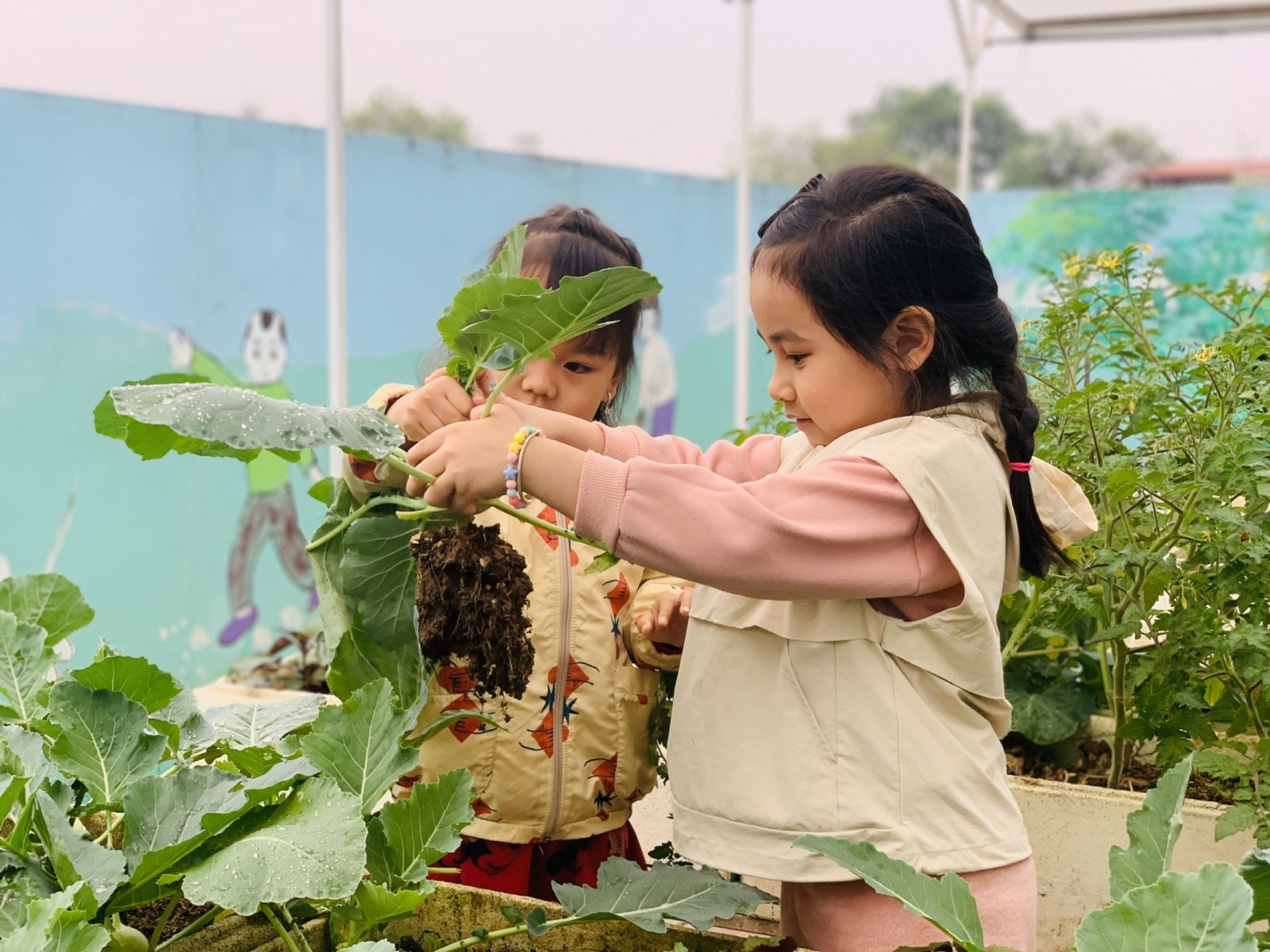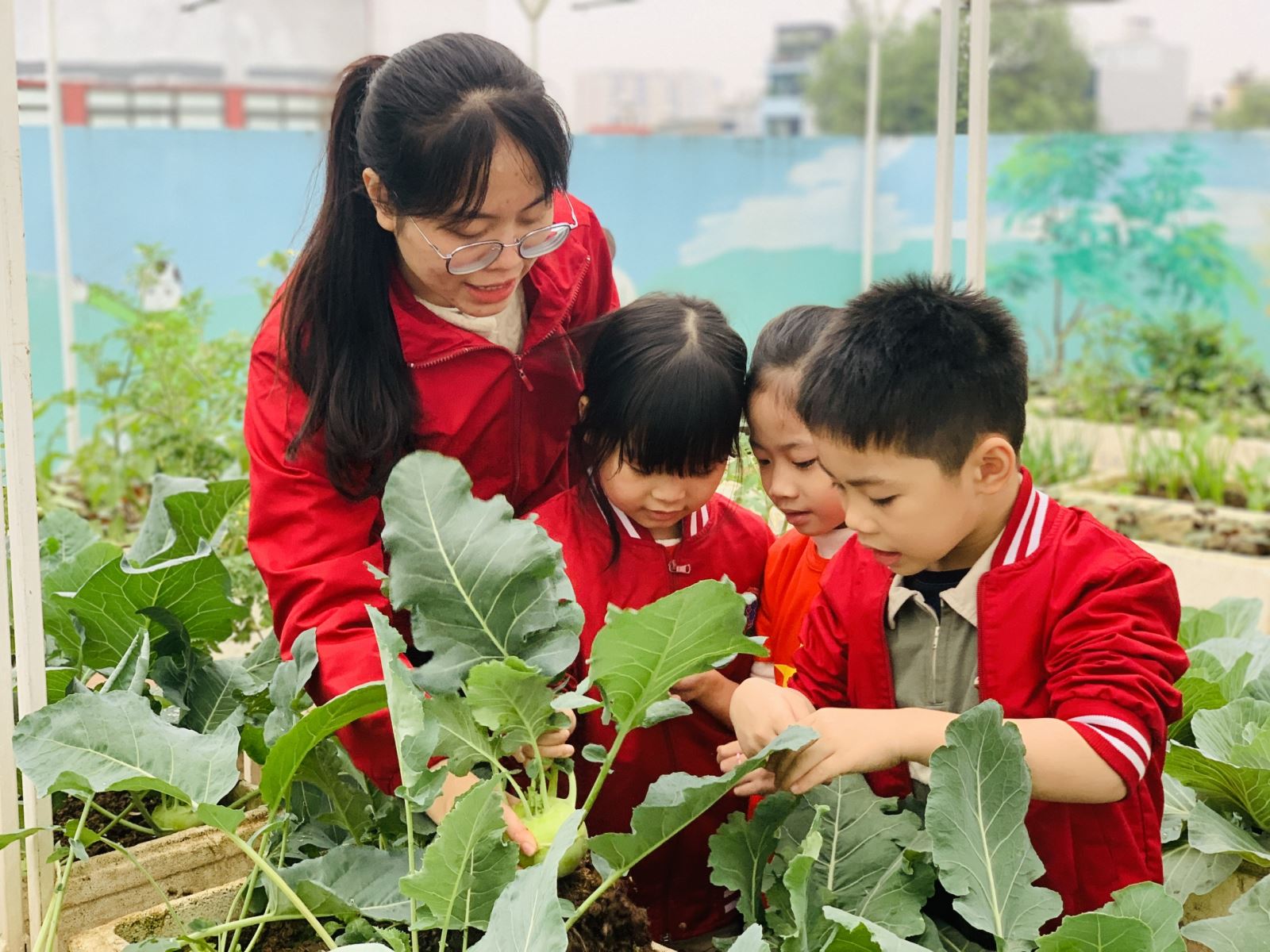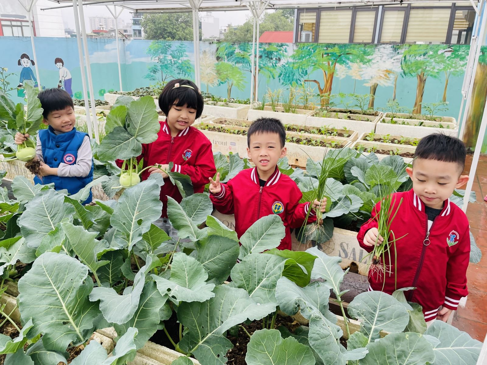 Mùa đông về cũng là lúc khu vườn rau của Trường Mầm non Sao Mai khoác lên mình màu xanh tươi mát. Những luống su hào, bắp cải được các cô và các bé chăm sóc mỗi ngày nay đã đến kỳ thu hoạch, mang theo niềm vui rộn ràng khắp sân trường.
