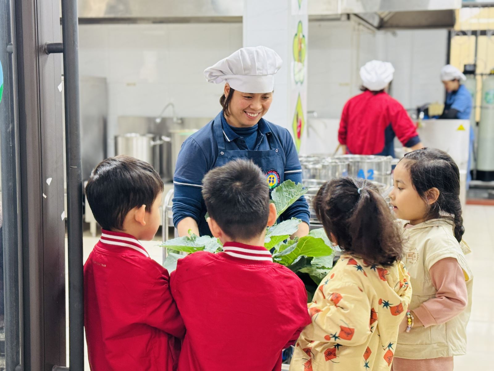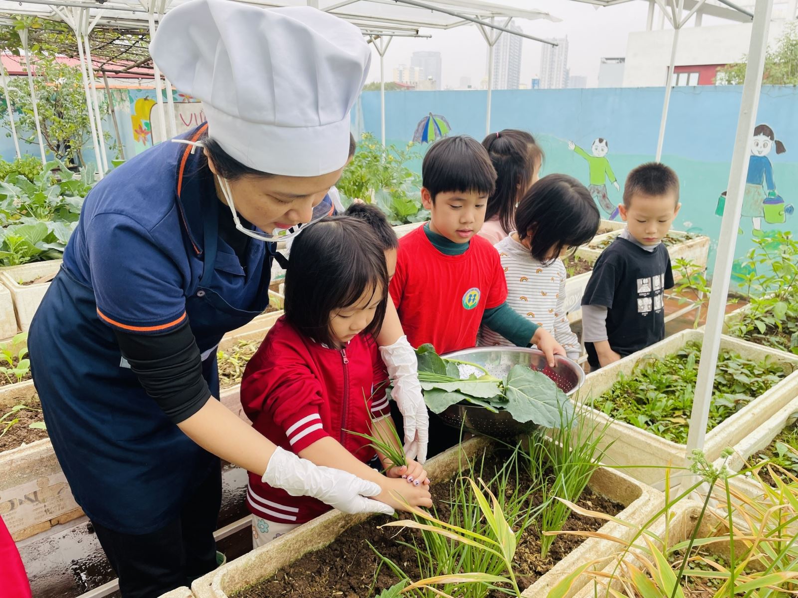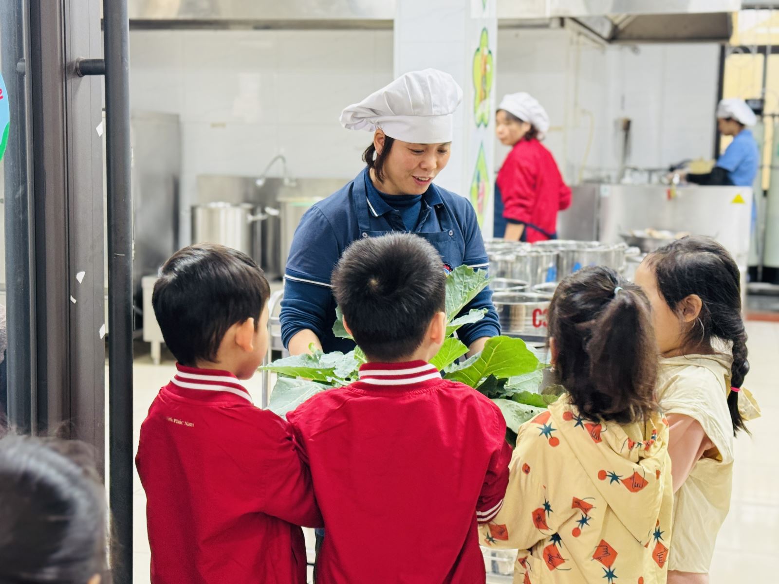 Điều ý nghĩa hơn cả là sau khi thu hoạch, các bé cùng nhau mang sản phẩm đến trao tận tay các bác nhà bếp. Những ánh mắt rạng rỡ, nụ cười hồn nhiên khi thấy “thành quả của mình” sẽ được chế biến thành những bữa ăn ngon, an toàn cho chính các con đã tạo nên một bài học sống động về giá trị của lao động và sự sẻ chia.
