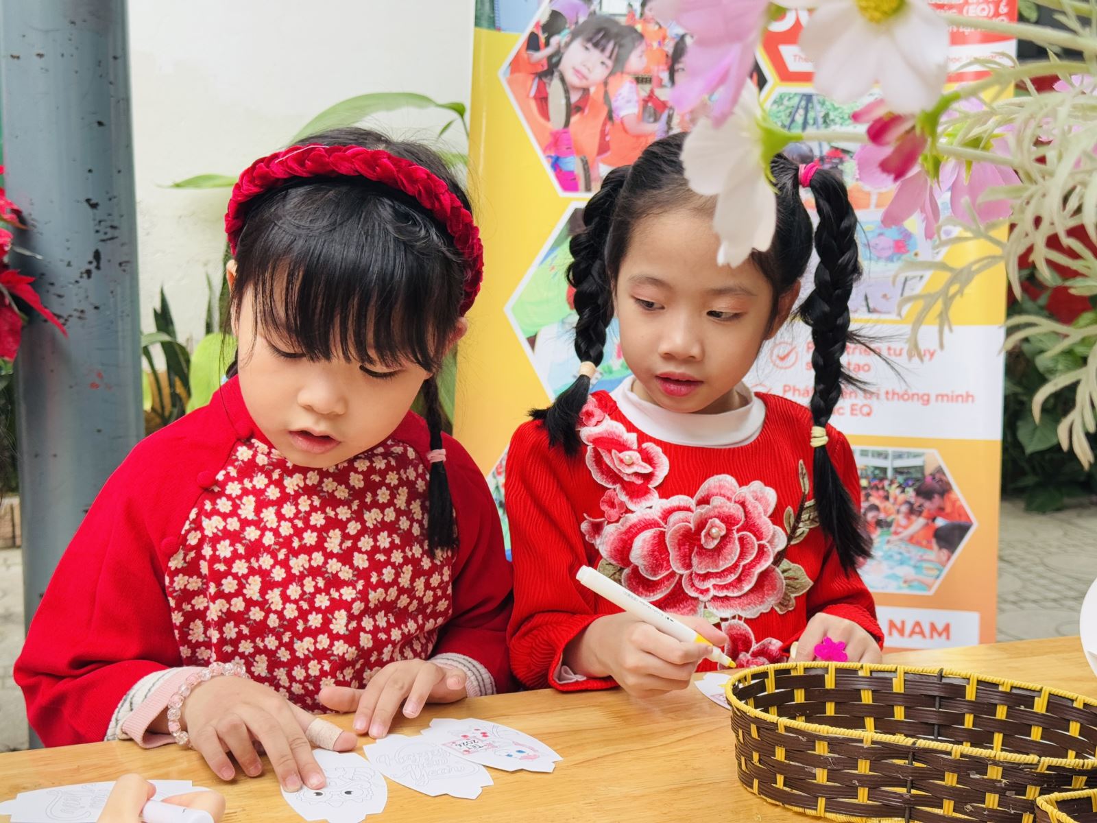 Trong không gian rộn ràng không khí Tết, các con được tham gia nhiều hoạt động trải nghiệm sáng tạo, phù hợp với lứa tuổi, giúp trẻ vừa chơi – vừa học – vừa cảm nhận trọn vẹn nét đẹp của Tết cổ truyền. Ngày hội đi sâu vào các hoạt động tạo hình, phát huy khả năng thẩm mỹ, sự khéo léo và trí tưởng tượng phong phú của trẻ.