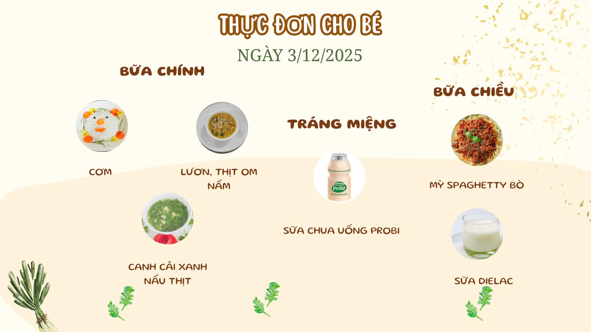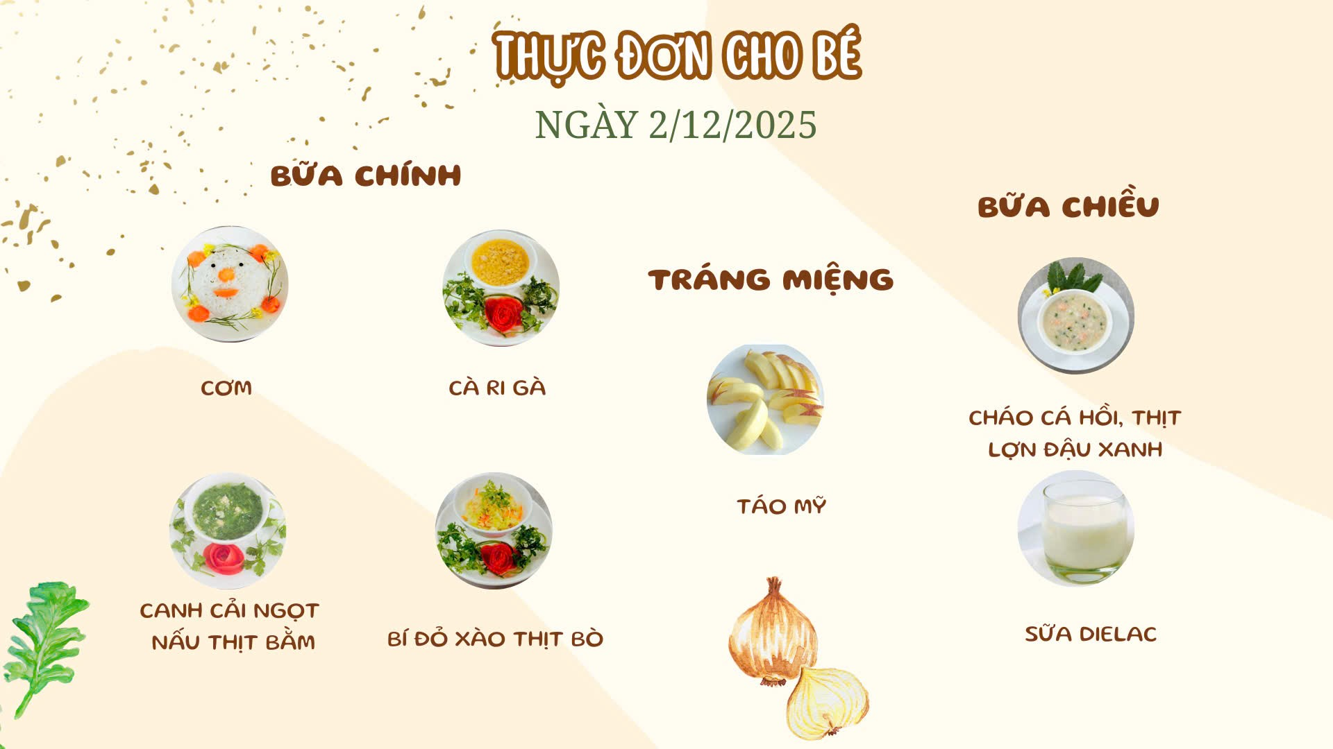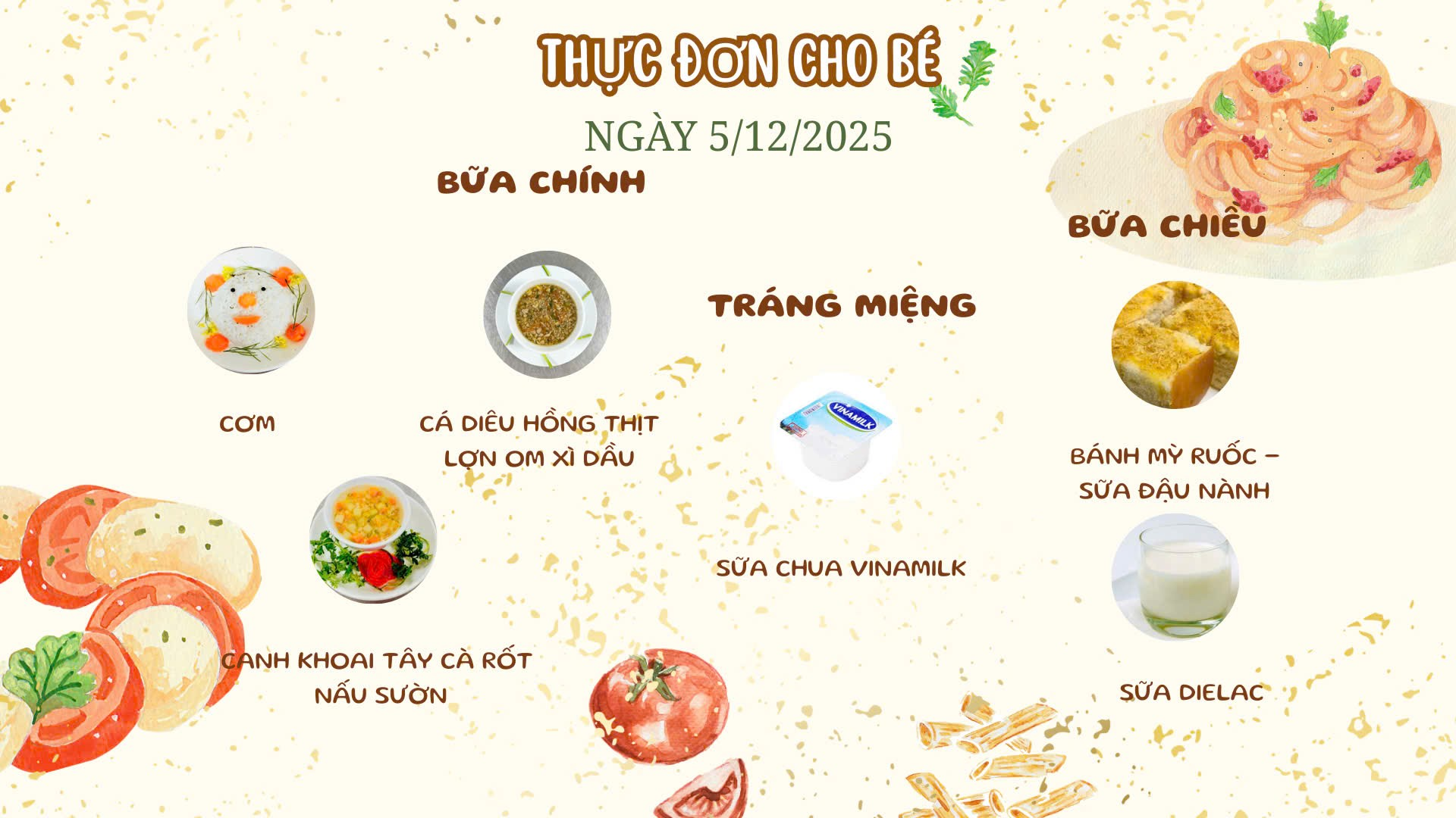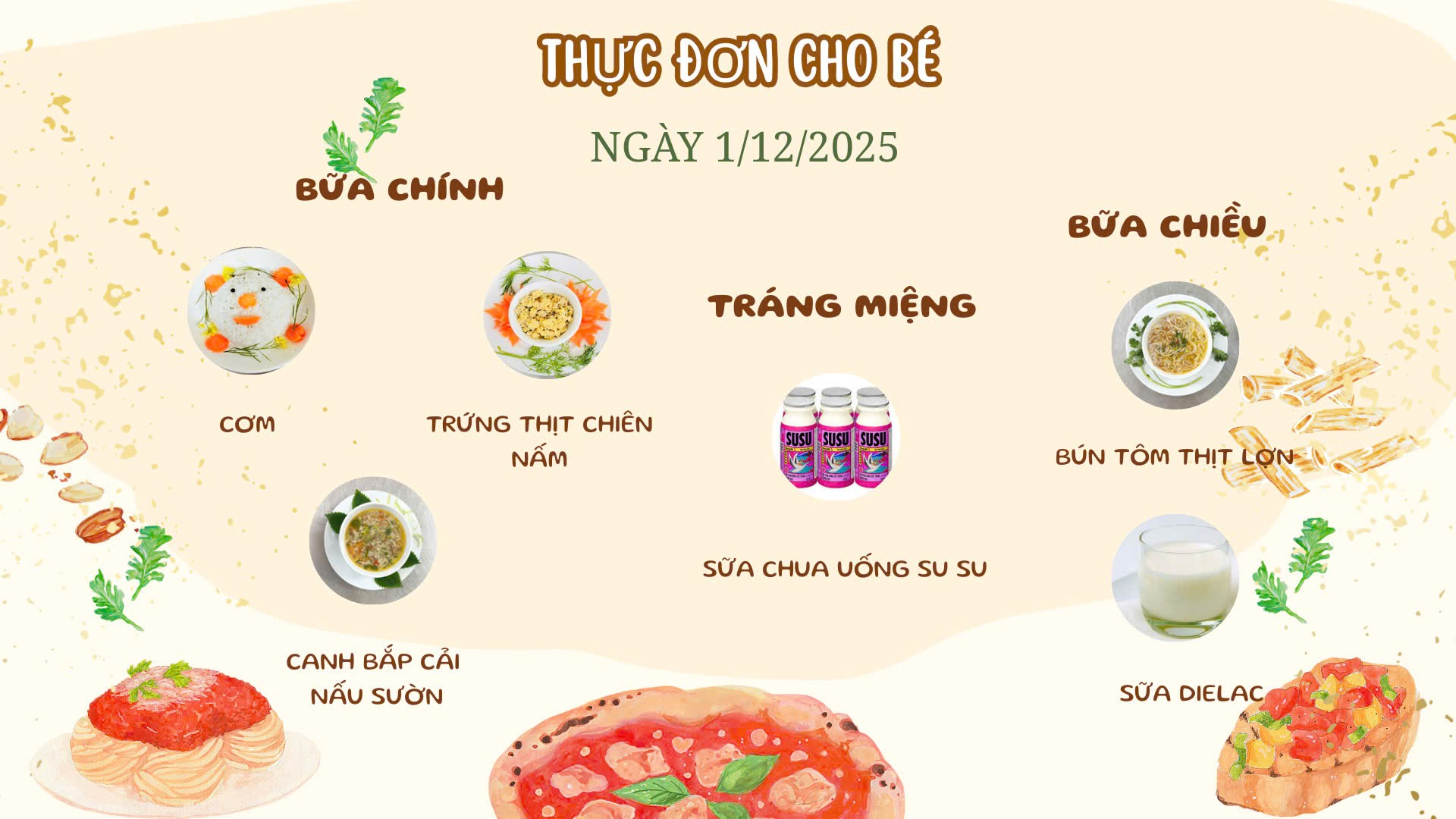 Thực đơn cho trẻ tuần I tháng 12/2025