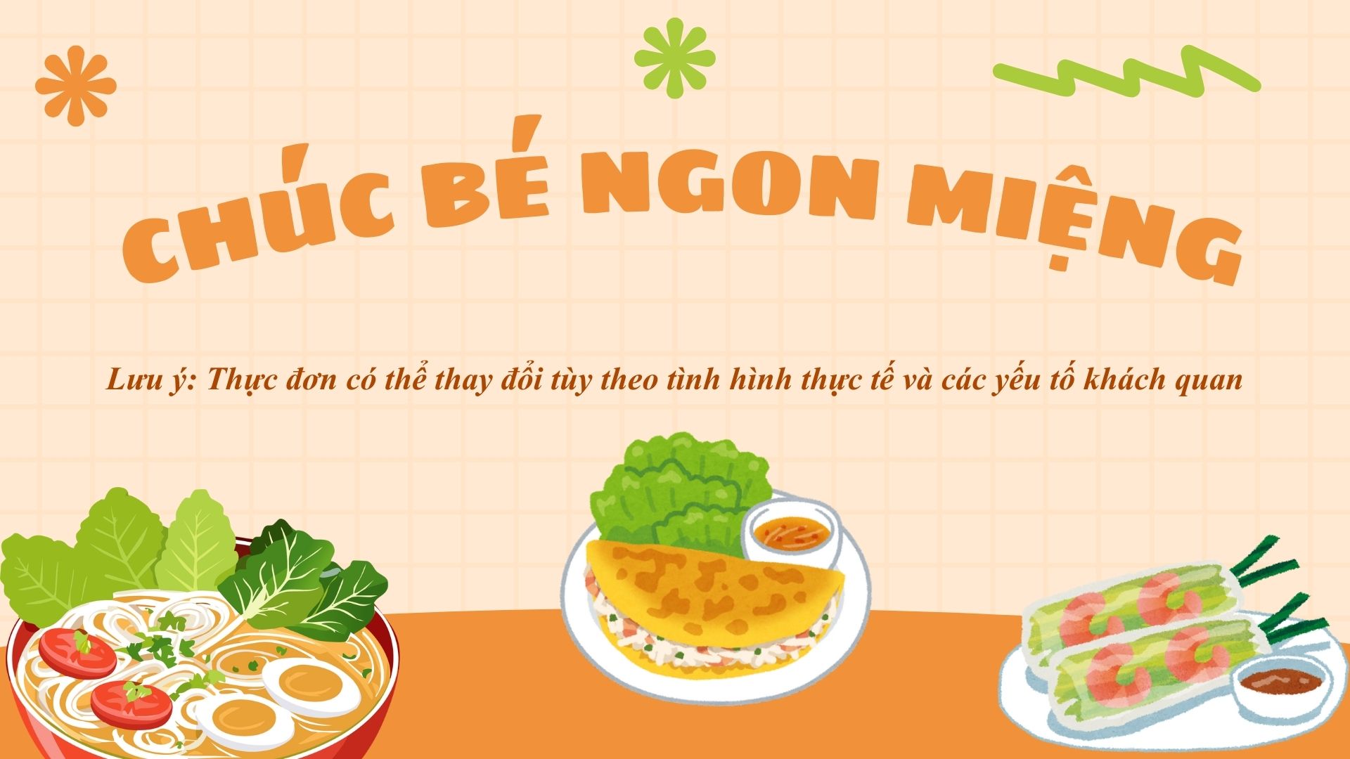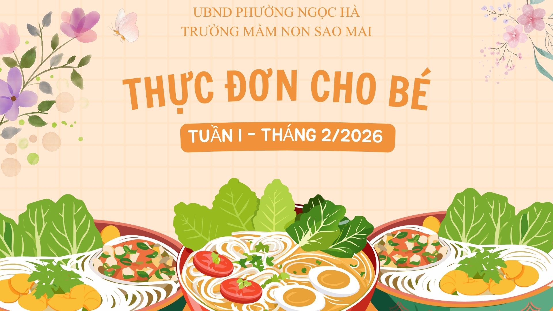 Trường Mầm non Sao Mai xin trân trọng gửi tới Quý phụ huynh Thực đơn cho trẻ tuần I tháng 2/2026 (từ ngày 2 - 6/2/2026). Thực đơn được thiết kế đa dạng, đủ chất và an toàn, nhằm mang đến cho các con những bữa ăn ngon miệng, hỗ trợ phát triển khỏe mạnh mỗi ngày. Chúc các con luôn ăn ngon, lớn khỏe!