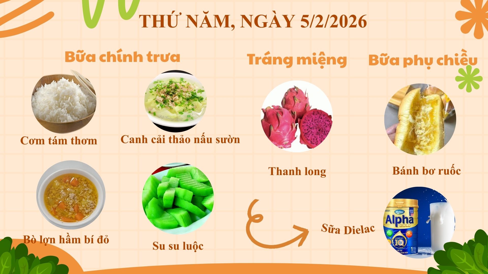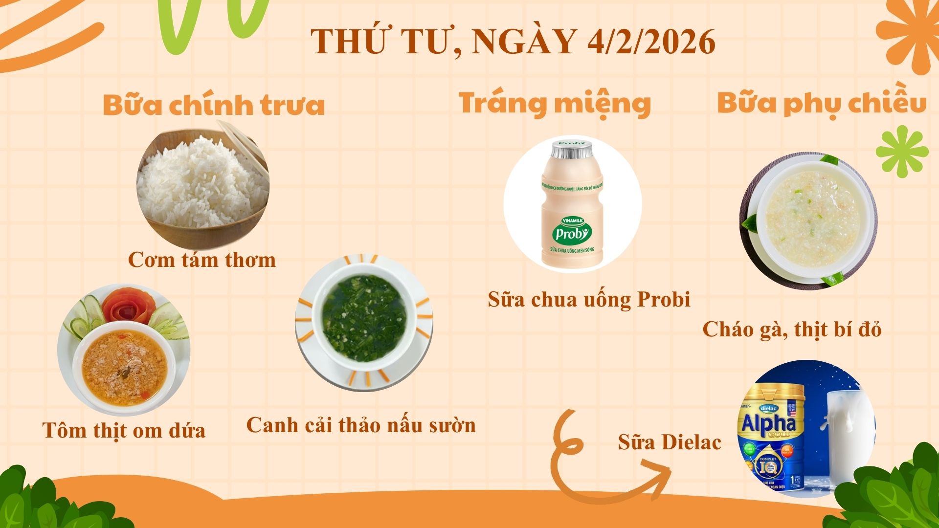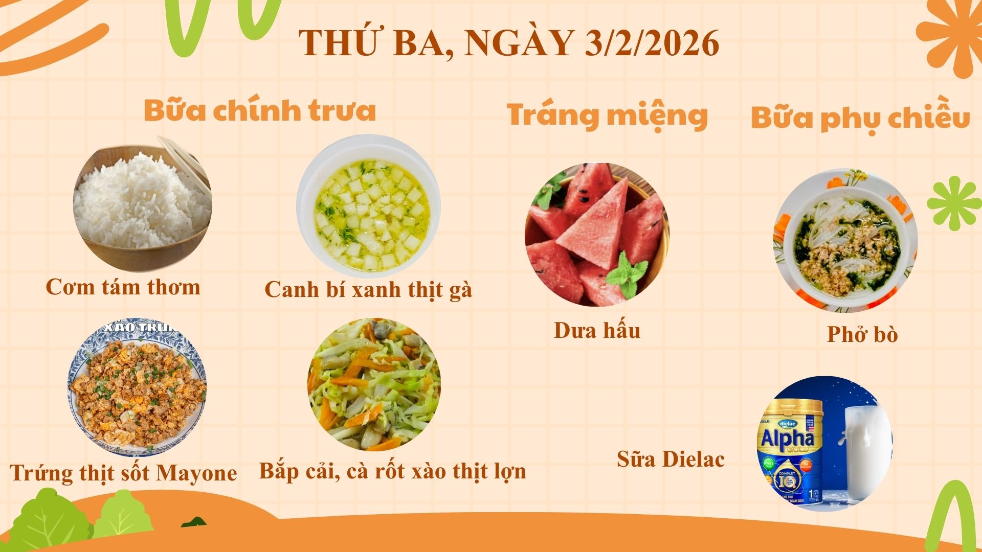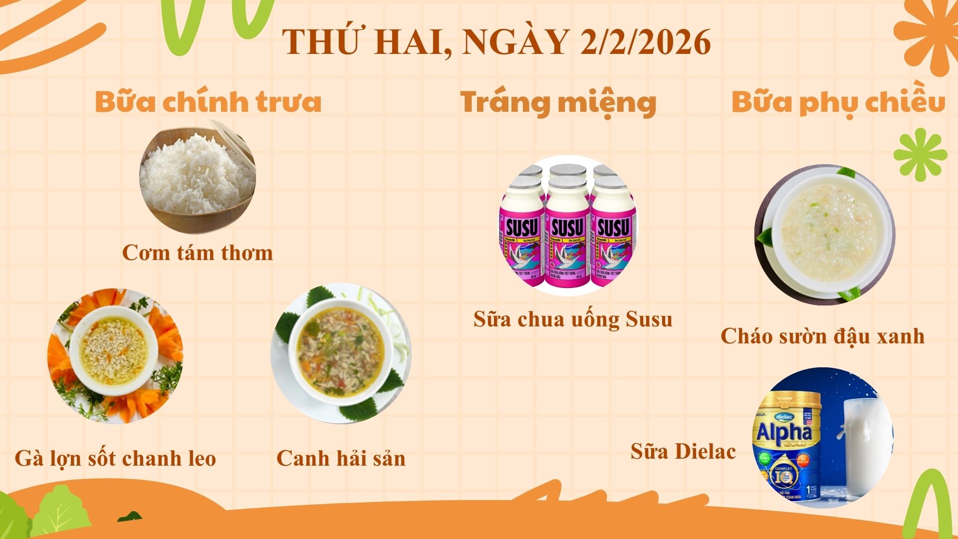 Thực đơn cho trẻ tuần I tháng 2 năm 2026