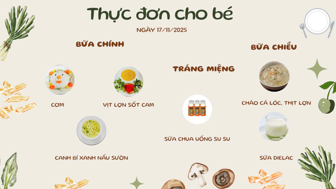 Thực đơn cho trẻ tuần III tháng 11/2025