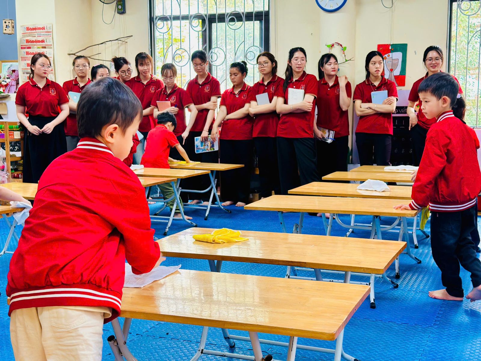 Với mong muốn tạo điều kiện cho sinh viên sư phạm được trải nghiệm thực tế, quan sát và học hỏi trong môi trường giáo dục mầm non thân thiện, Trường Mầm non Sao Mai đã tổ chức hoạt động kiến tập tại khối Mẫu giáo lớn. Đây là dịp để sinh viên được tiếp cận trực tiếp với các hoạt động chăm sóc, giáo dục trẻ diễn ra thường ngày tại nhà trường, từ đó tích lũy thêm kinh nghiệm thực tiễn cho hành trình nghề nghiệp tương lai.