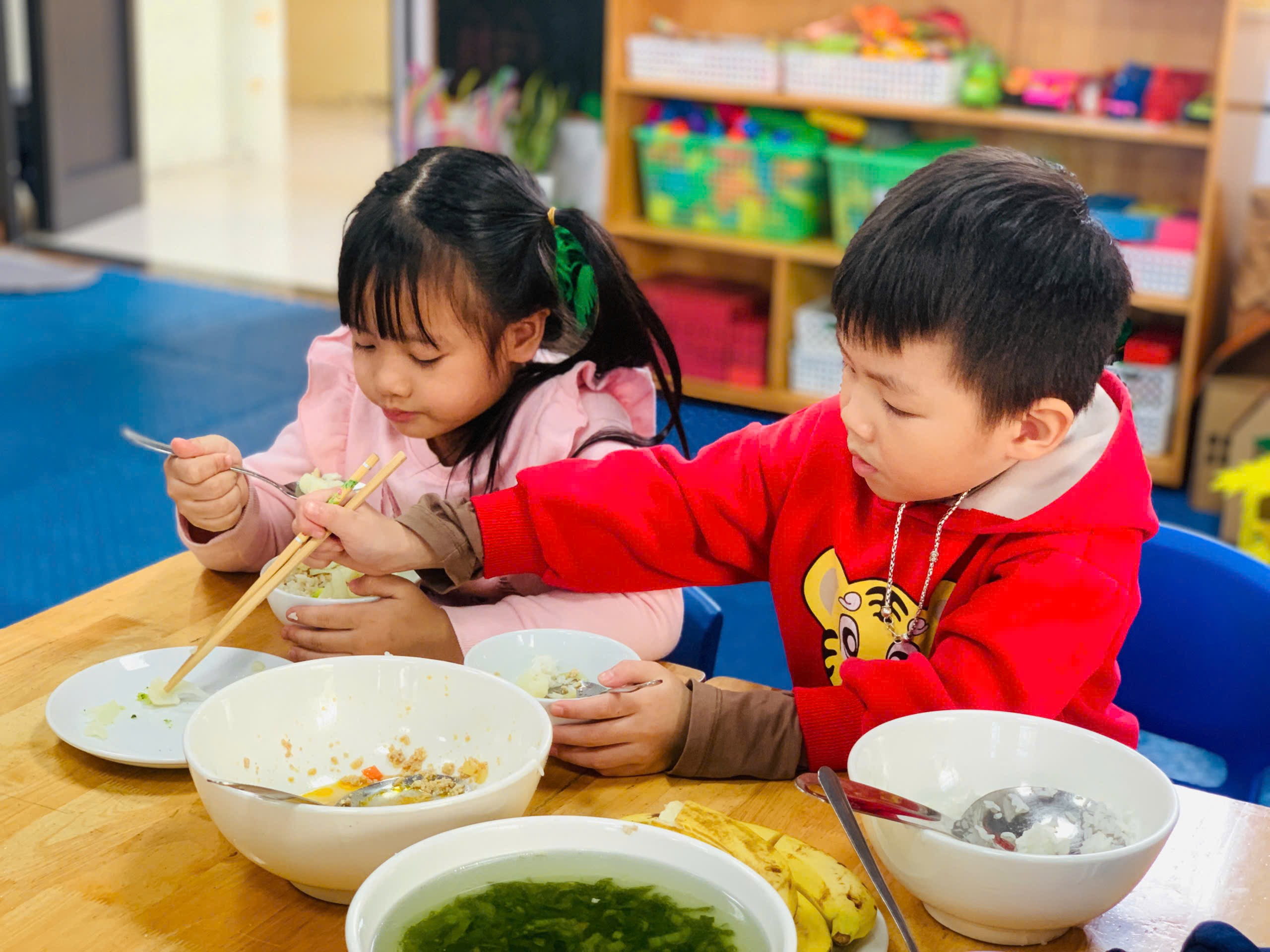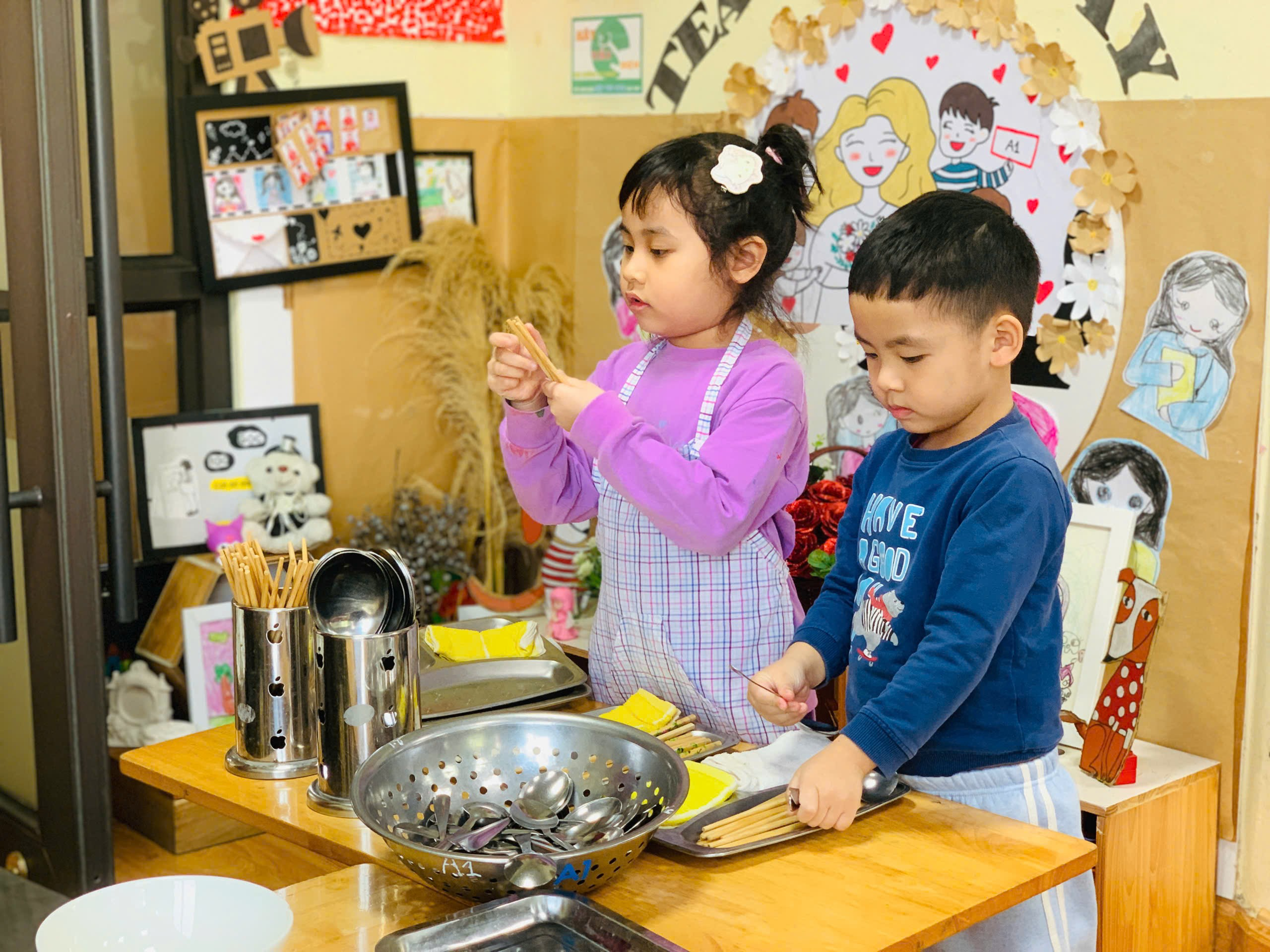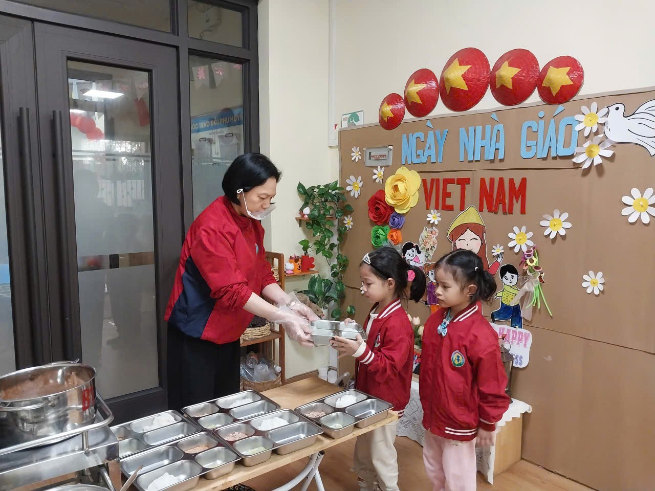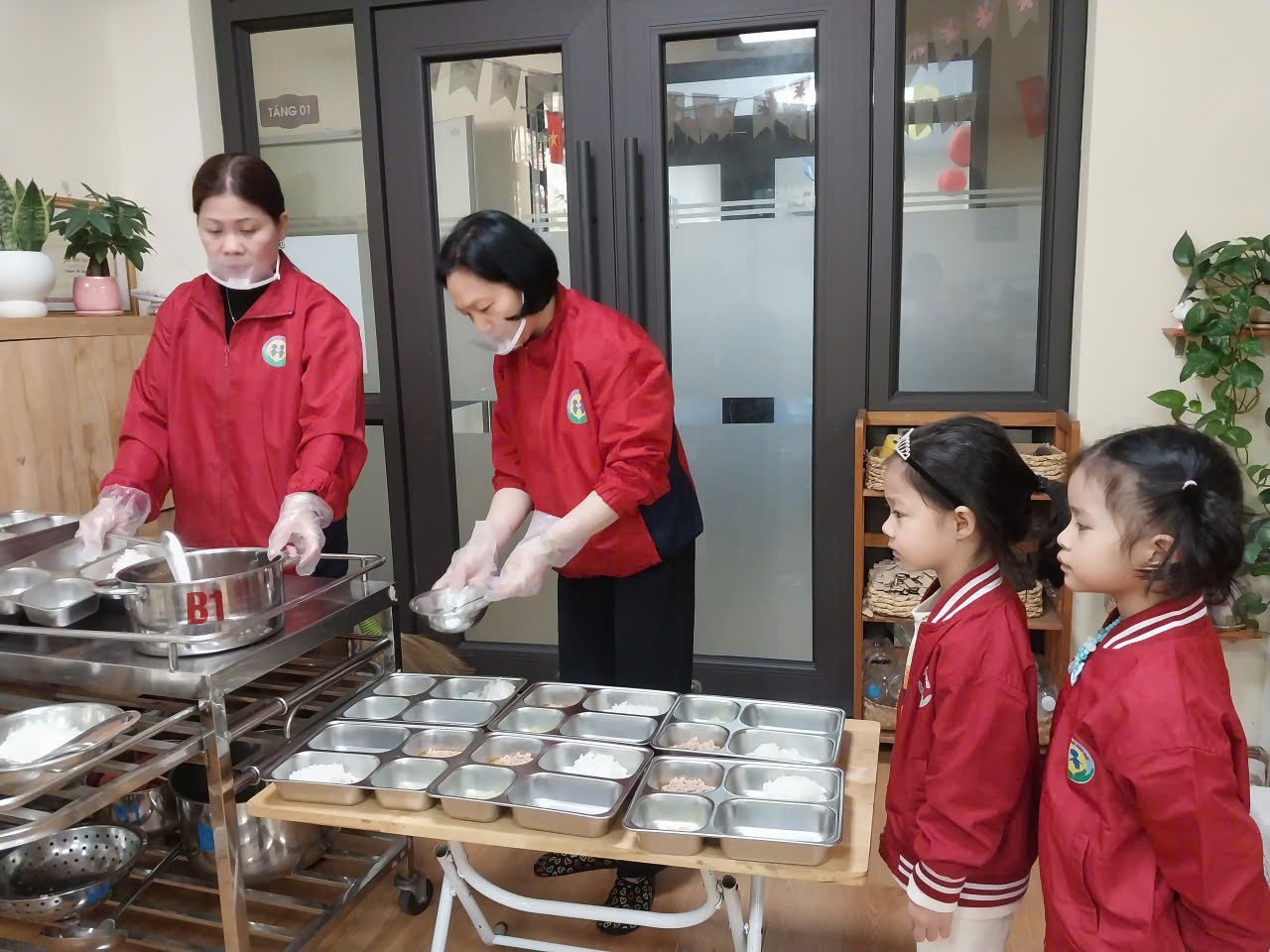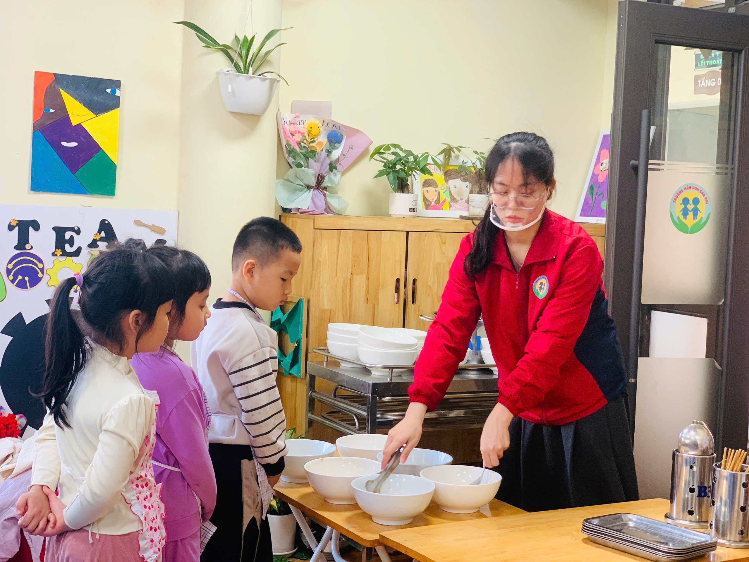 Việc duy trì tổ chức bữa ăn nhằm giúp trẻ hình thành thói quen dinh dưỡng khoa học, tự phục vụ và phát triển các kỹ năng xã hội. Mô hình “bữa ăn khay – bữa ăn gia đình” được duy trì đều đặn và đang mang lại nhiều hiệu quả thiết thực.