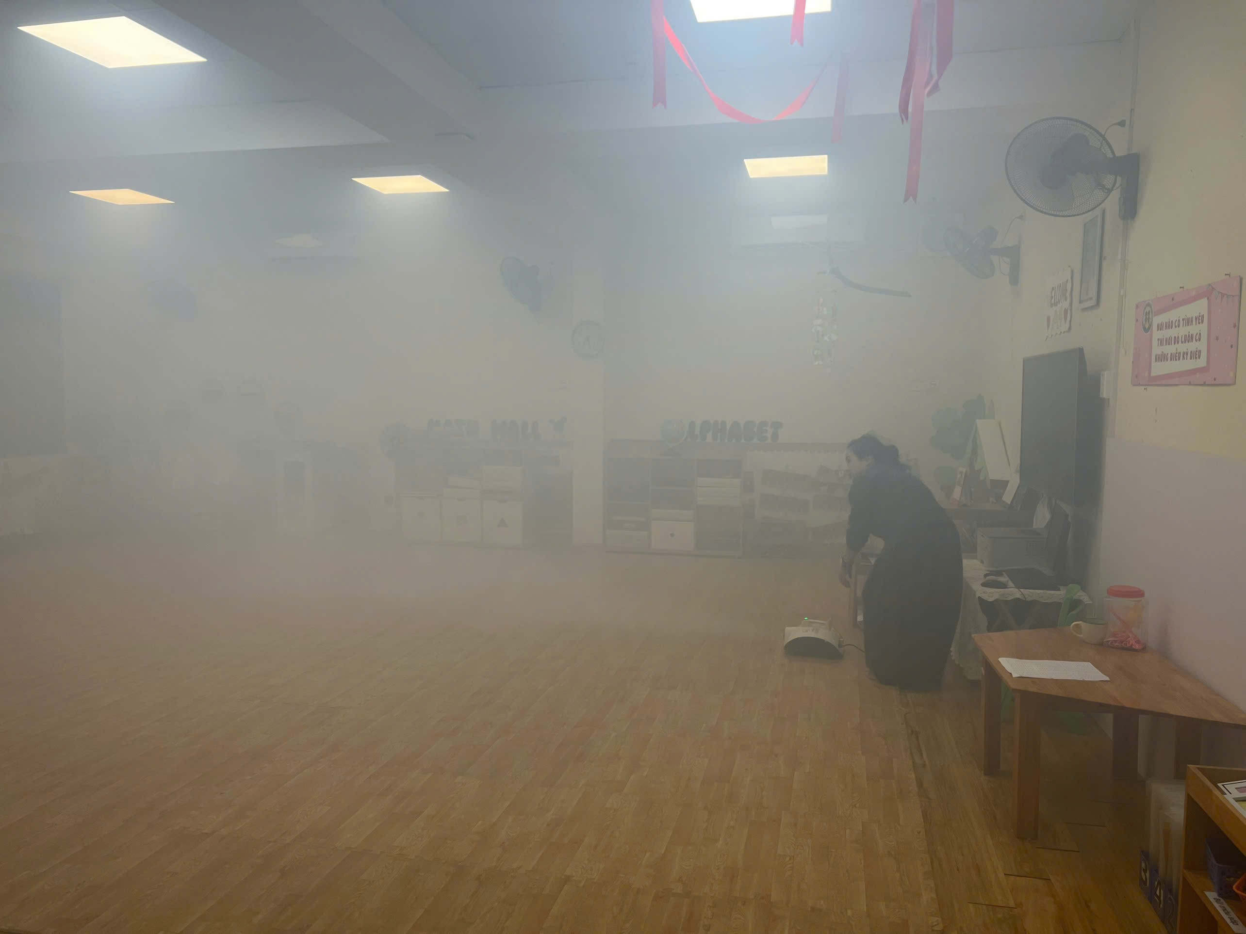 Song song với hoạt động phun khử khuẩn, nhà trường tăng cường vệ sinh thường xuyên: khử trùng bàn ghế, đồ chơi, tay nắm cửa, thảm sàn; đảm bảo lưu thông không khí tại lớp học; duy trì vệ sinh an toàn thực phẩm tại bếp ăn; hướng dẫn trẻ rửa tay theo đúng quy trình và giữ vệ sinh cá nhân hằng ngày. Giáo viên, nhân viên được nhắc nhở theo dõi sát tình trạng sức khỏe của trẻ và báo cáo ngay khi có dấu hiệu bất thường.