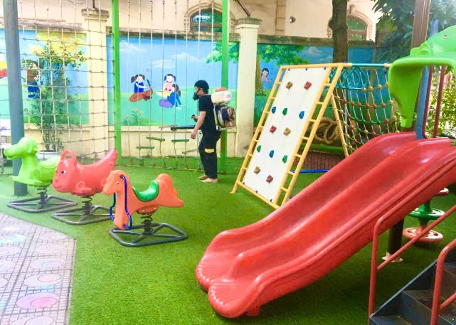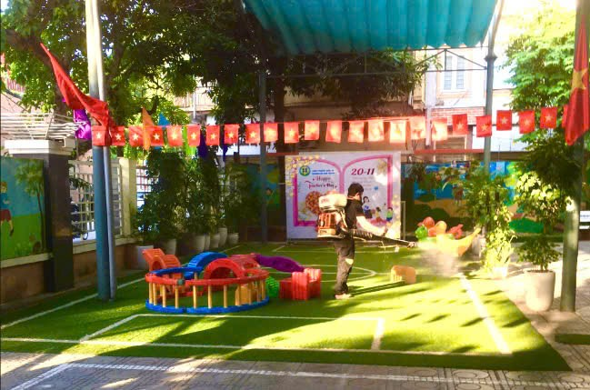 Việc phun thuốc được thực hiện bởi đơn vị chuyên môn có đủ chứng nhận và kinh nghiệm, sử dụng hóa chất nằm trong danh mục khuyến cáo của Bộ Y tế. Toàn bộ các khu vực như lớp học, bếp ăn, sân chơi, hành lang và khu vực cây xanh đều được xử lý theo đúng quy trình kỹ thuật.