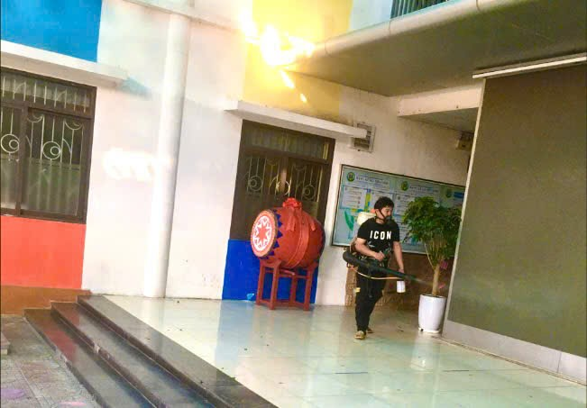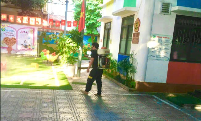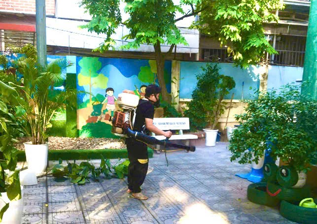 Trường Mầm non Sao Mai tổ chức phun thuốc muỗi phòng, chống dịch bệnh