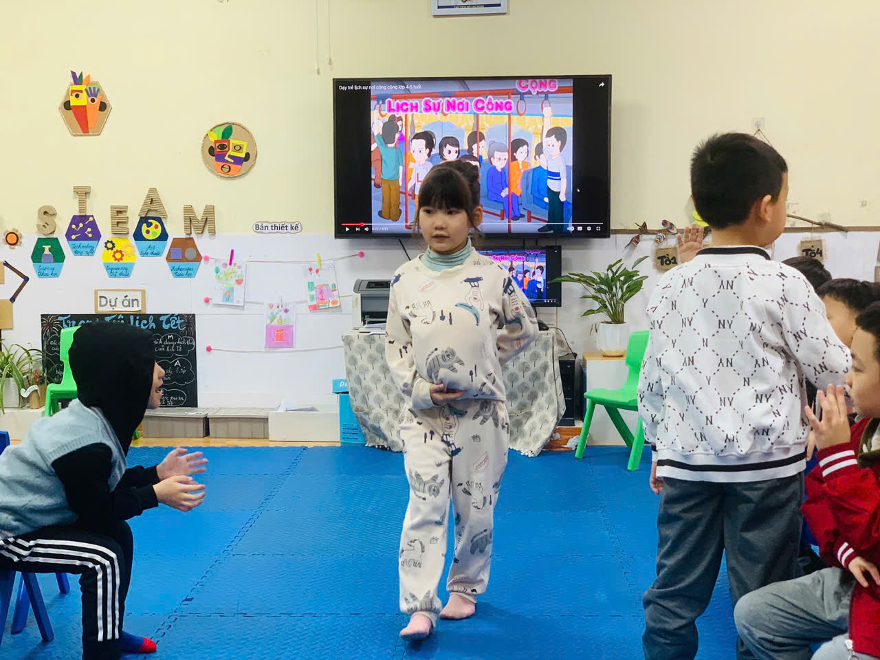 " Dạy trẻ kỹ năng lịch sự khi đi xe Bus- Hành trình văn minh bắt đầu từ những điều nhỏ" của cô và trò lớp Mẫu Giáo Lớn A2