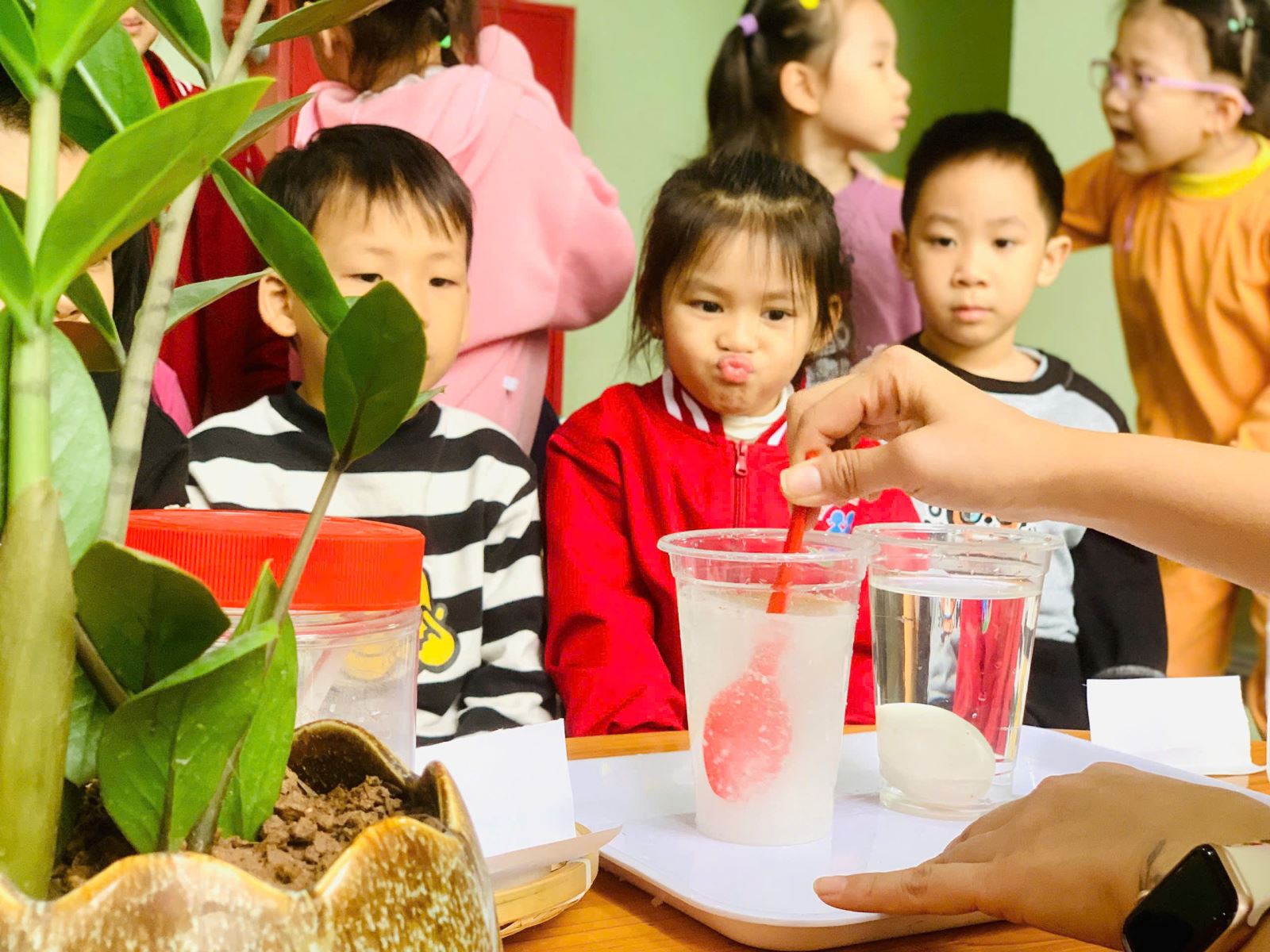 Được tự tay làm thí nghiệm bạn nào cũng rất vui vẻ, hào hứng. Ba mẹ cùng xem ảnh chi tiết phía dưới nhé!