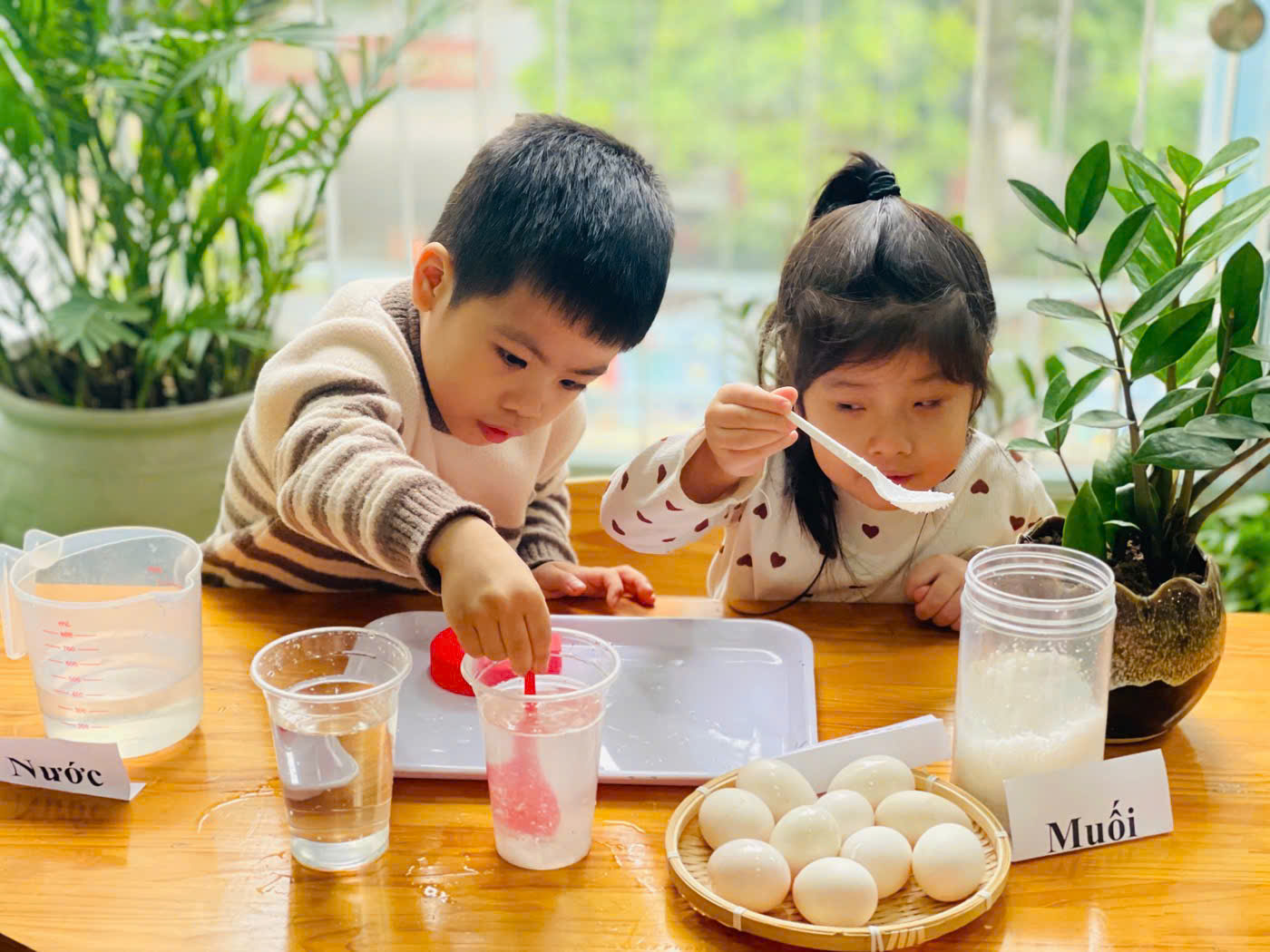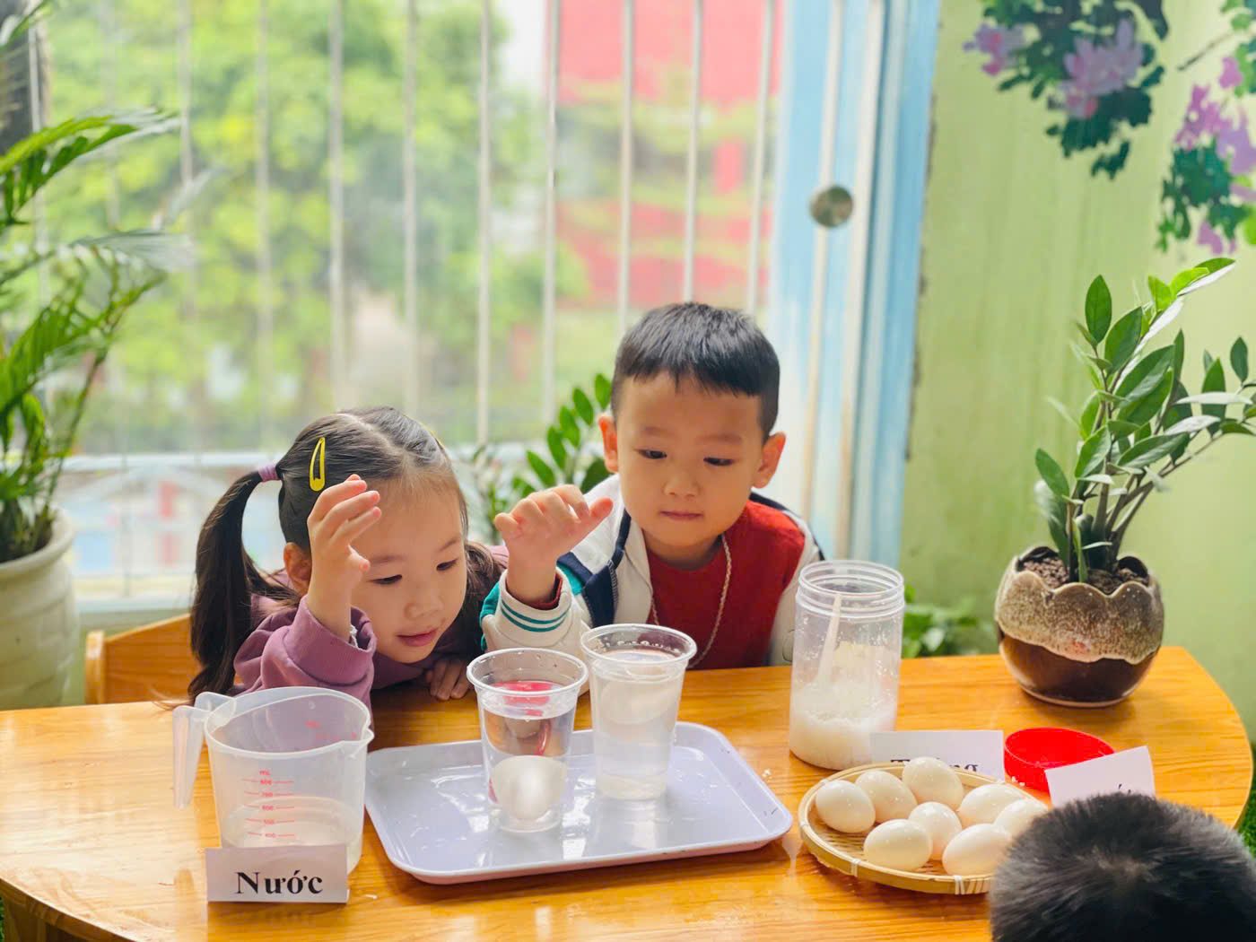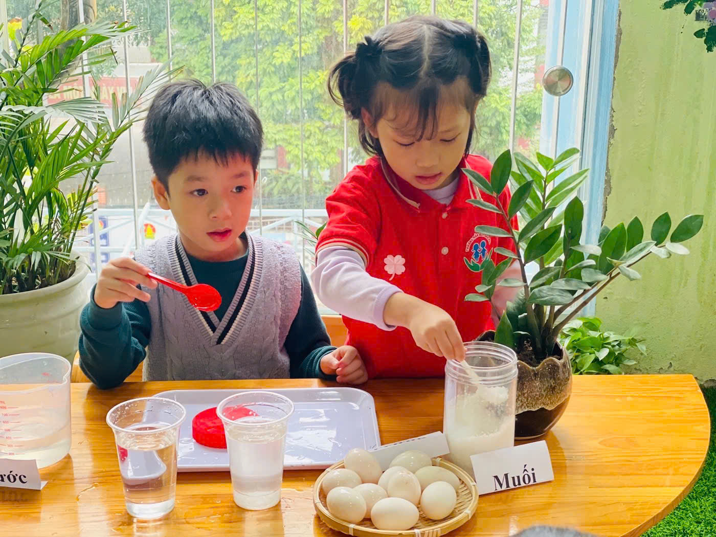 Cùng các bé lớp Mẫu Giáo Lớn A2 khám phá hiện tượng khoa học đơn giản qua thí nghiệm " Trứng nổi- trứng chìm"