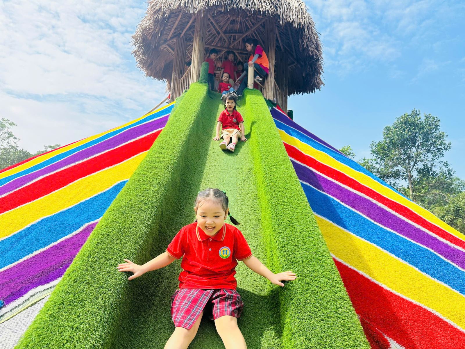 Các bé còn được chơi trượt cỏ nữa chứ, ai cũng thi nhau trượt vài lần mà không thấy chán.