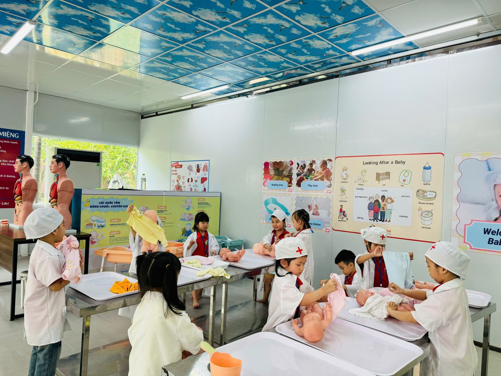 Bên cạnh các trò chơi vận động đòi hỏi tính nhanh nhẹn và sức bền, các bé còn được trải nghiệm các hoạt động đòi hỏi sự khéo léo, tính kiên trì như bé làm thợ gốm, bé tập làm bác sỹ, Cho cừu ăn...học cách chăm sóc, yêu thương và hiểu hơn về các loài động vật.