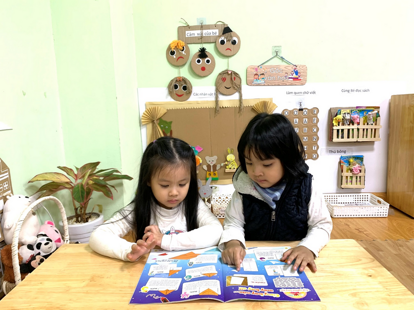Trẻ khối Mẫu giáo bé tại trường Mầm non Sao Mai hứng thú với các hoạt động góc cùng cô và các bạn.