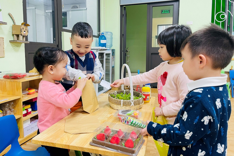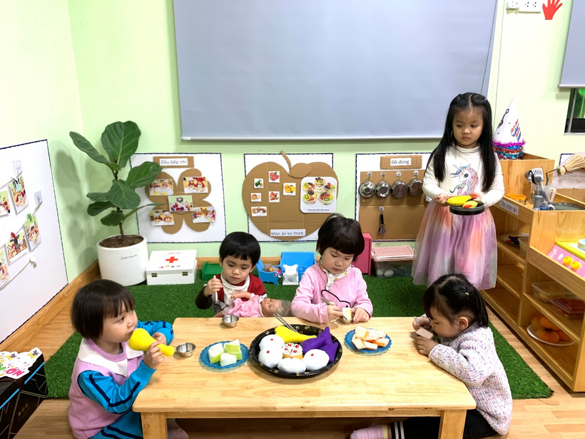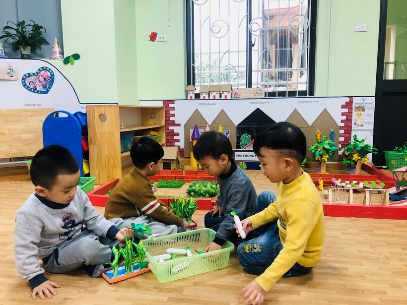 Một số hình ảnh học sinh khối Mẫu giáo bé trường Mầm non Sao Mai tham gia hoạt động góc: