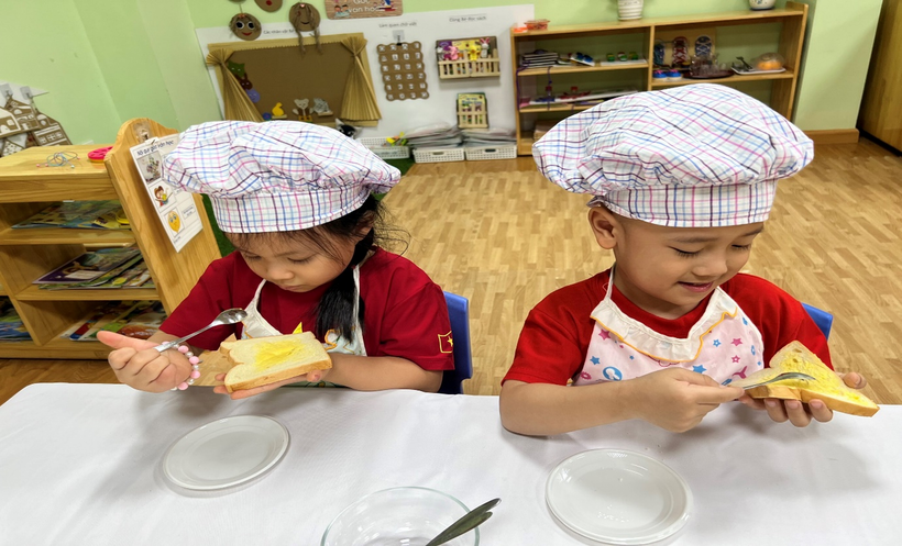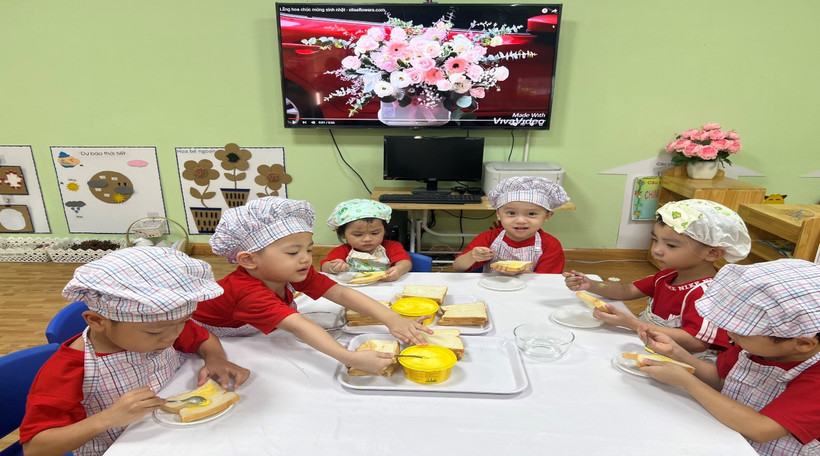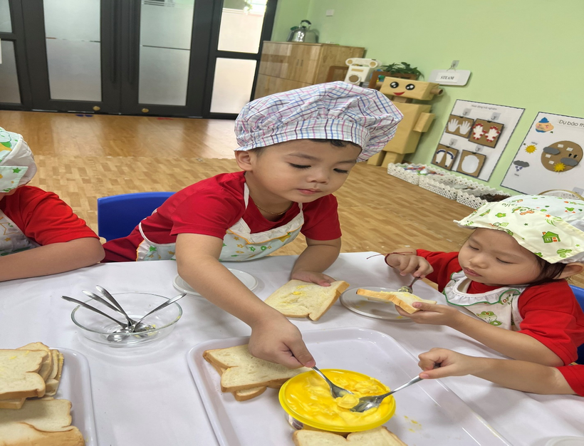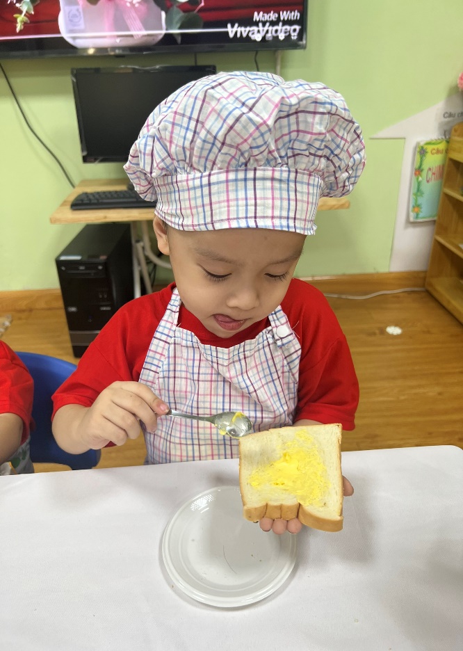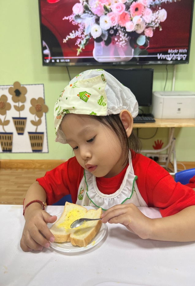 Qua hoạt động này, các bé được hình thành, rèn luyện một số kỹ năng sống cơ bản, như: thói quen ăn uống tốt, biết giữ vệ sinh ăn uống, biết thực hành một số kỹ năng tự phục vụ; đặc biệt các bé càng biết tự nhận thức, tự cảm nhận tình cảm của cô và mẹ qua việc chăm chút từng bữa ăn cho mình ở trường và ở nhà. Với món bánh mì phết bơ các bé đã có cơ hội thể hiện kĩ năng sử dụng thìa để xúc bơ phết lên bánh mì, các bé rất tỉ mỉ, miệt mài và vô cùng hào hứng.