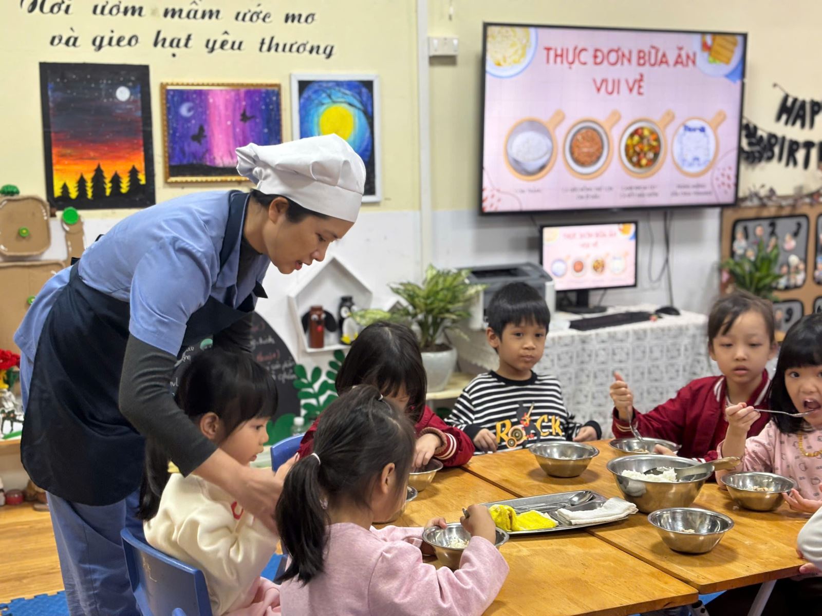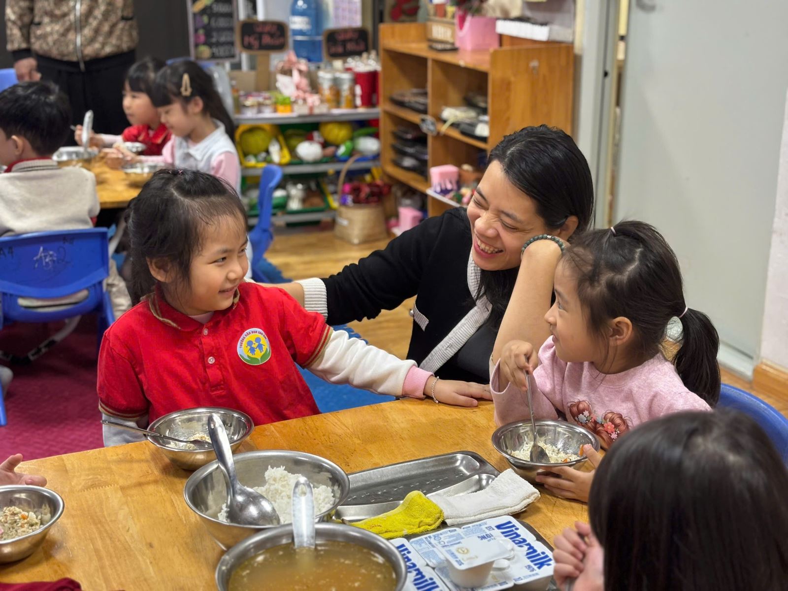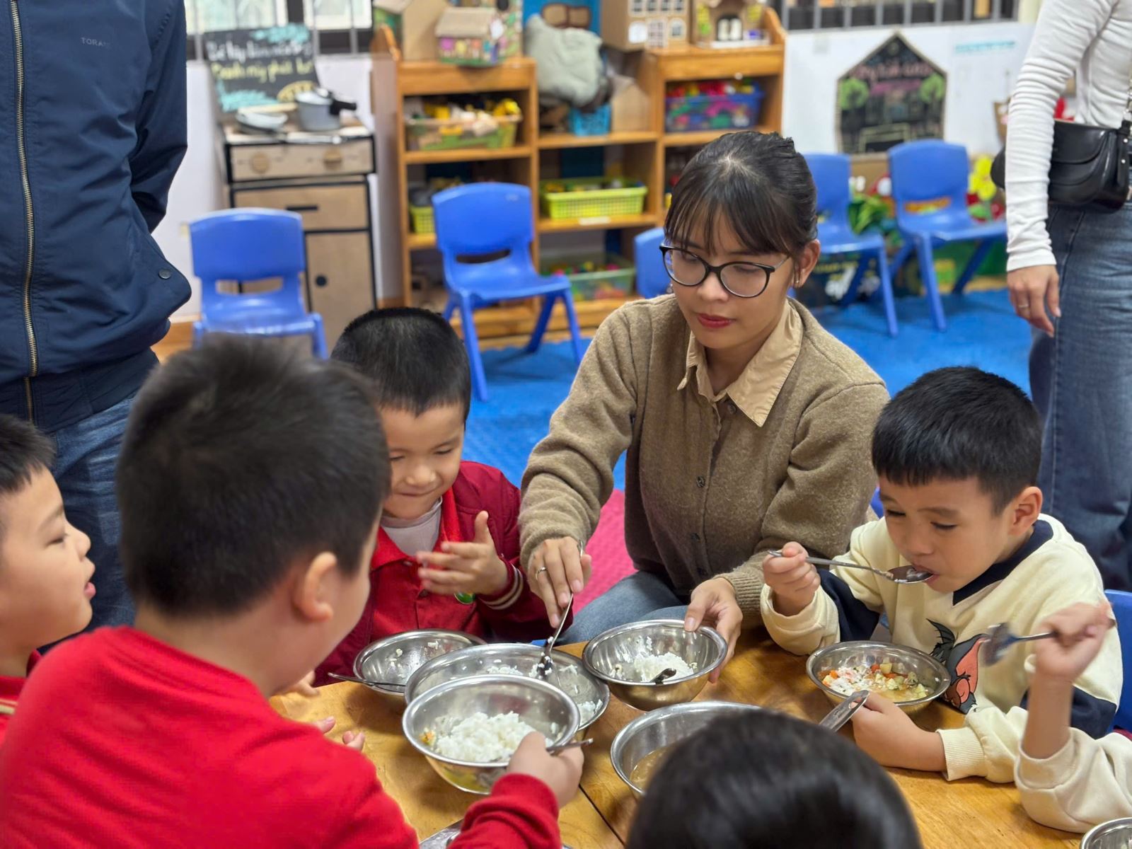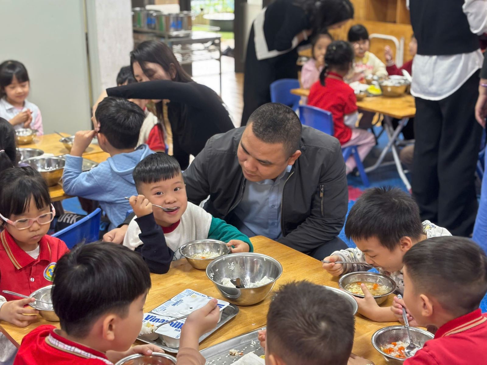Thông qua hoạt động này, phụ huynh không chỉ hiểu rõ hơn về chế độ dinh dưỡng và thói quen sinh hoạt của trẻ tại trường, mà còn được chứng kiến sự tự tin, tinh thần hợp tác và kỹ năng tự lập của các con khi cùng bạn bè thưởng thức bữa trưa. Sự có mặt của Ban giám hiệu và các bác đầu bếp cũng giúp chia sẻ thêm về quy trình chế biến, xây dựng thực đơn và đảm bảo an toàn thực phẩm cho trẻ mỗi ngày.