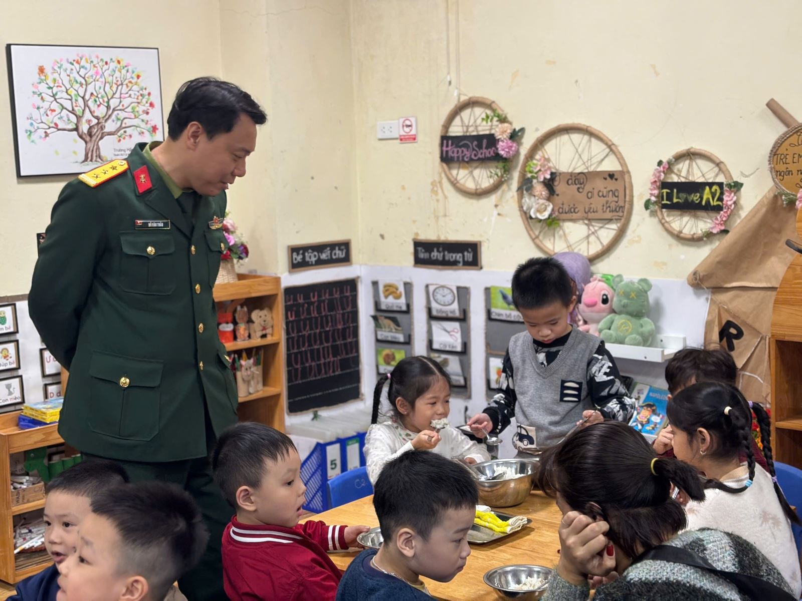 Lớp Mẫu giáo lớn A2 – Trường Mầm non Sao Mai đã tổ chức hoạt động “Bữa trưa vui vẻ” với sự tham dự của phụ huynh, Ban giám hiệu và các bác đầu bếp của nhà trường. Trong buổi tham dự, mọi người được quan sát không khí bữa ăn của trẻ, cách cô giáo đồng hành, động viên và tạo hứng thú cho trẻ trong quá trình ăn uống. Các con còn được thực hành nhiều kỹ năng tự phục vụ như tự chia khay, thìa cho bạn và cho mình, tự chia thức ăn theo khẩu phần, ngồi ngay ngắn và tự giác xúc ăn ngon miệng. Những hành động nhỏ nhưng đầy ý nghĩa ấy giúp trẻ rèn tính tự lập và hình thành thói quen ăn uống khoa học.