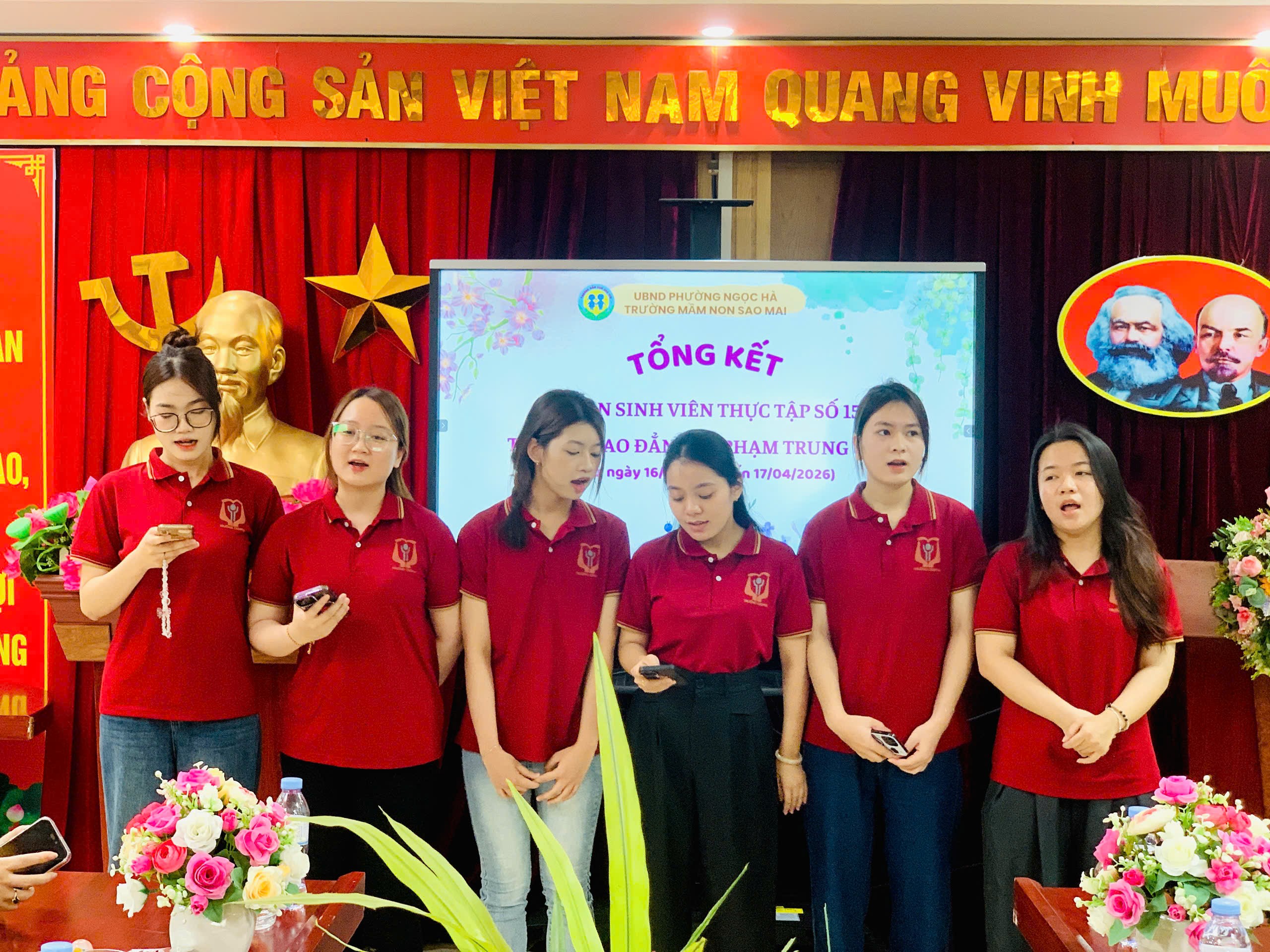 Trong suốt thời gian thực tập, các bạn sinh viên không chỉ đến để học hỏi mà còn mang theo cả nhiệt huyết của tuổi trẻ, sự sáng tạo và trái tim yêu nghề chân thành. Từng giờ hoạt động học, từng buổi vui chơi ngoài trời, từng bữa ăn, giấc ngủ của các con đều có sự hiện diện ân cần, gần gũi của các cô giáo tương lai. Những ánh mắt trìu mến, những nụ cười rạng rỡ, những bài giảng nhỏ xinh nhưng đầy tâm huyết… tất cả đã góp phần tạo nên một khoảng thời gian thật đẹp trong hành trình trưởng thành của mỗi bạn.