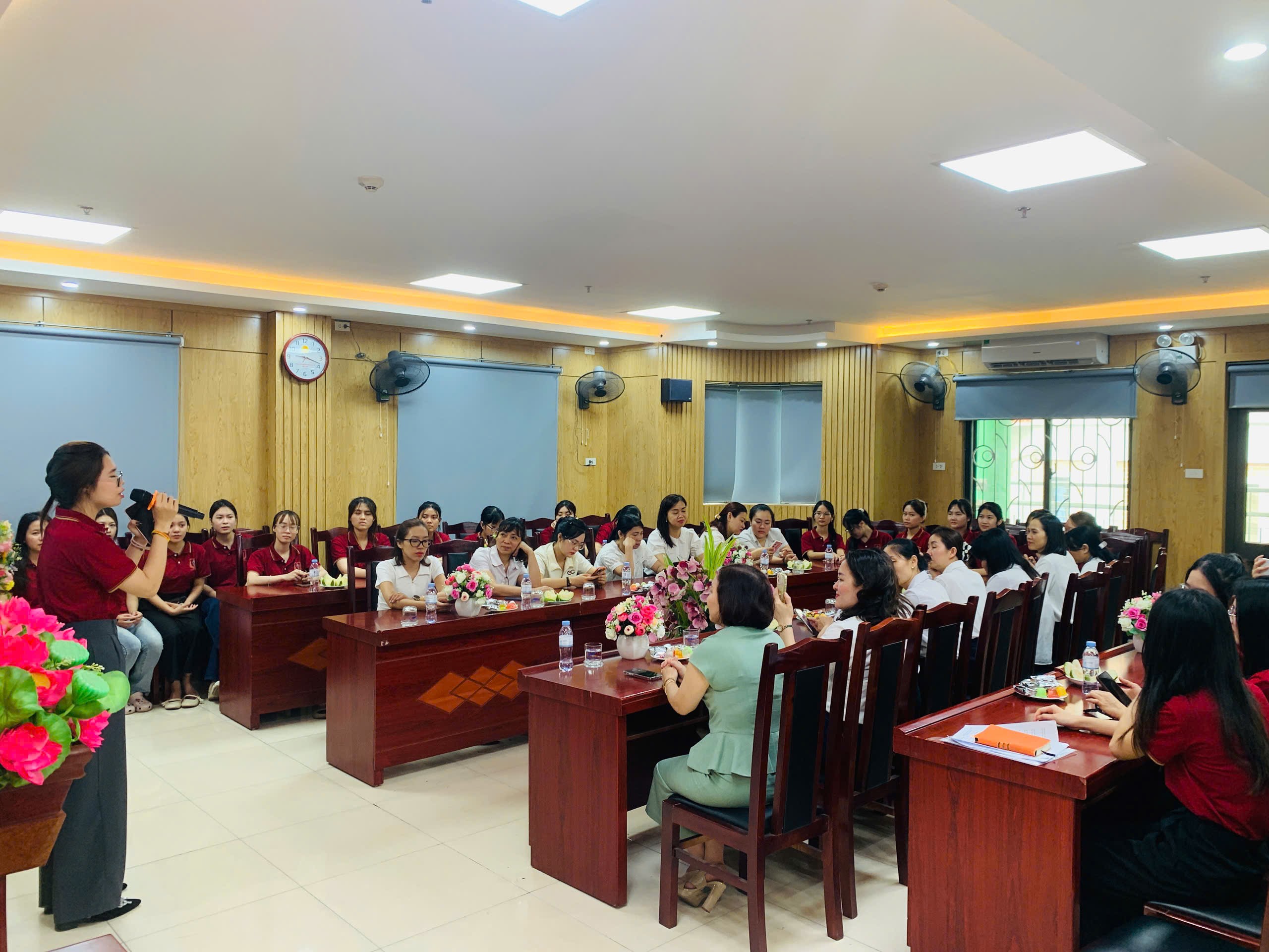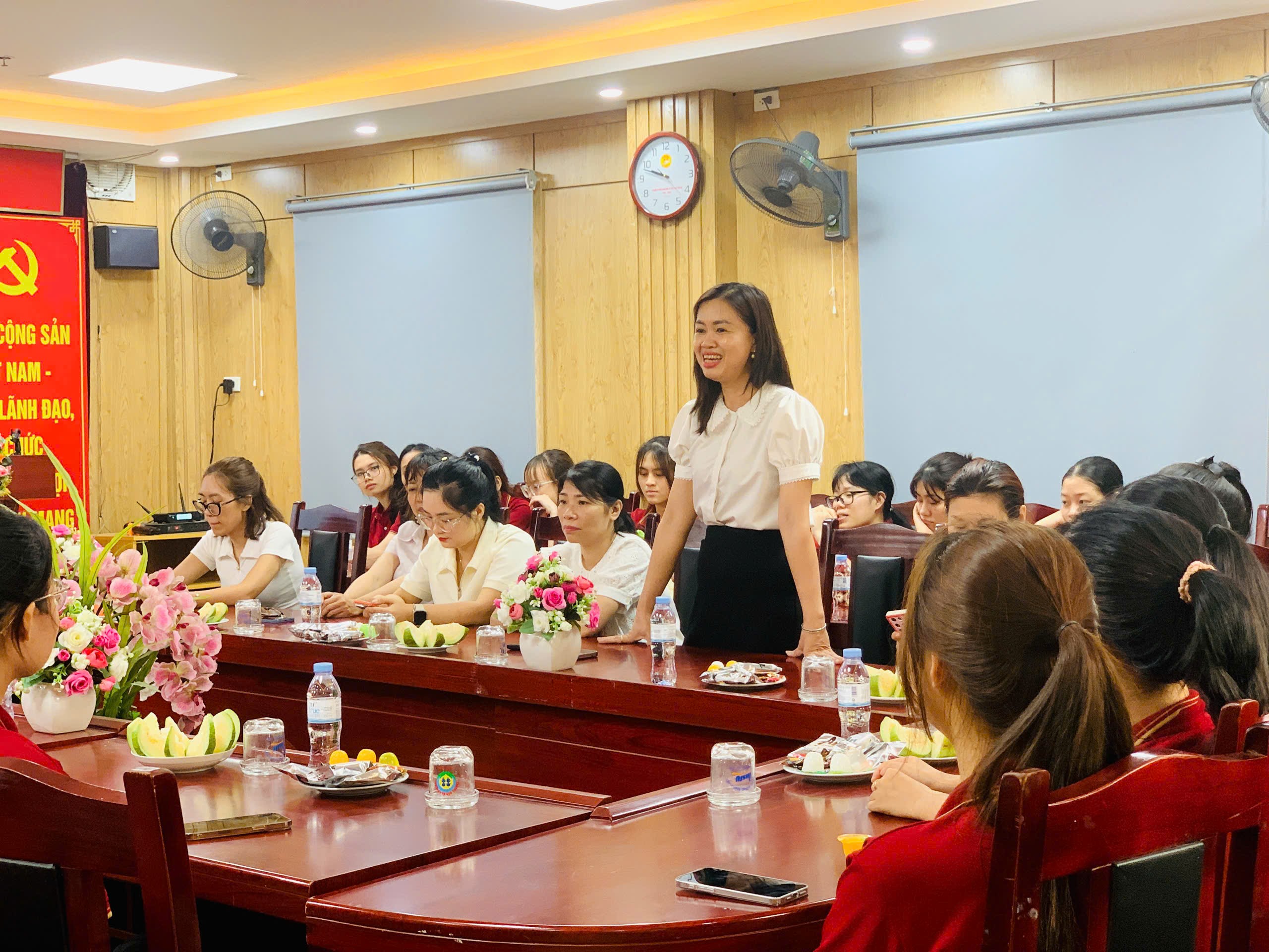 Tiếp theo đồng chí Bùi Thị Thu Hiền - Bí thư chi bộ hiệu trưởng nhà trường đã phát biểu ghi nhận, biểu dương tinh thần học tập nghiêm túc, thái độ cầu thị và tình yêu thương trẻ mà các bạn sinh viên đã thể hiện trong suốt thời gian qua, 100% các em đạt kết quả xuất sắc .