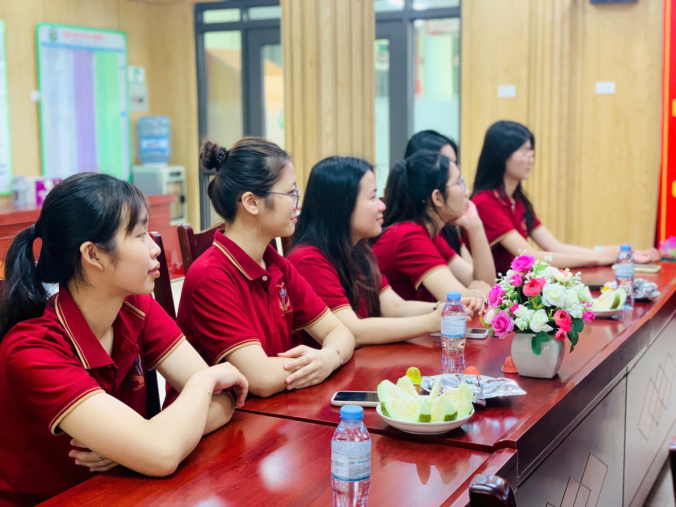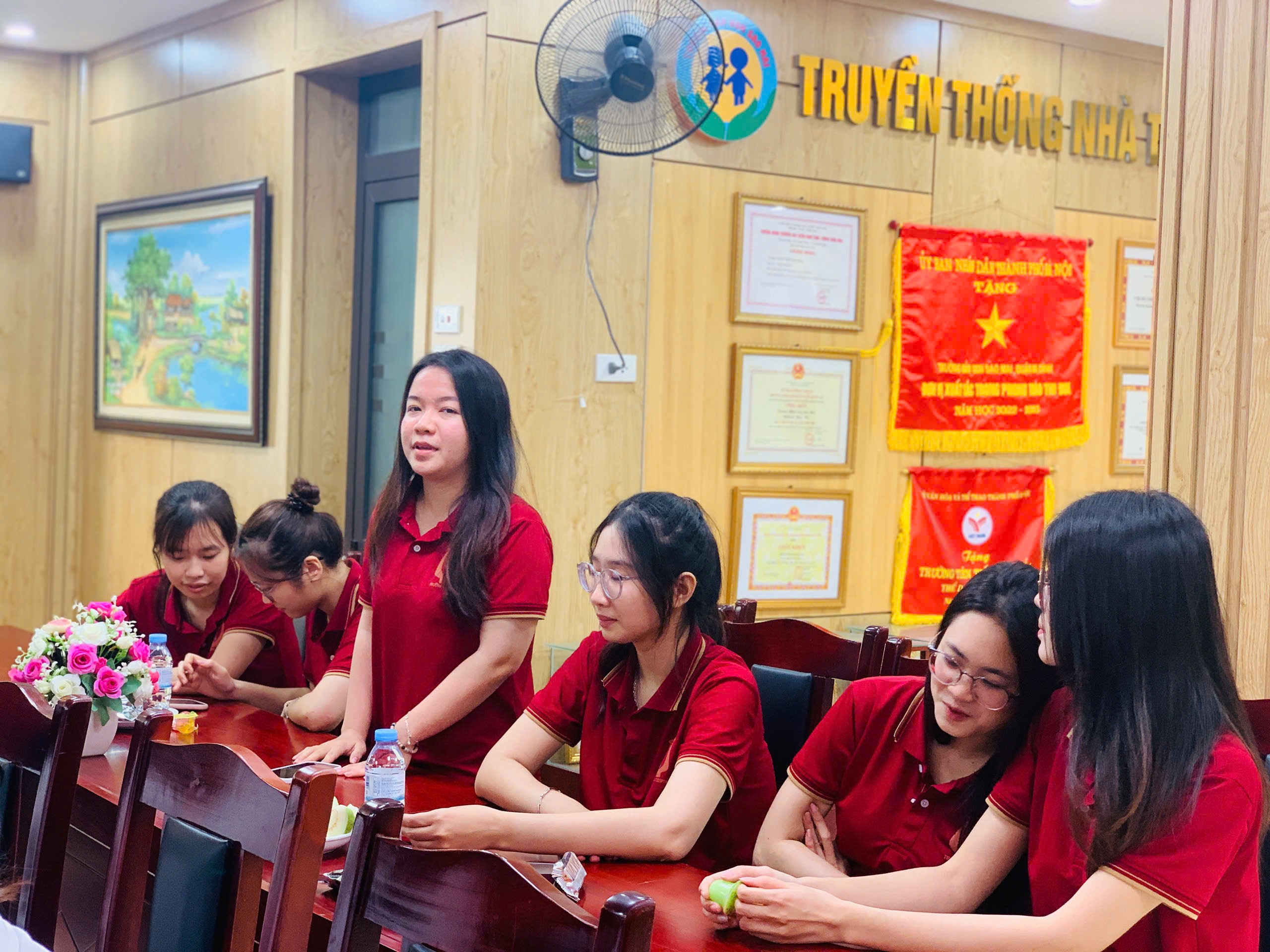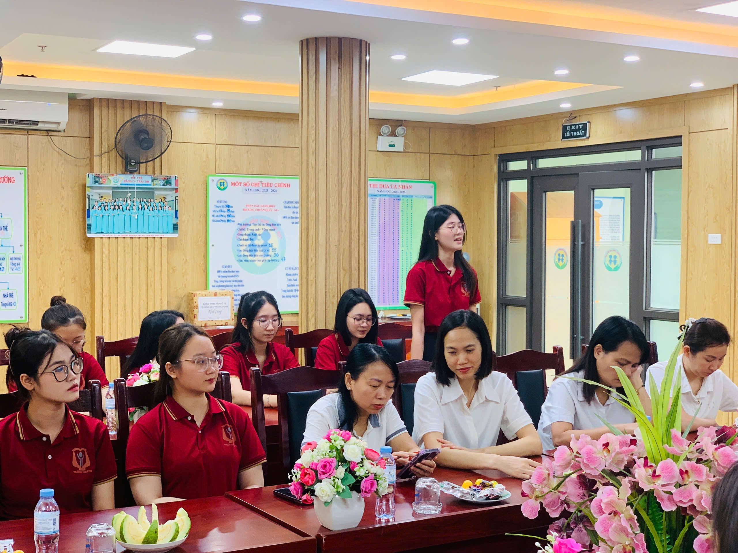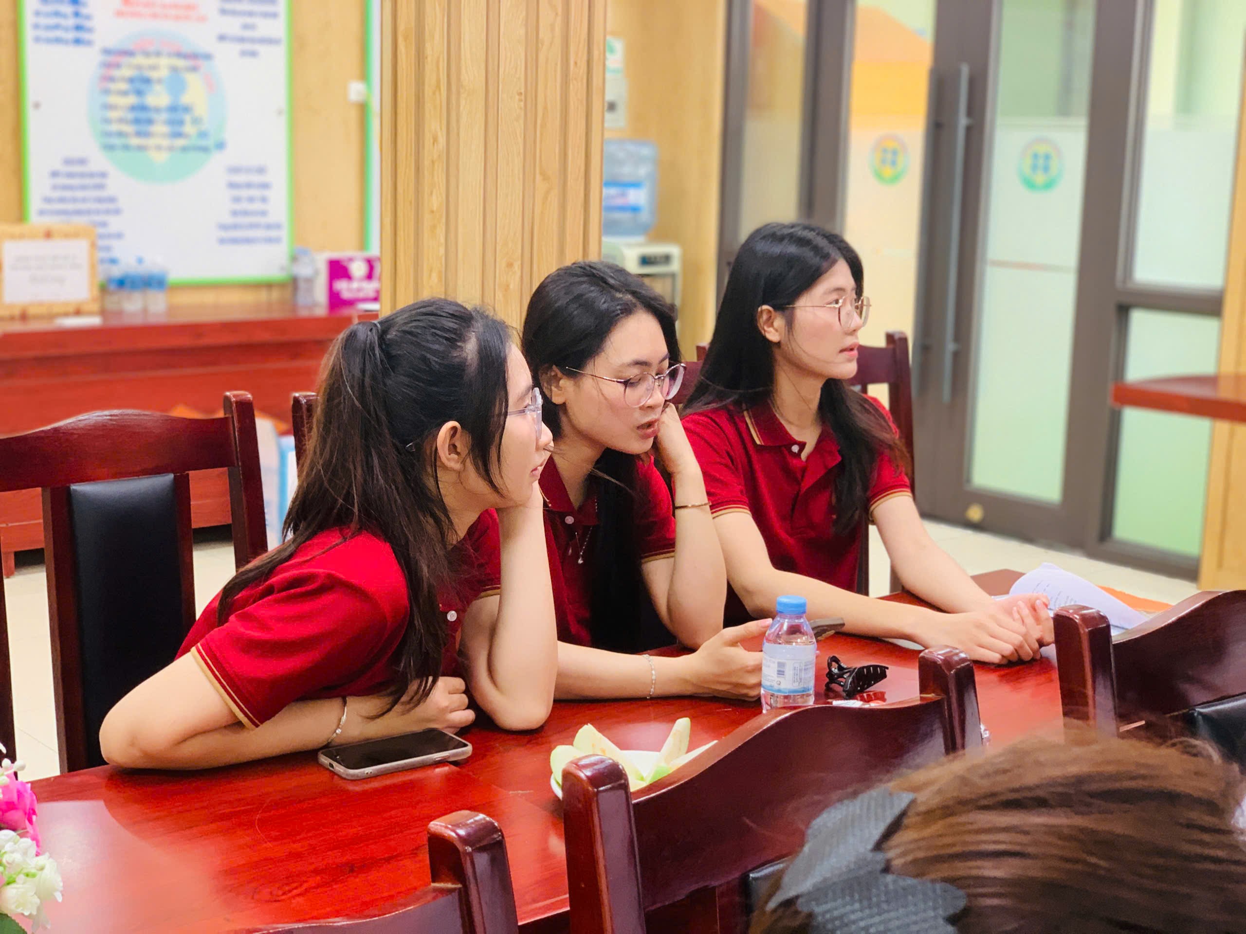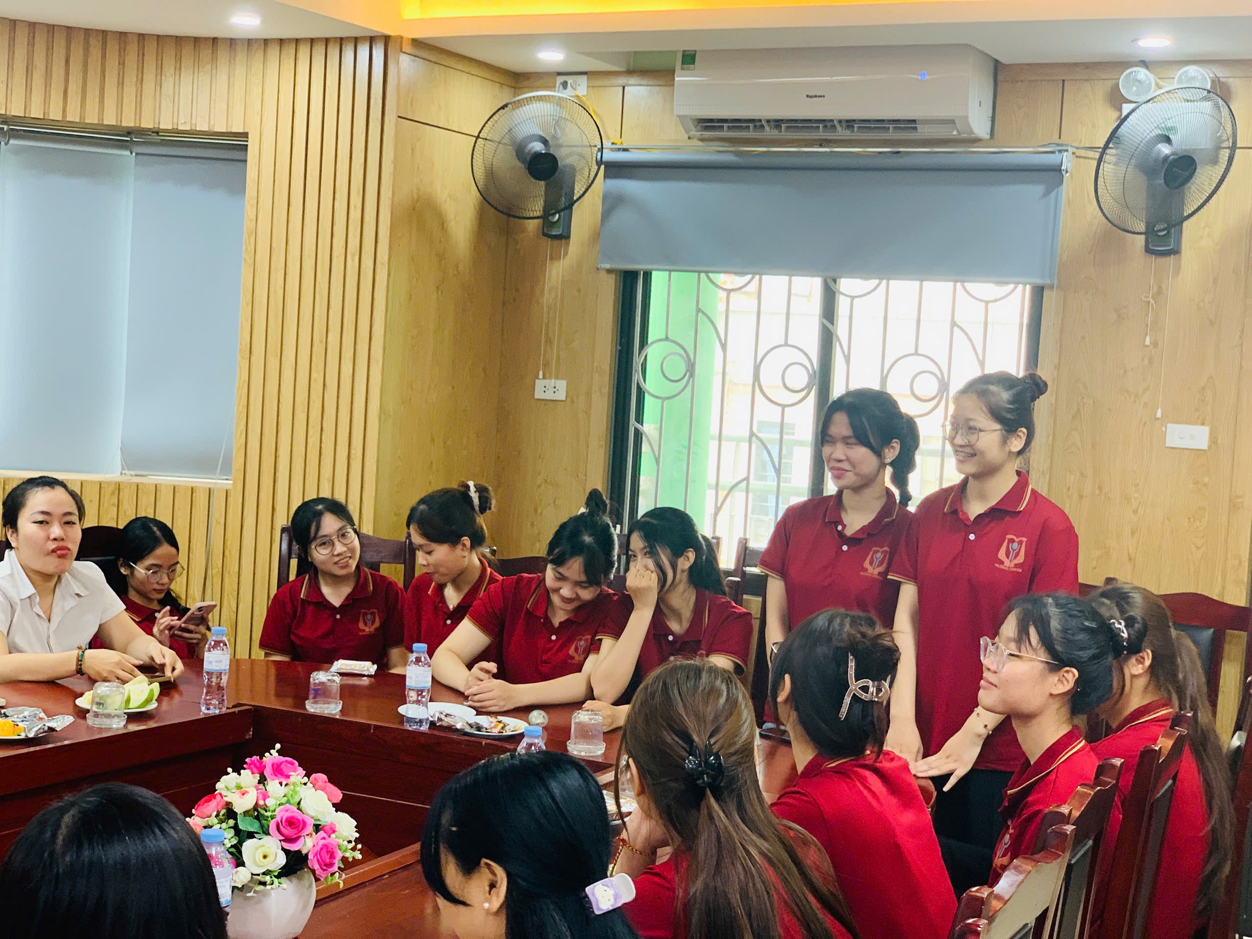 Những gương mặt hân hoan của các em sinh viên cùng lắng nghe Cô Đỗ Thị Hương Giang phó hiệu trưởng nhà trường  báo cáo kết quả thực tập tại trường .