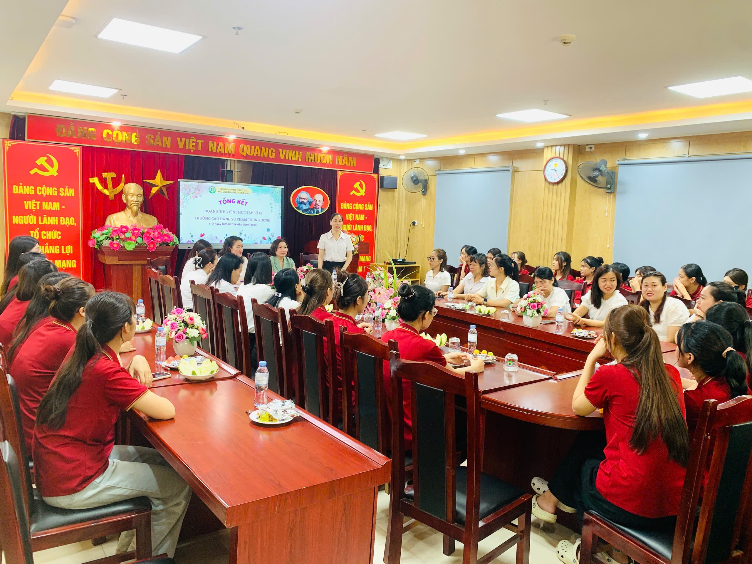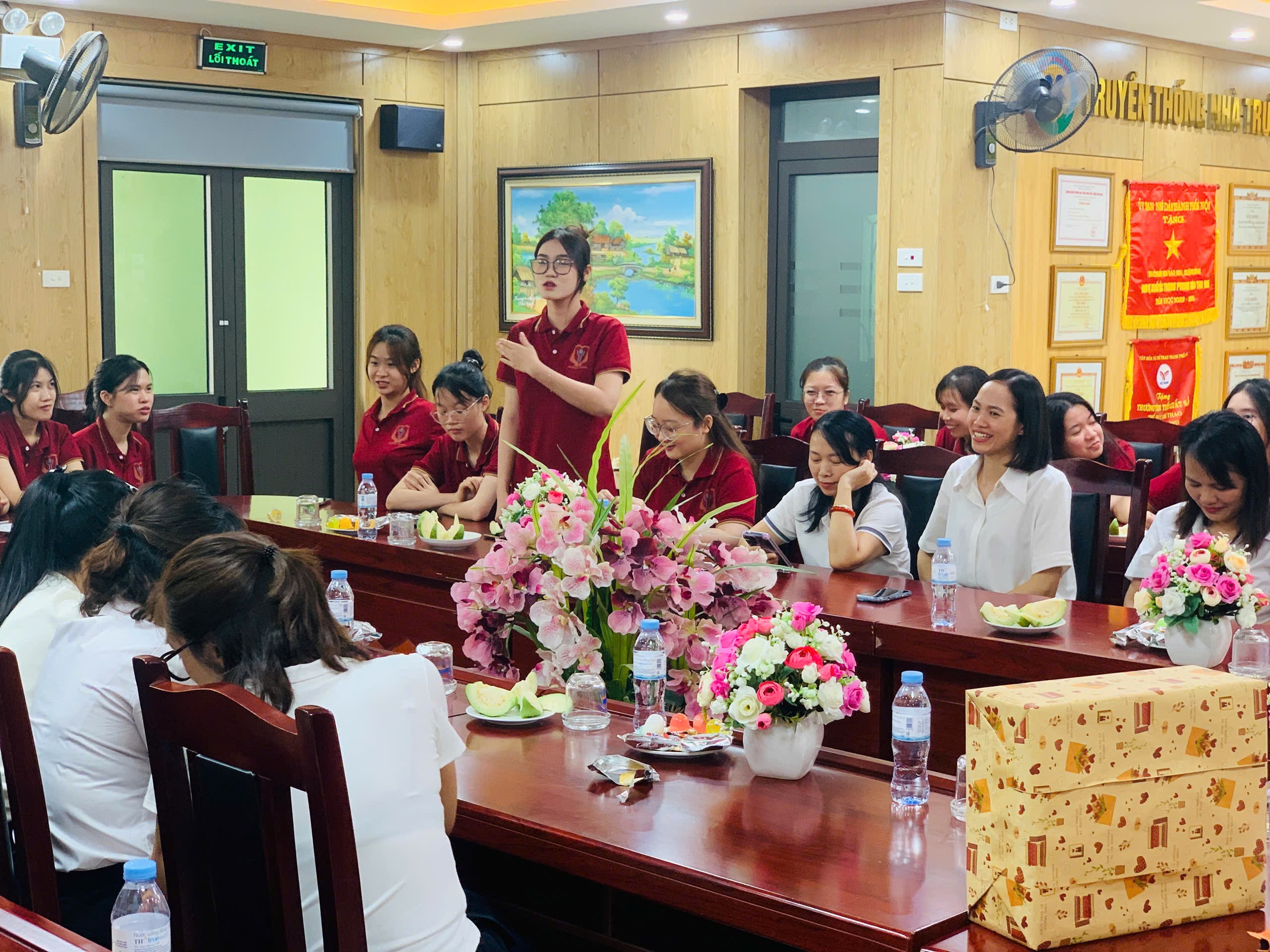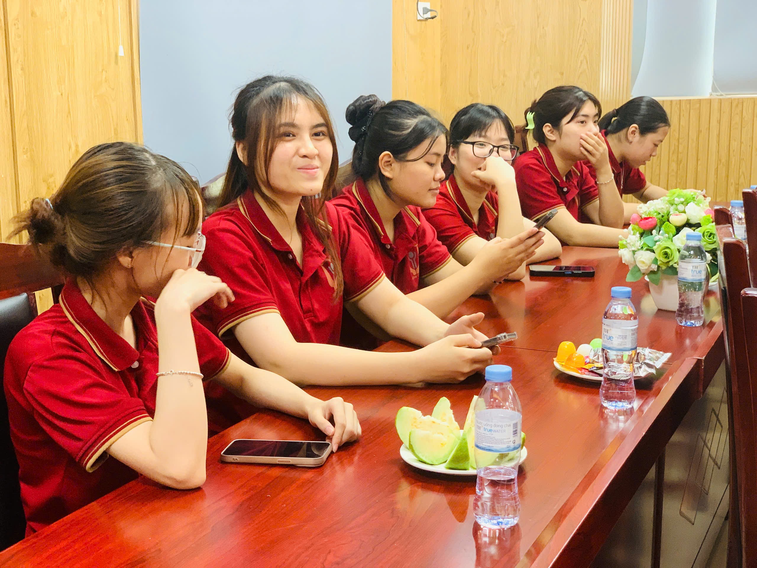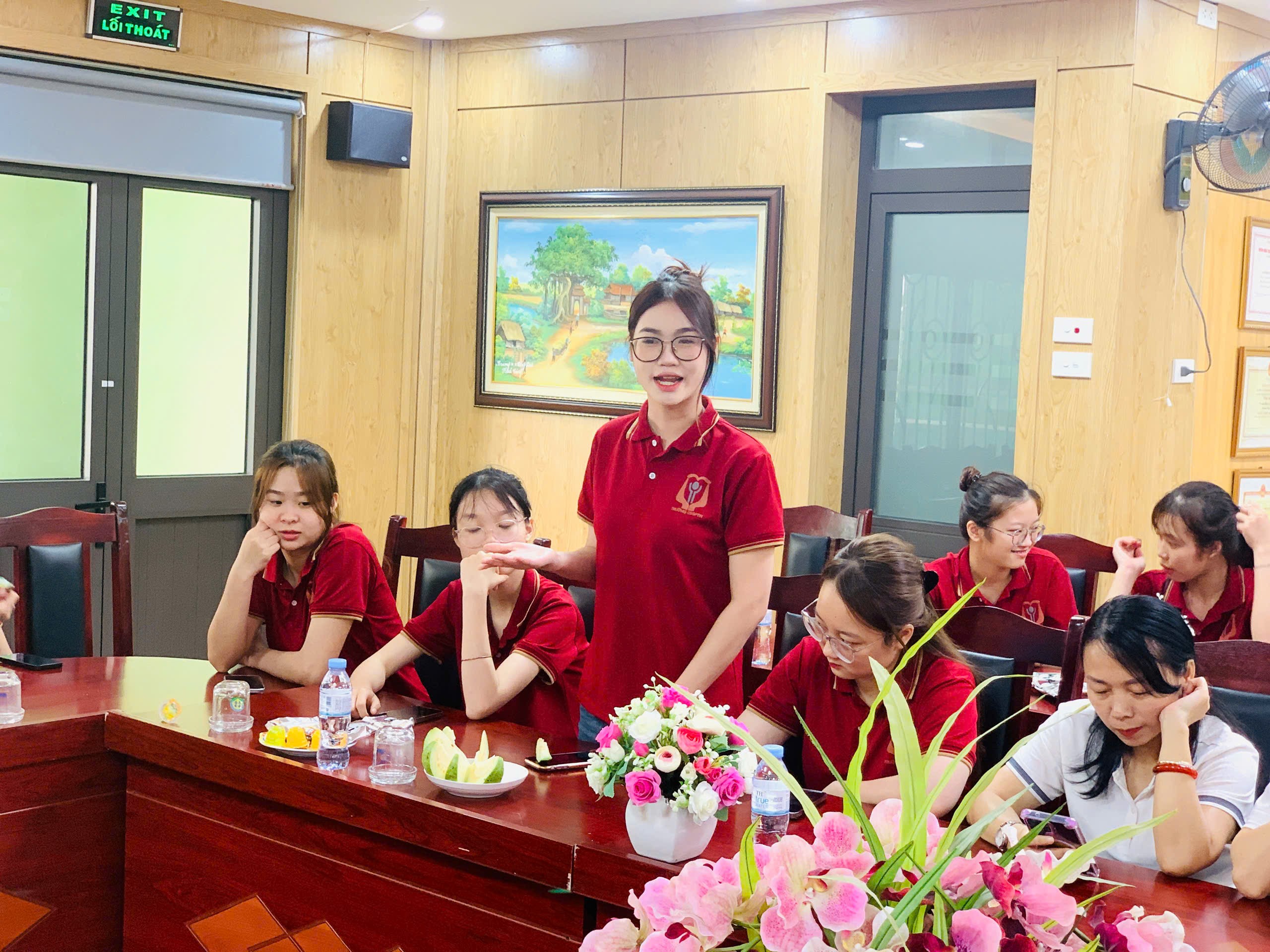 Những gương mặt hân hoan của các em sinh viên cùng lắng nghe Cô Đỗ Thị Hương Giang phó hiệu trưởng nhà trường  báo cáo kết quả thực tập tại trường .