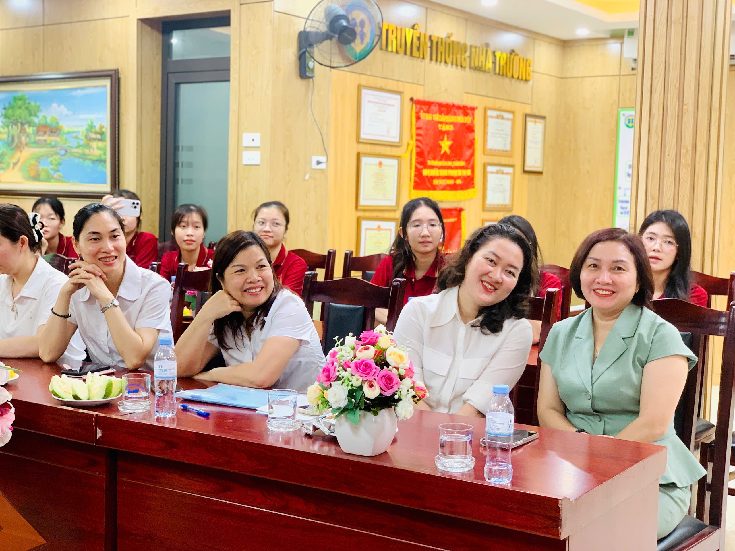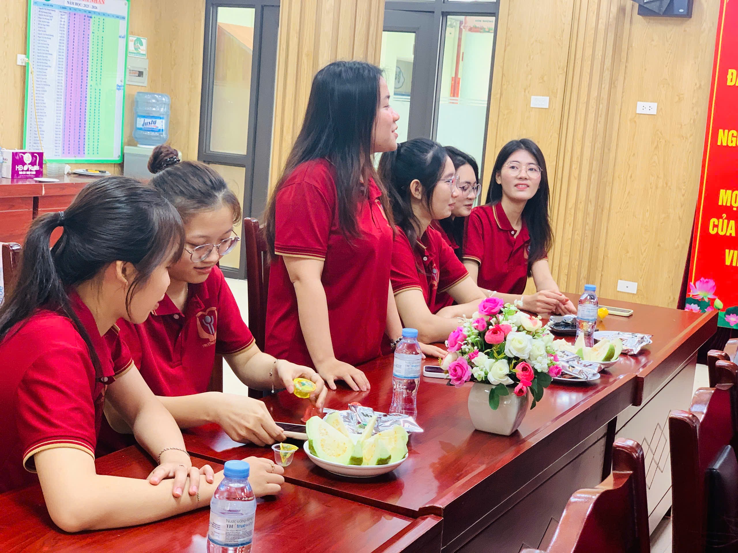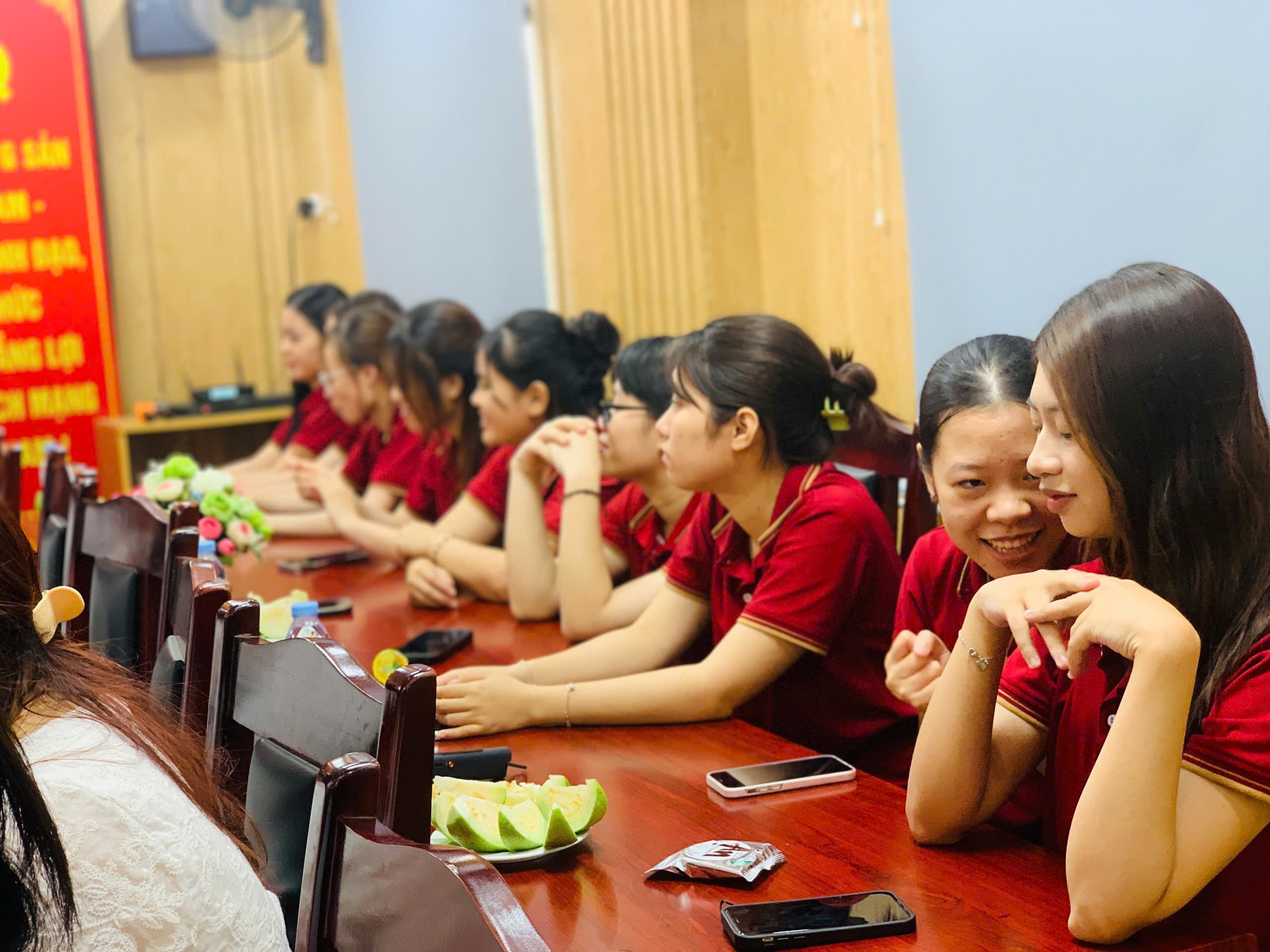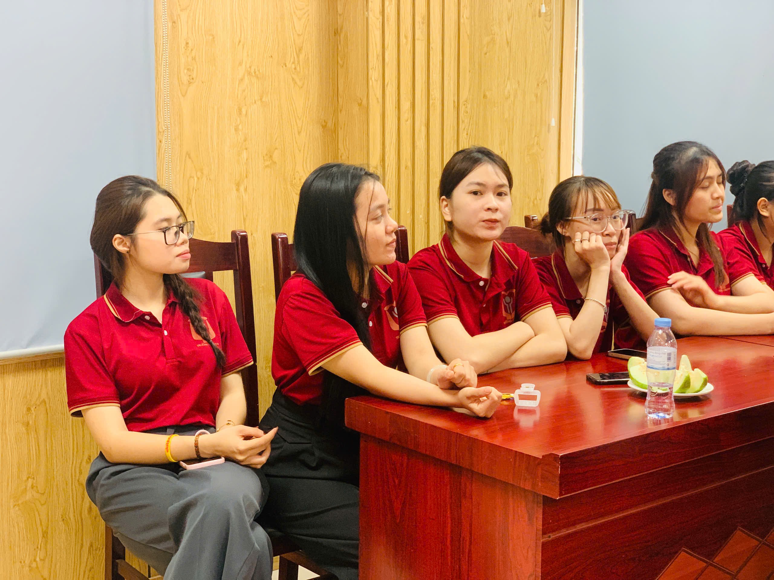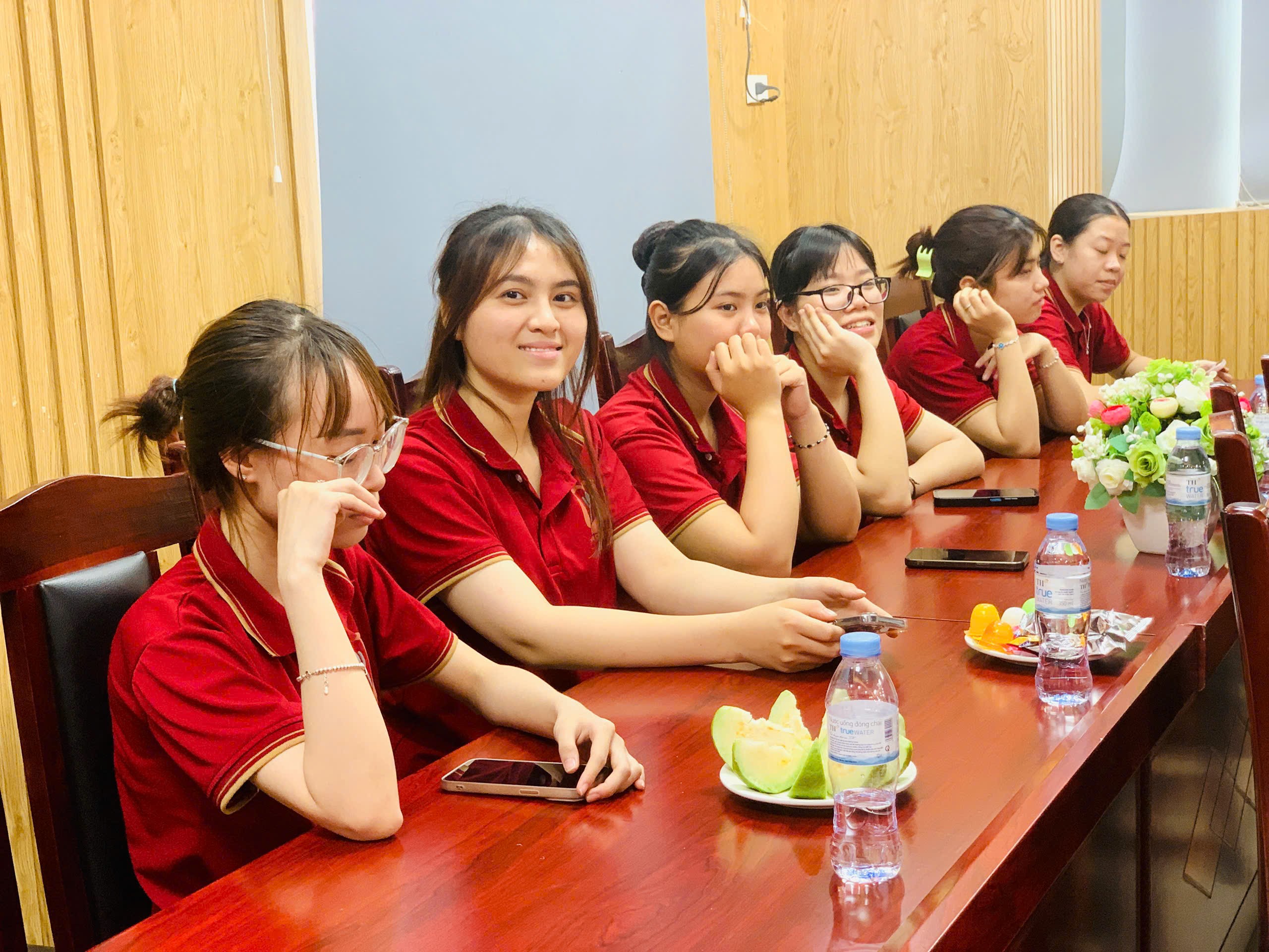 Những gương mặt hân hoan của các em sinh viên cùng lắng nghe Cô Đỗ Thị Hương Giang phó hiệu trưởng nhà trường  báo cáo kết quả thực tập tại trường .