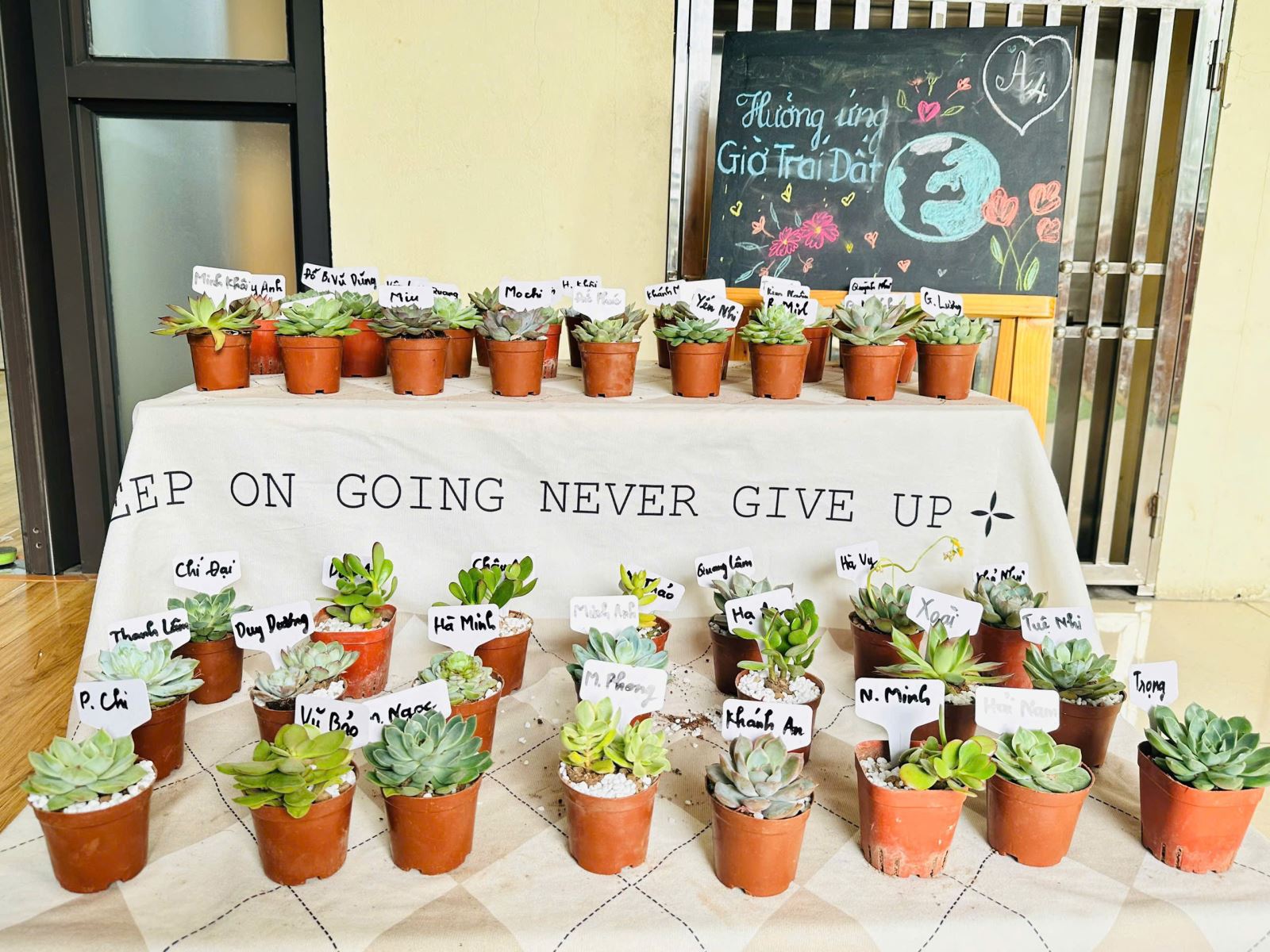 Nội dung thông điệp còn được truyền tải tới cha mẹ học sinh nhà trường thông qua bảng tuyên truyền của lớp, Website của nhà trường và động viên cha mẹ học sinh cùng tham gia các hoạt động hưởng ứng Giờ Trái đất ngay tại lớp của con.