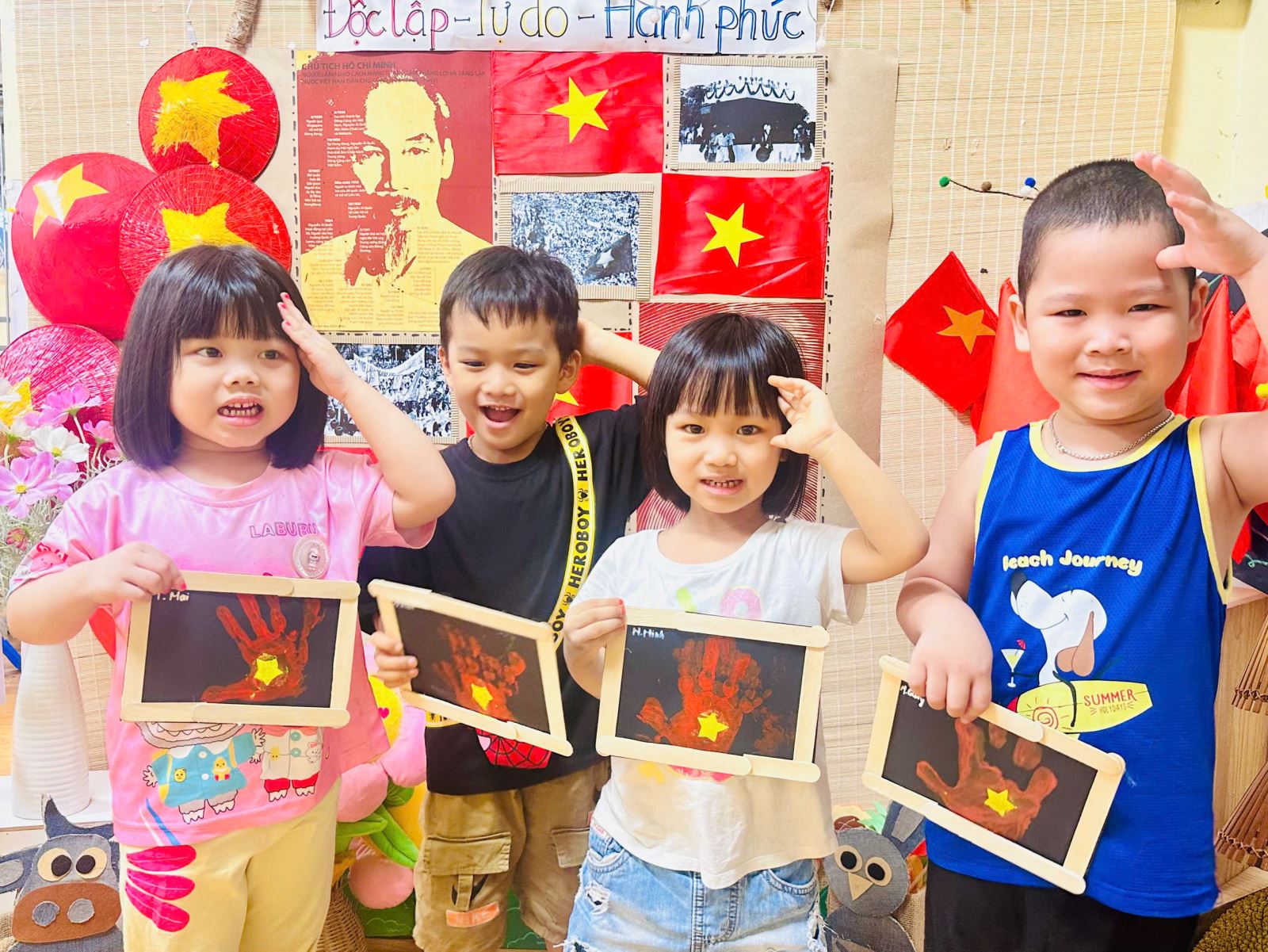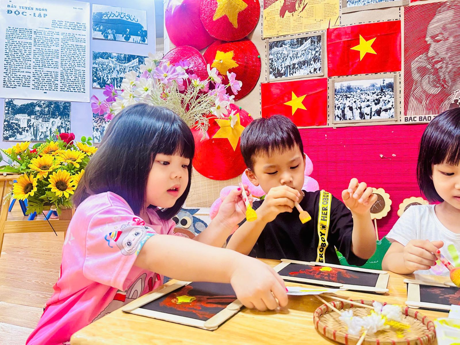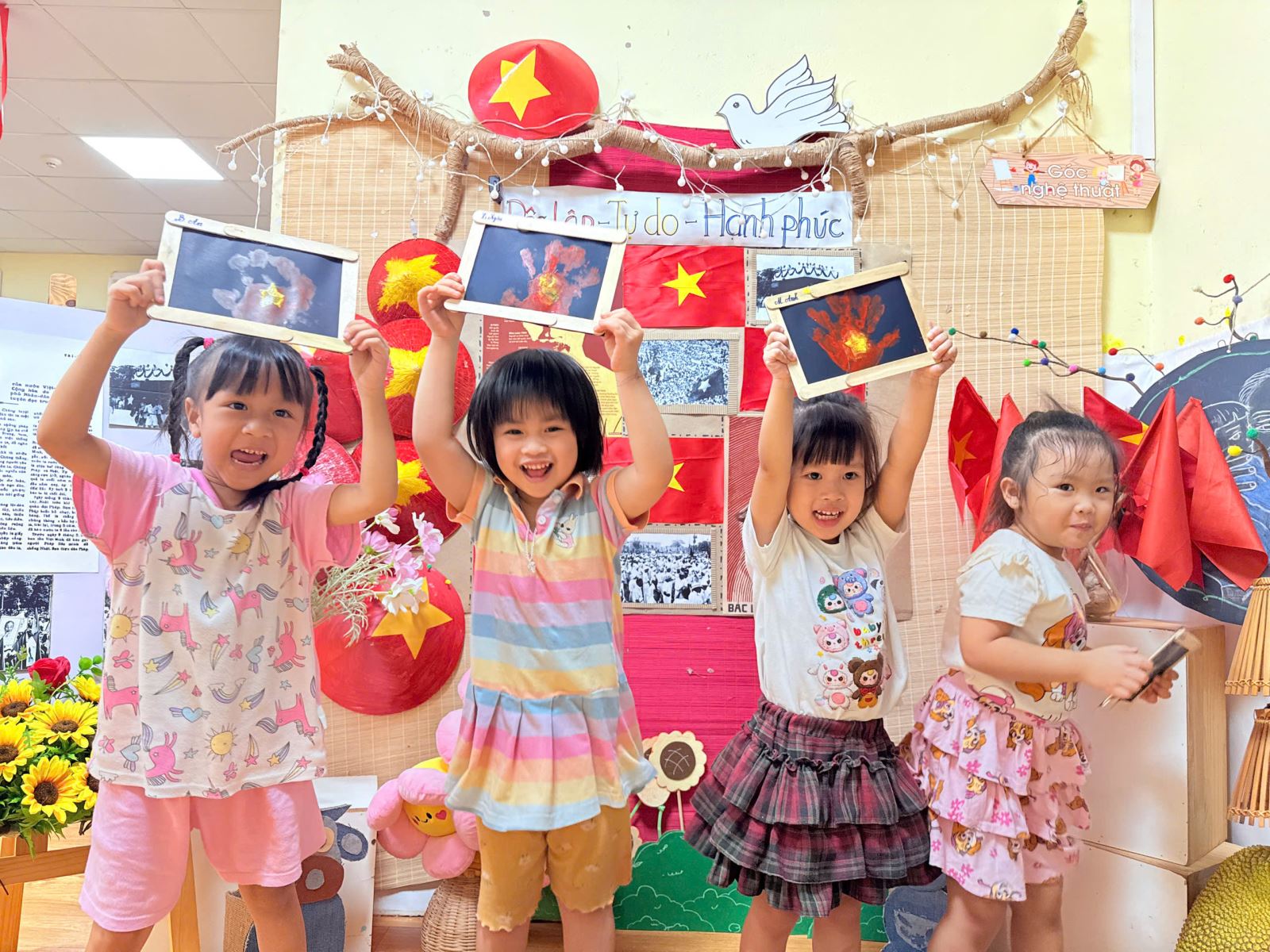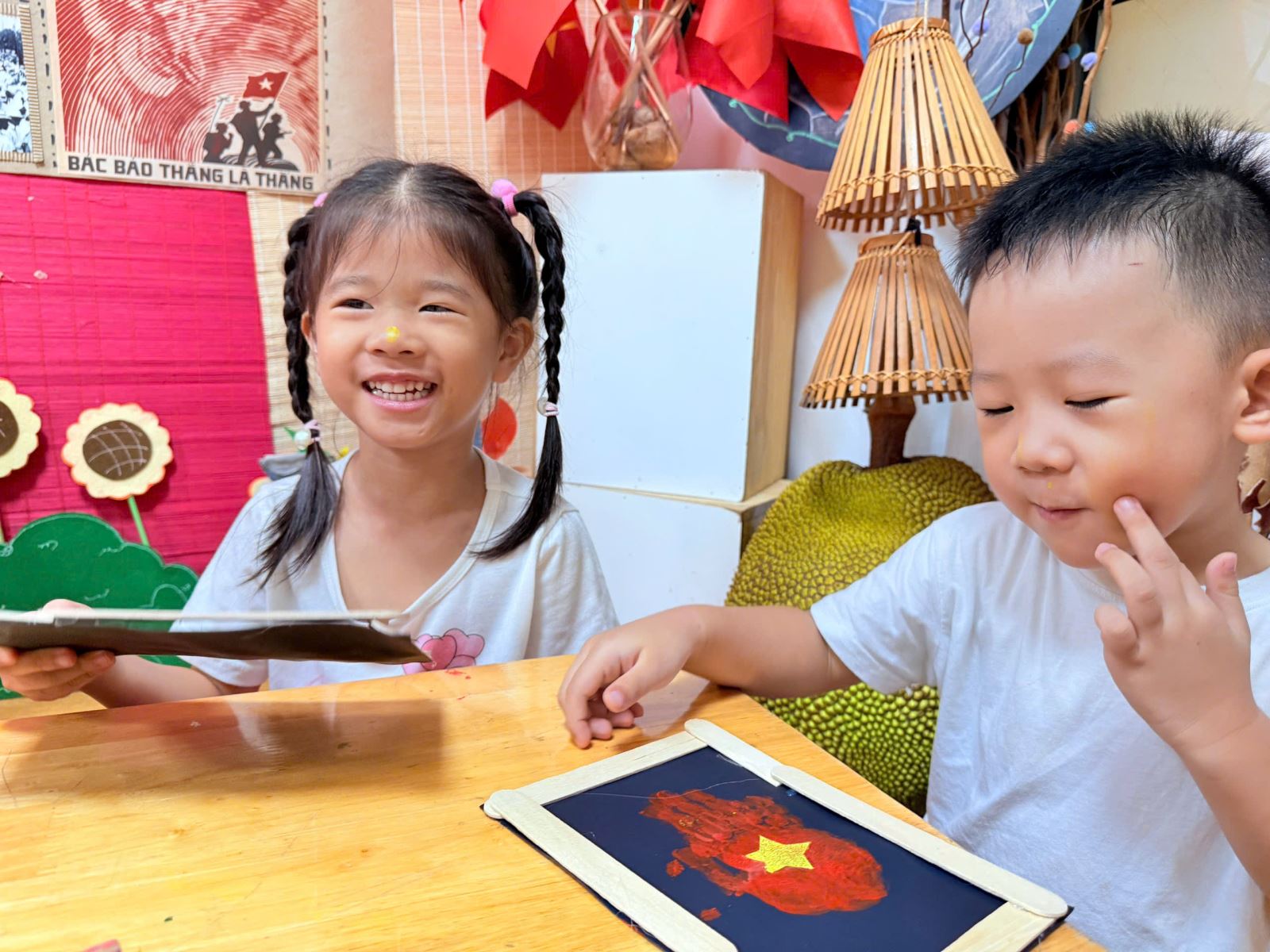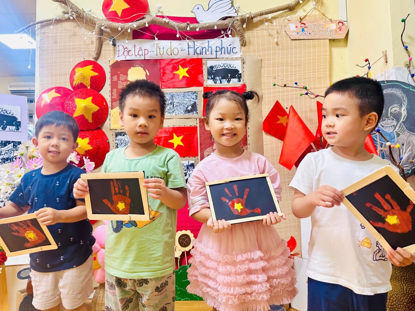 Qua hoạt động này, các bé đã có được thật nhiều trải nghiệm quý giá. Các bé yêu được học cách khám phá màu sắc và chất liệu, để bàn tay trở thành “chiếc cọ đặc biệt” vẽ nên niềm tự hào. Gieo vào lòng trẻ những mầm non đầu tiên của tình yêu đất nước, niềm tự hào dân tộc và sự trân trọng với lá cờ đỏ sao vàng.