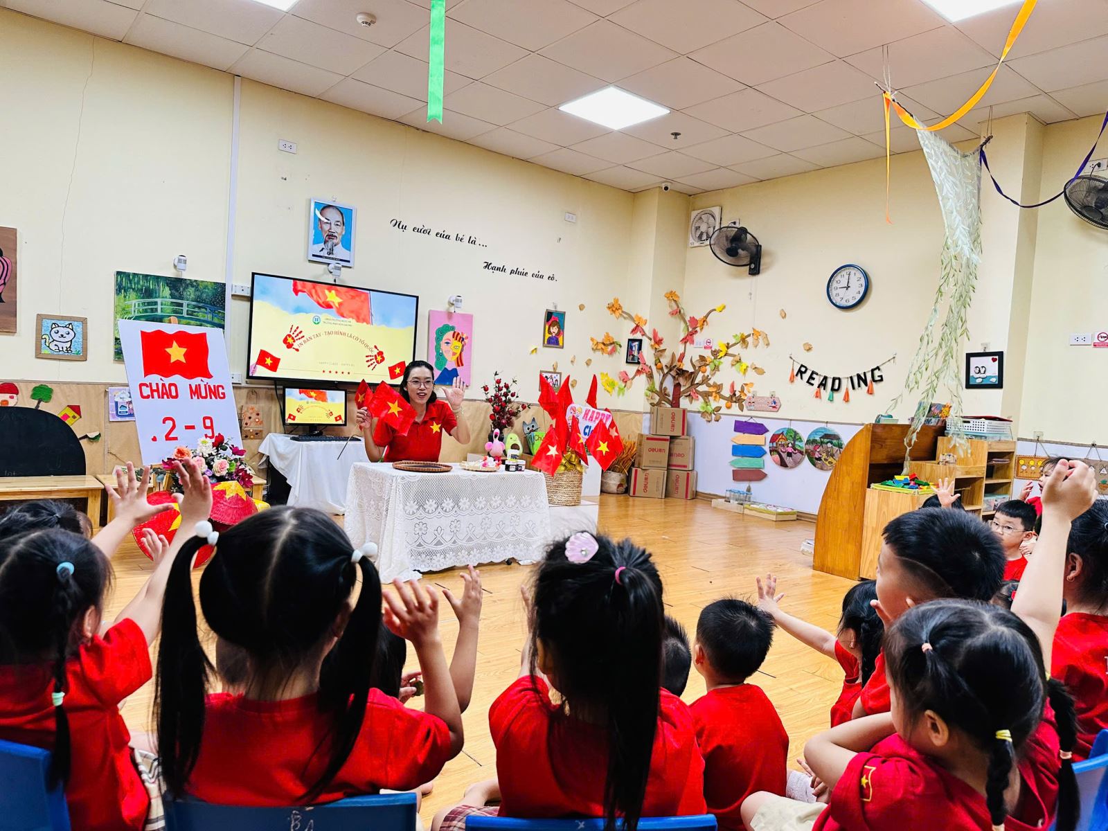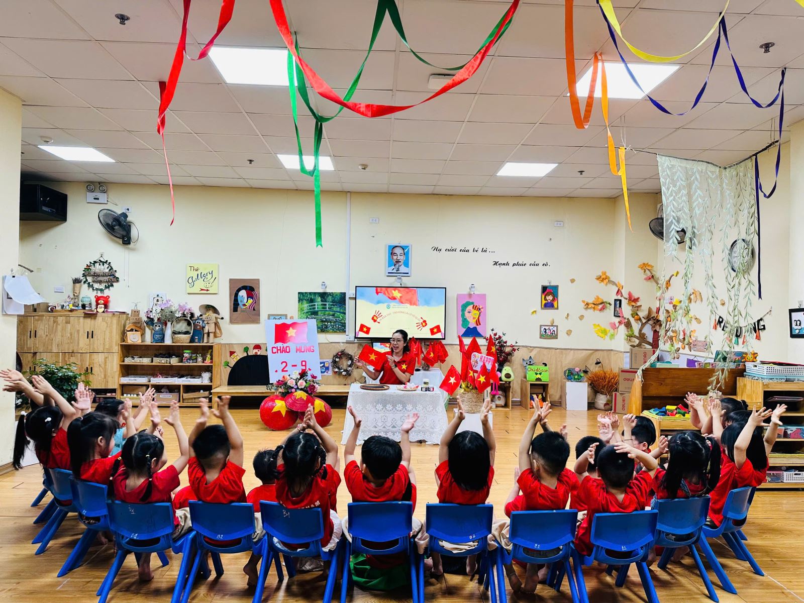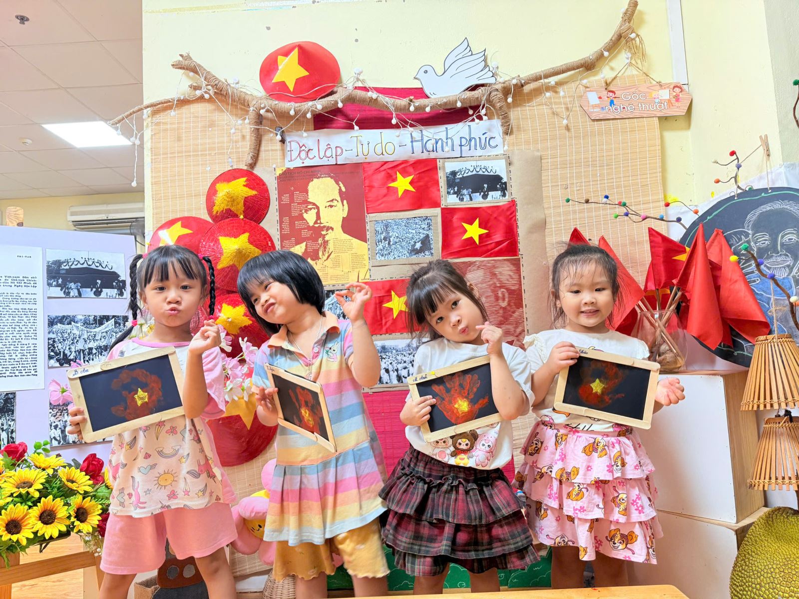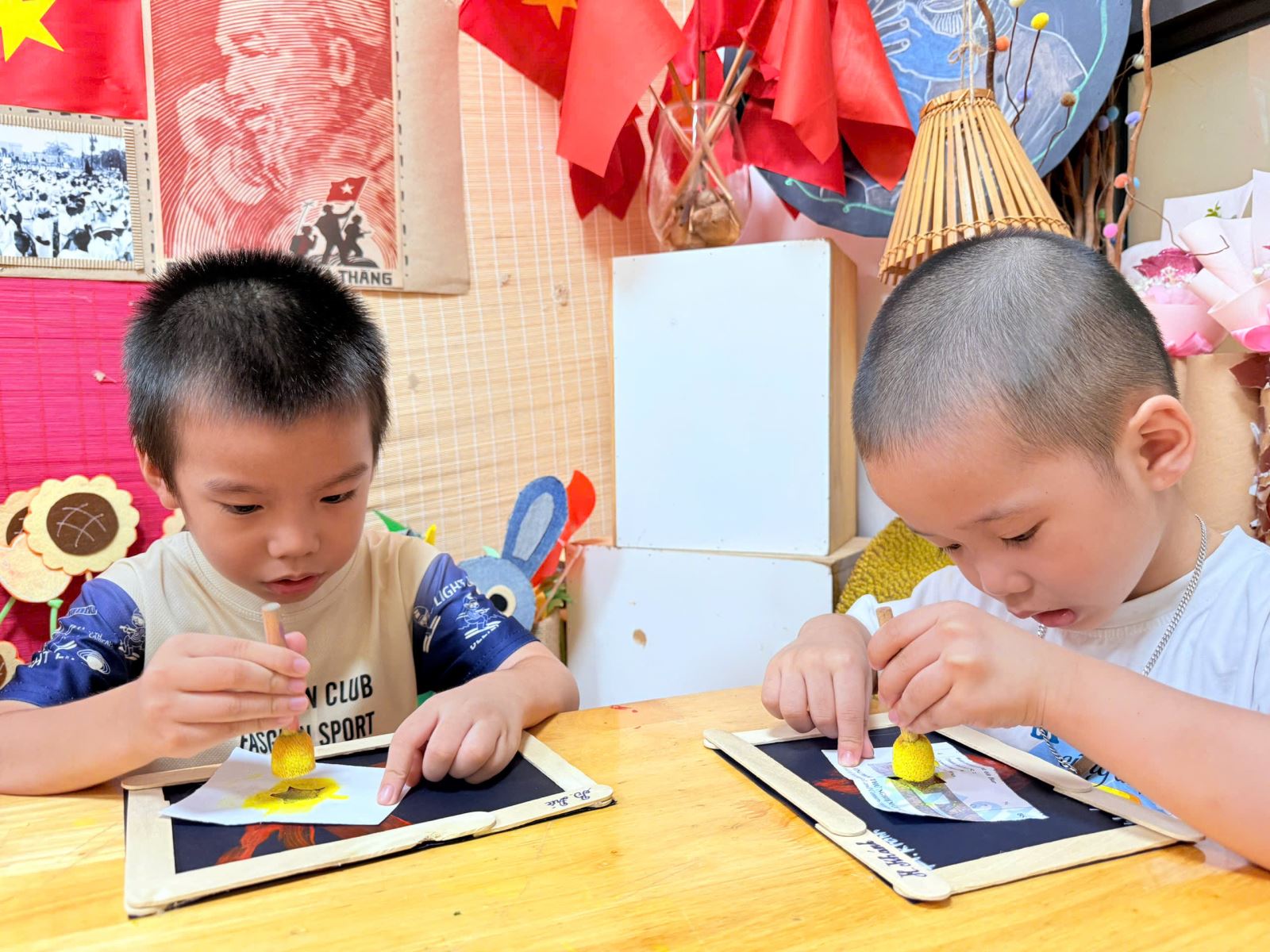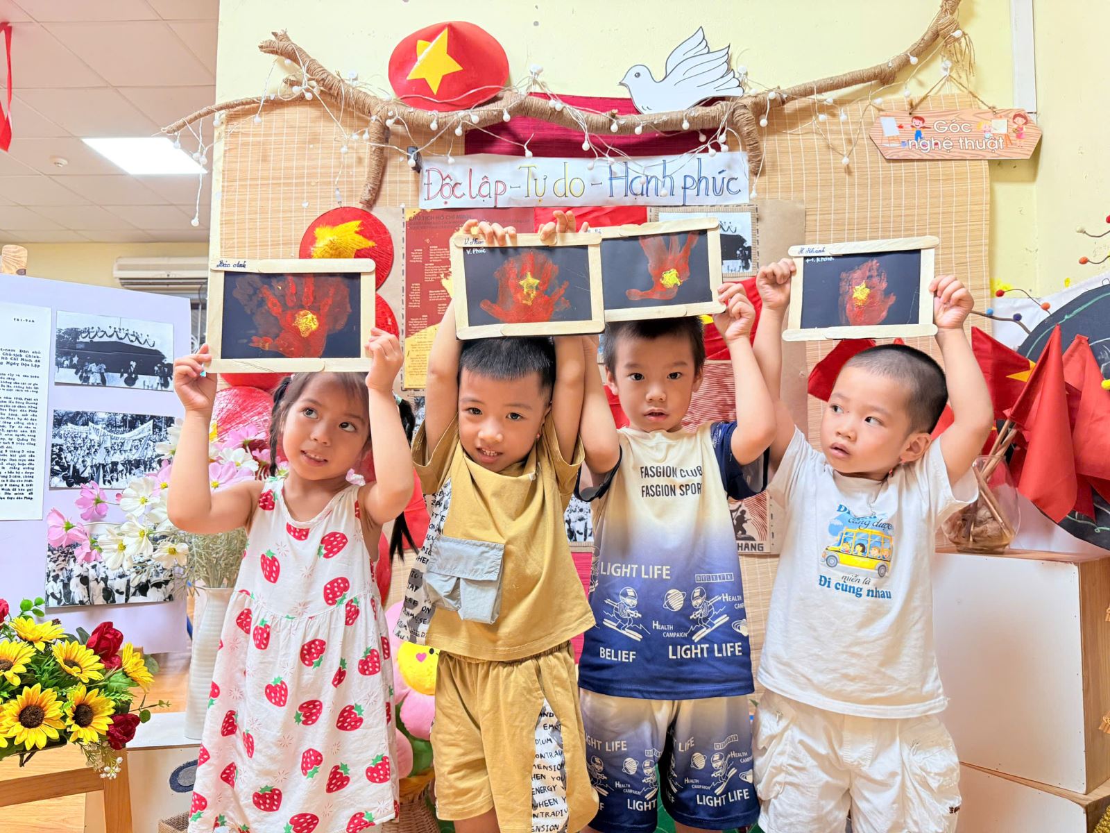 Qua hoạt động này, các bé đã có được thật nhiều trải nghiệm quý giá. Các bé yêu được học cách khám phá màu sắc và chất liệu, để bàn tay trở thành “chiếc cọ đặc biệt” vẽ nên niềm tự hào. Gieo vào lòng trẻ những mầm non đầu tiên của tình yêu đất nước, niềm tự hào dân tộc và sự trân trọng với lá cờ đỏ sao vàng.