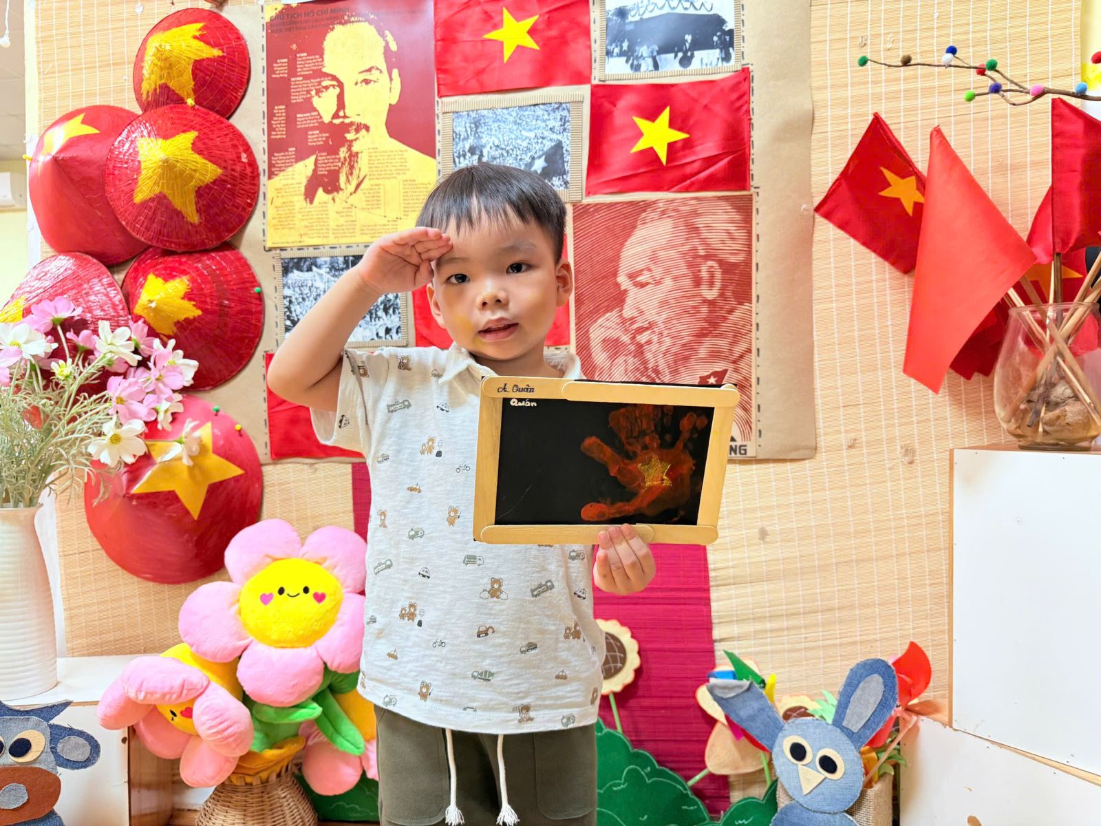 Lá cờ được dệt nên từ đôi bé xinh của trẻ không chỉ rực rỡ sắc màu, mà còn sáng lên niềm tin, hy vọng về một thế hệ mai sau – những công dân nhỏ hôm nay sẽ là chủ nhân tương lai, tiếp bước xây dựng và gìn giữ non sông đất nước.