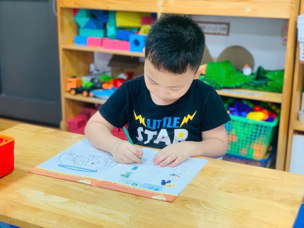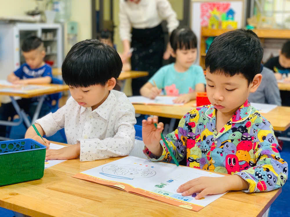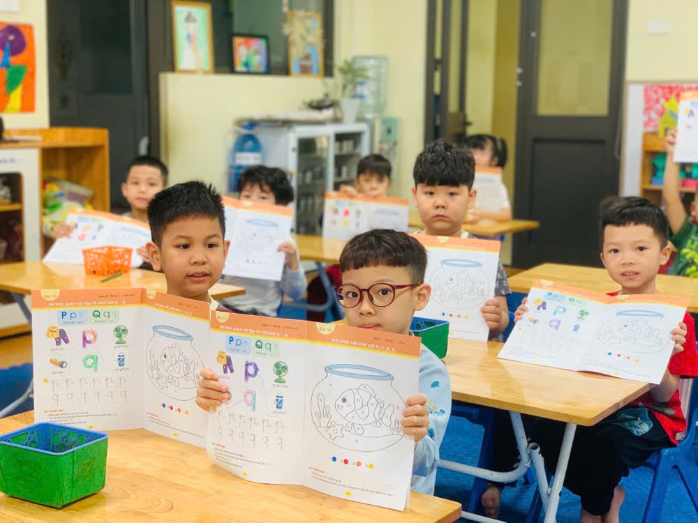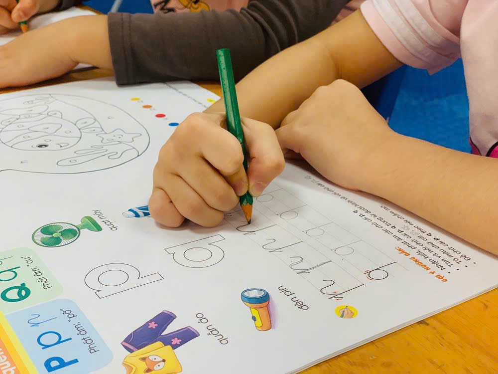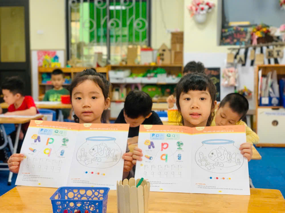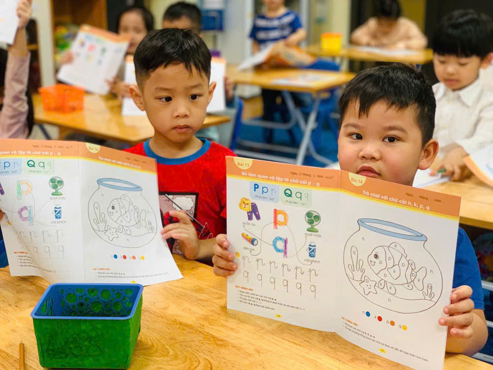 Giờ học tập tô chữ cái p - q, sẵn sàng vào lớp 1 của các bé lớp mẫu giáo lớn A1