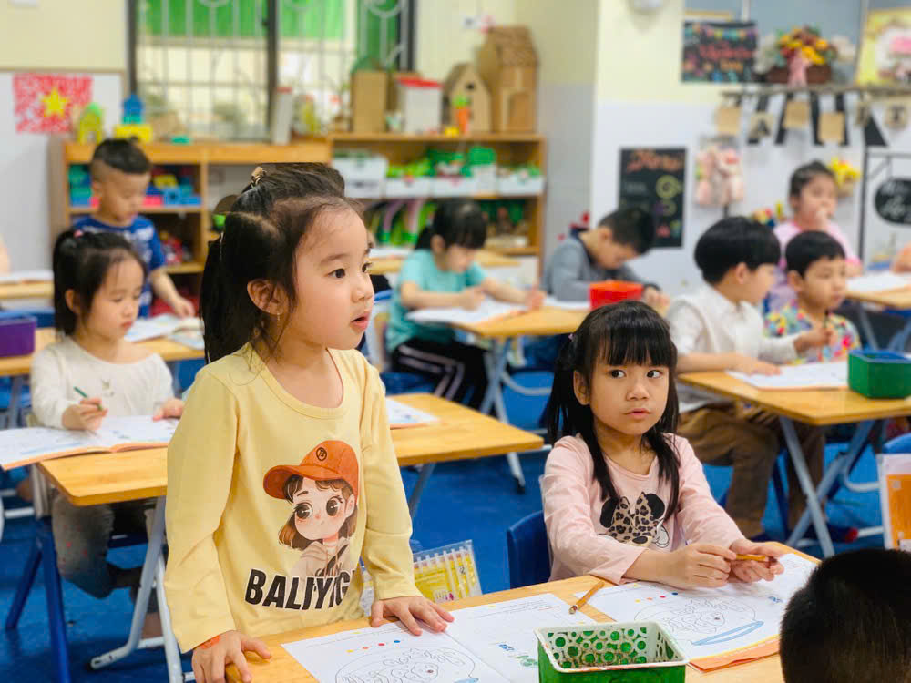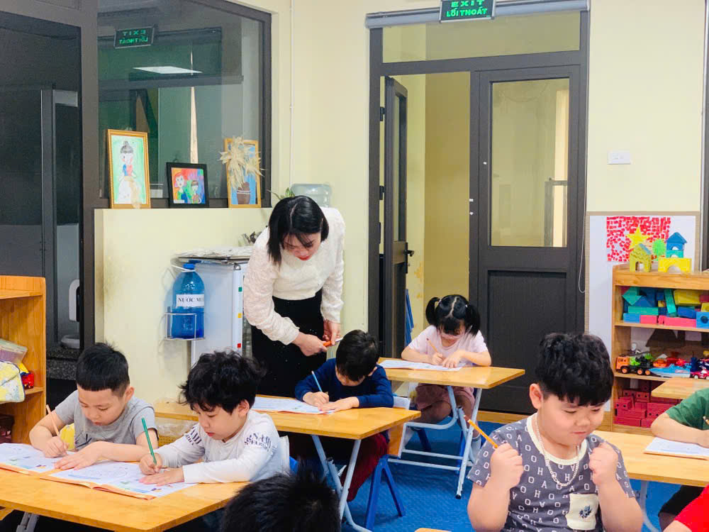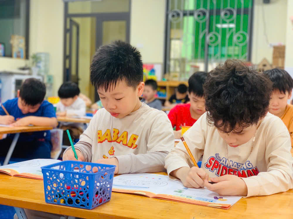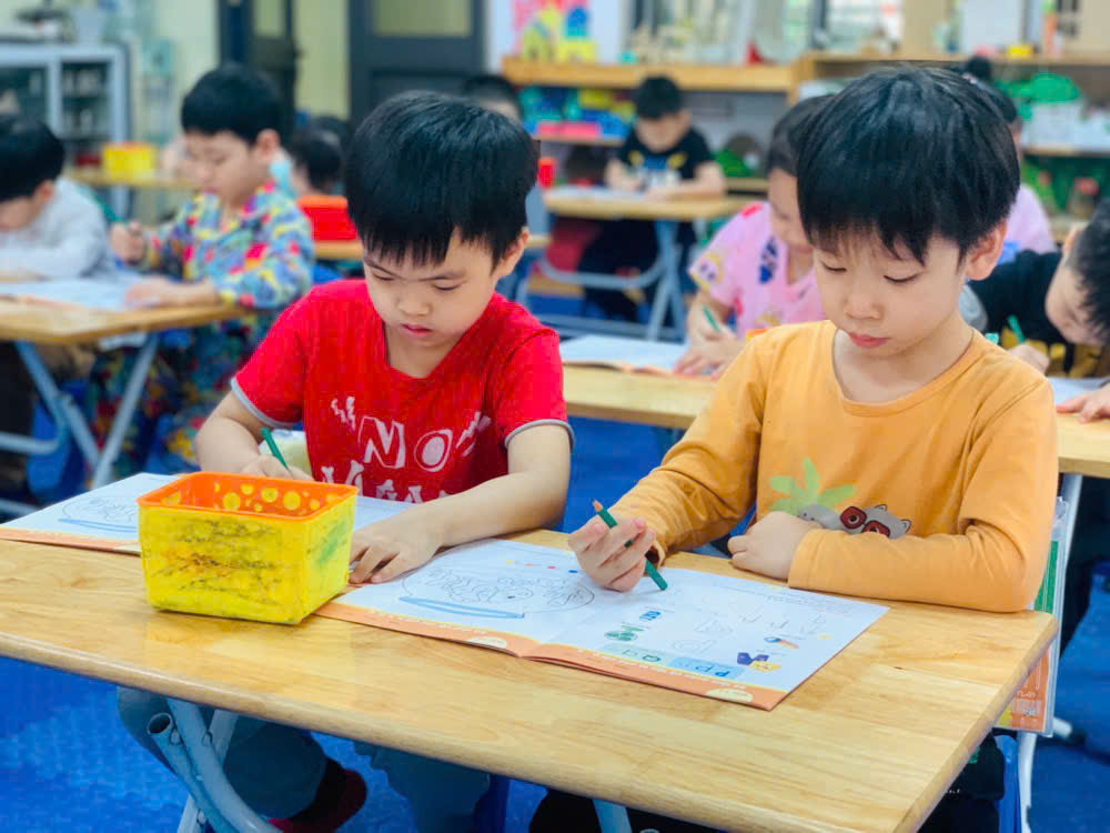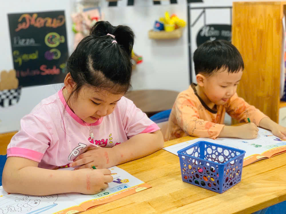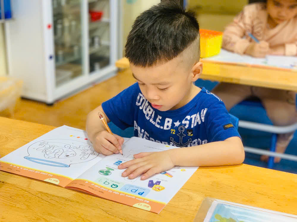 Giờ học tập tô chữ cái p - q, sẵn sàng vào lớp 1 của các bé lớp mẫu giáo lớn A1