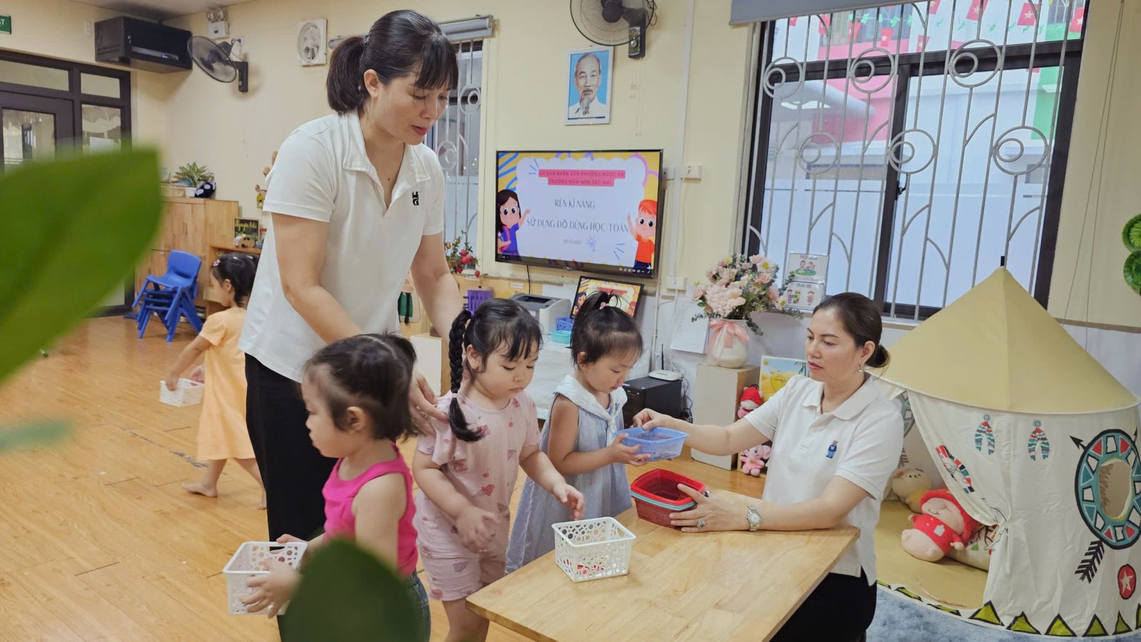 Ở lứa tuổi mẫu giáo nhỡ (4-5 tuổi), trẻ bắt đầu hình thành những khái niệm toán học đơn giản qua trải nghiệm và vui chơi. Việc rèn cho trẻ kĩ năng sử dụng đồ dùng học toán như que tính, khối hình, bảng số, thẻ chấm tròn… không chỉ giúp trẻ học cách đếm, so sánh, phân loại, ghép đôi mà còn khơi gợi khả năng tư duy logic và sáng tạo.