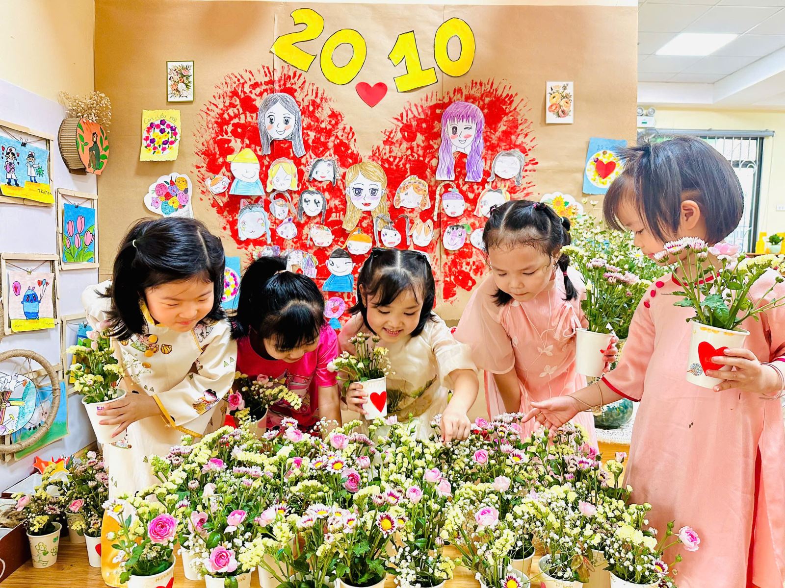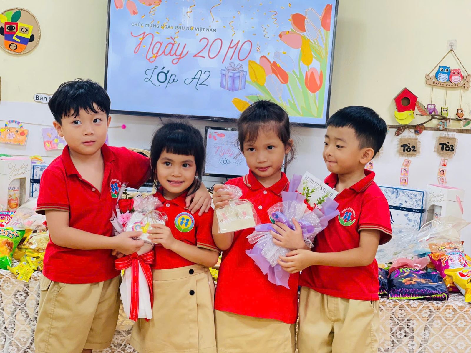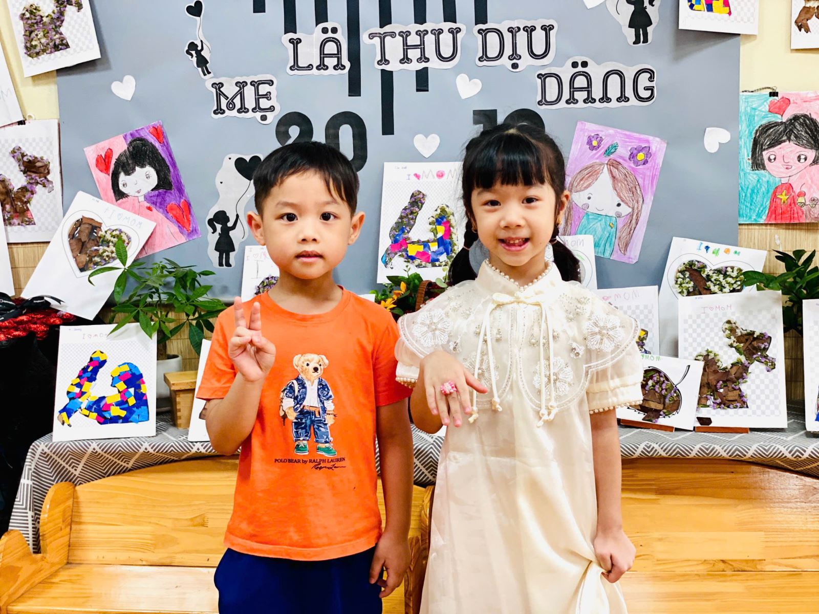 Đó là chuỗi Creative workshop: Vẽ và viết lời chúc, lời yêu thương bằng bút dạ màu trên chất liệu túi giấy của các bé lớp A2; Làm tranh từ lá khô của các bé lớp A1; Làm bưu thiếp sáng tạo, dễ thương của các bé lớp A3; Trang trí cốc giấy và cắm hoa tươi tặng mẹ của các bé lớp A4 ... Ngoài ra còn có buổi Live concert vô cùng hoành tráng để các bé thi đua biểu diễn, những bài hát múa nhằm gửi những tình cảm sâu đậm từ trái tim của các con đến các Bà, các Mẹ.