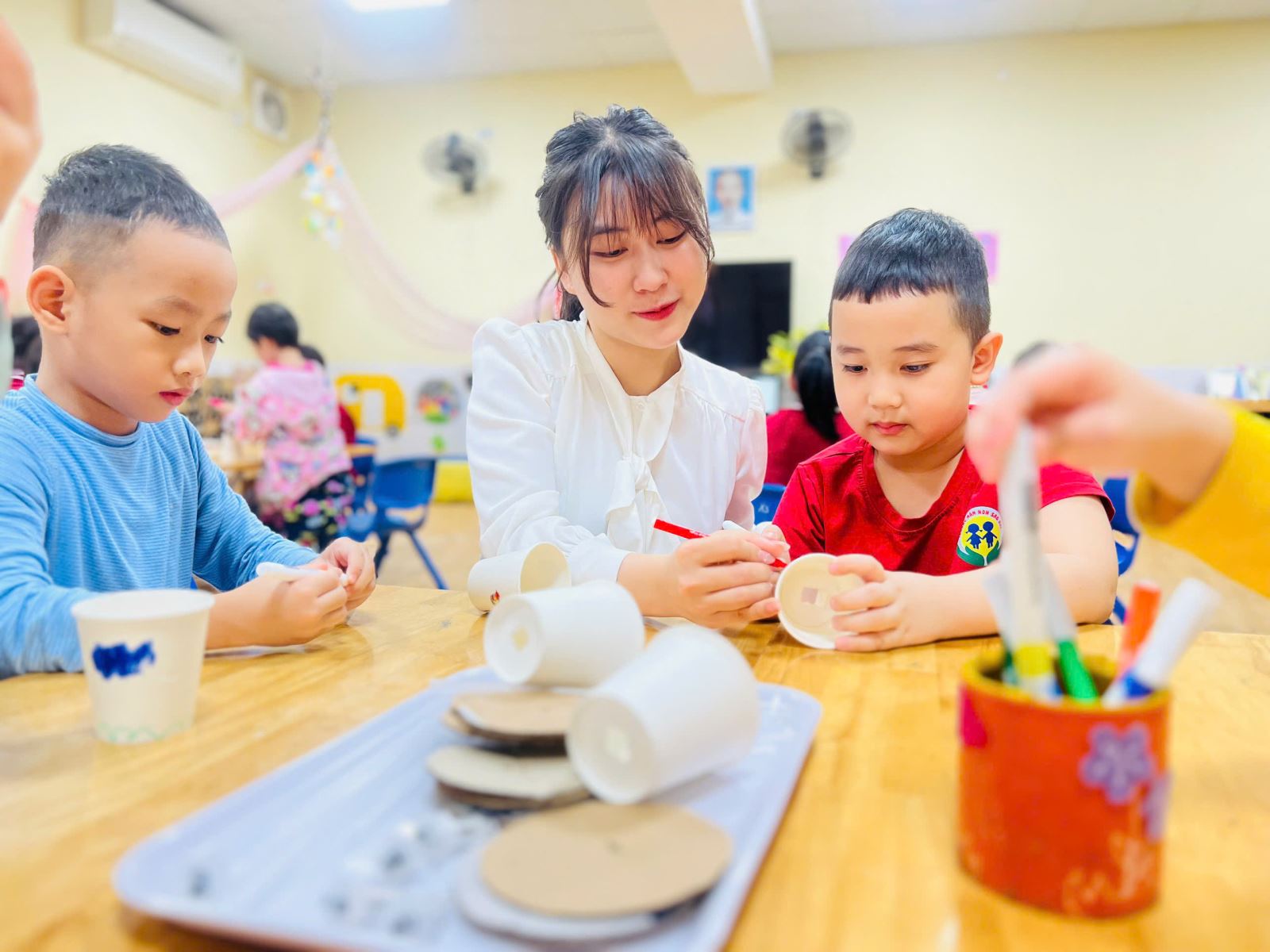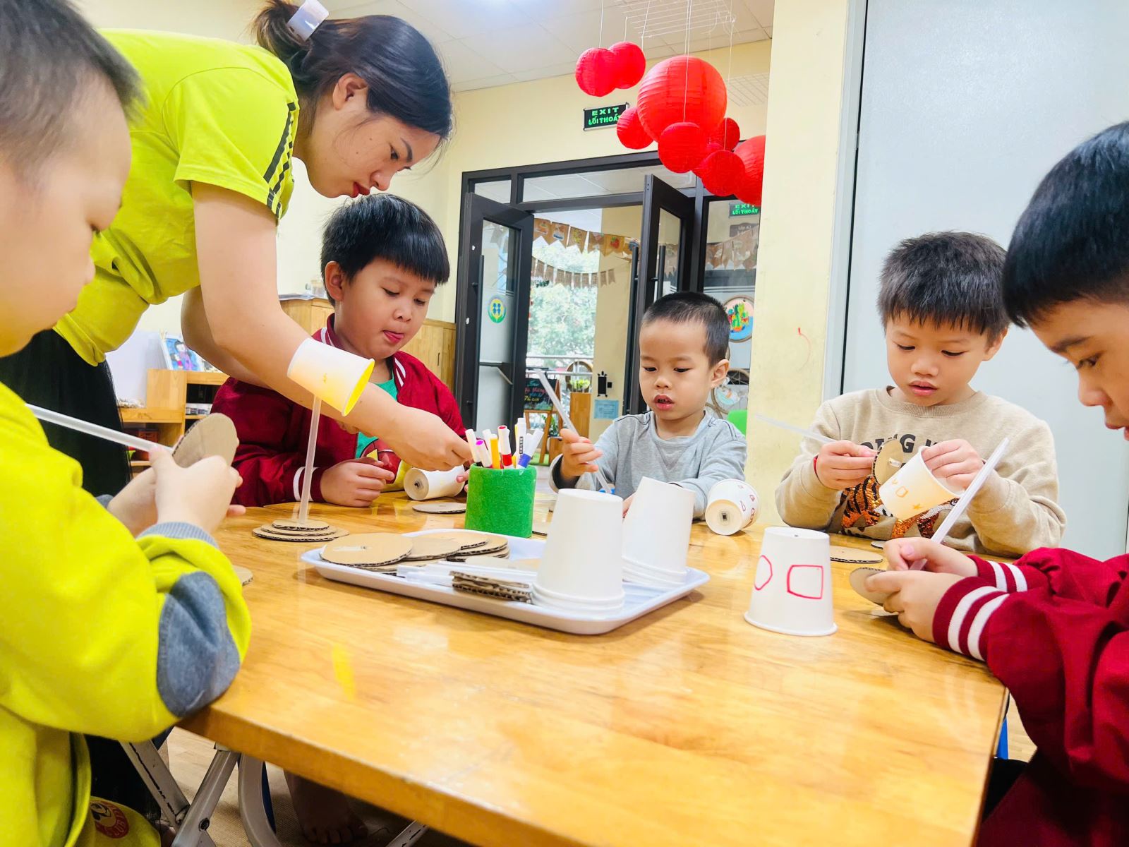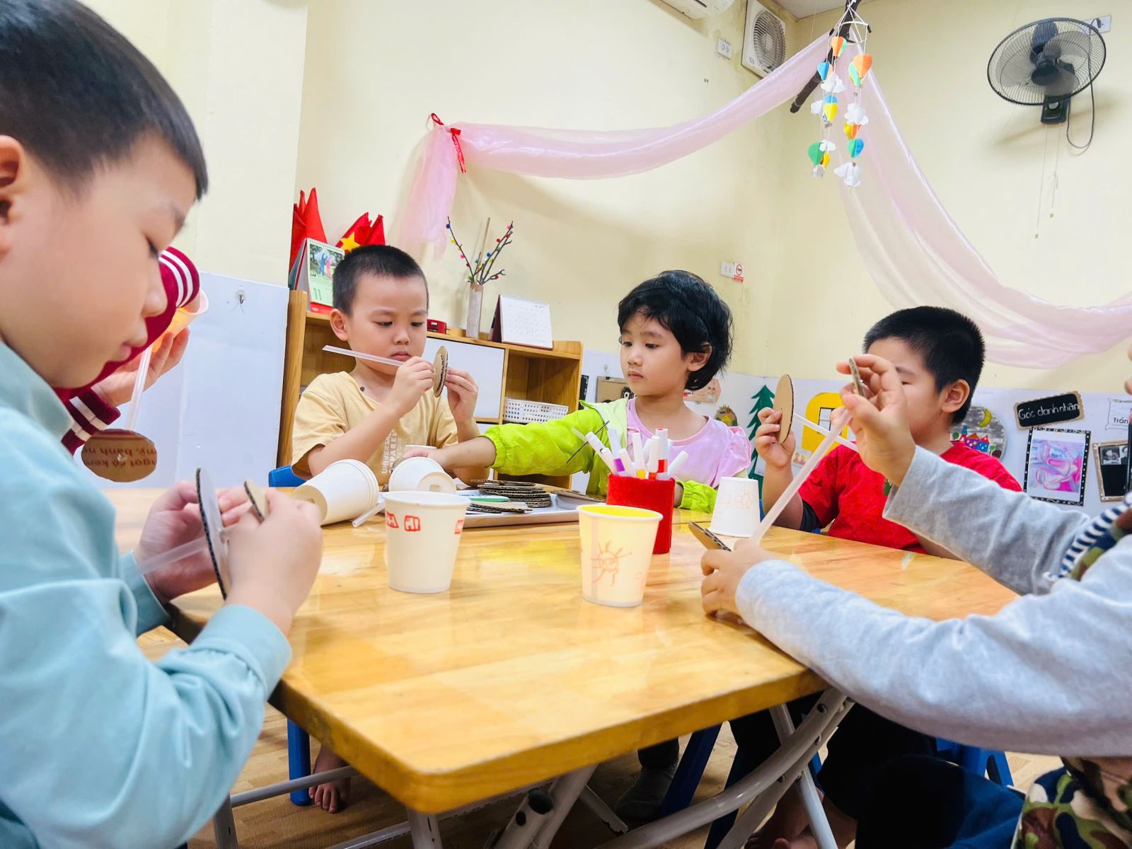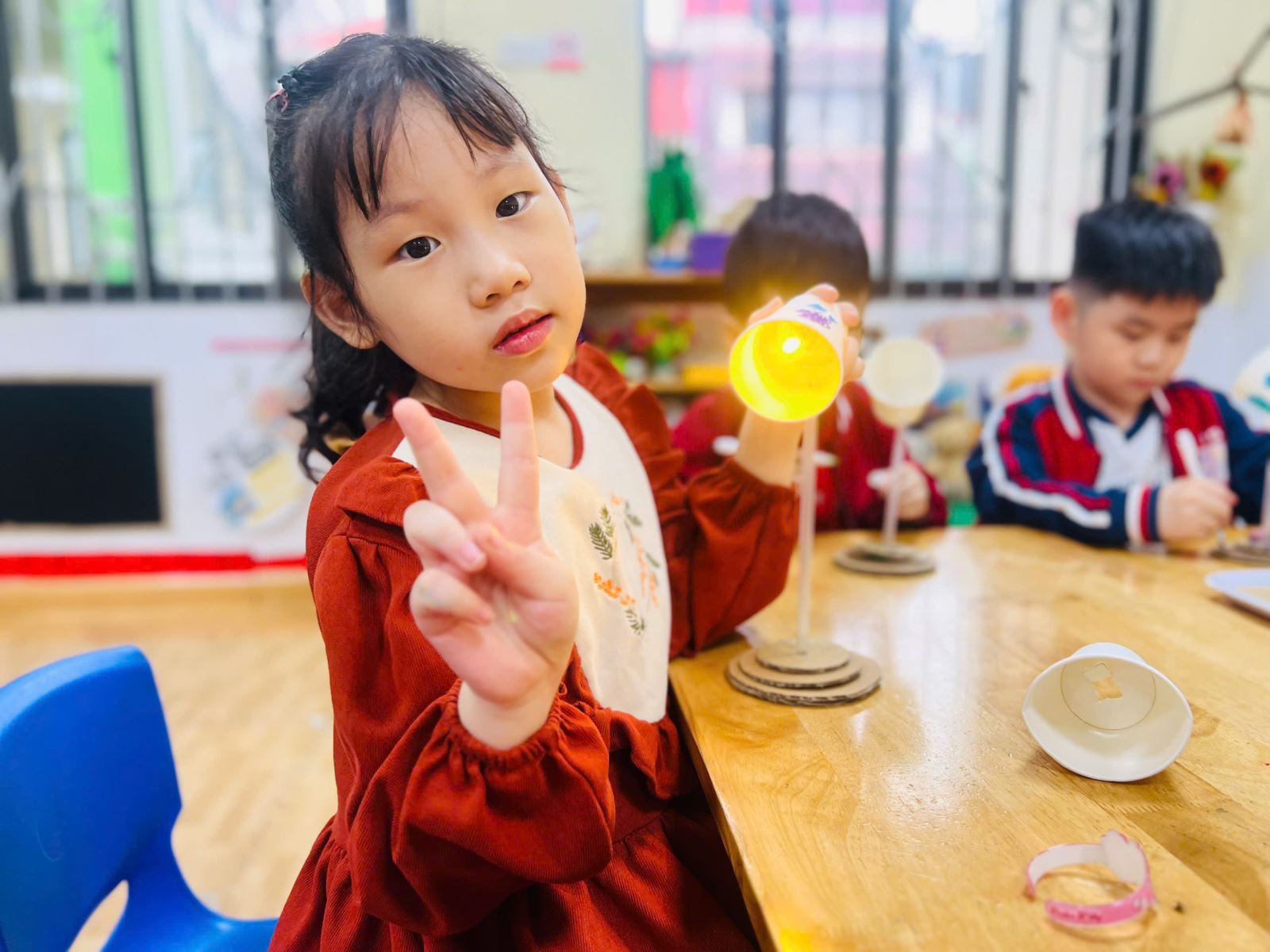 Dưới đây là một số hình ảnh trong buổi hoạt động làm đèn bàn: