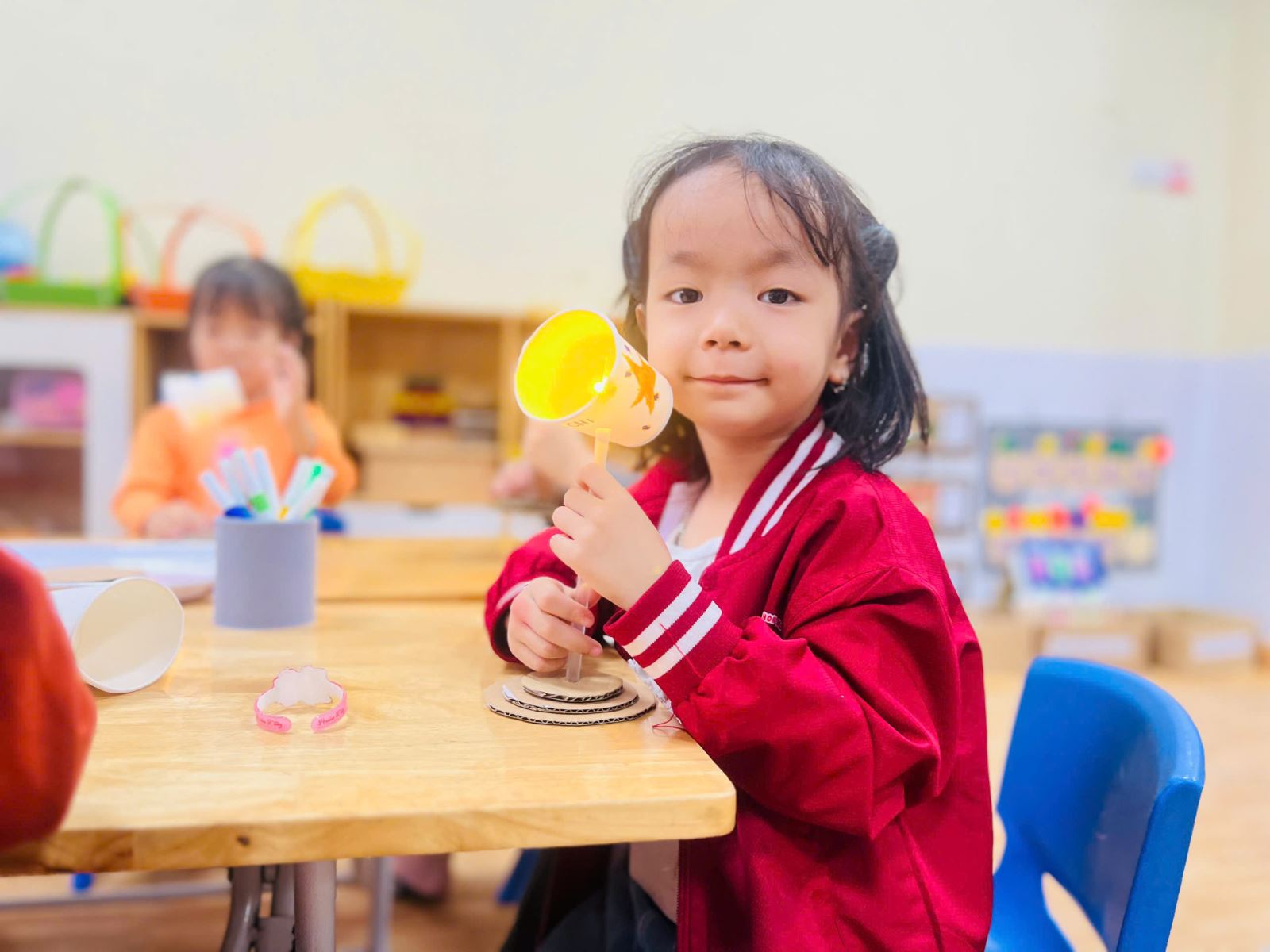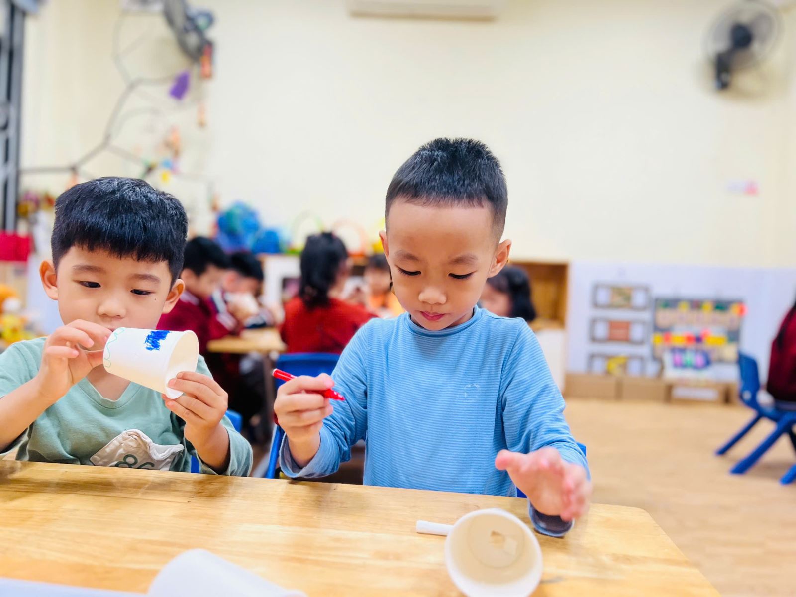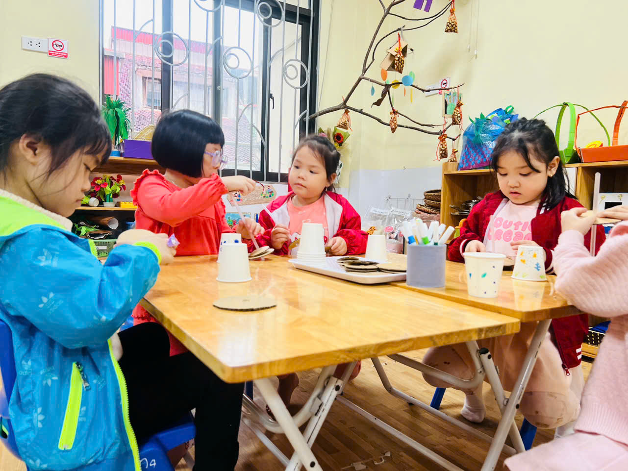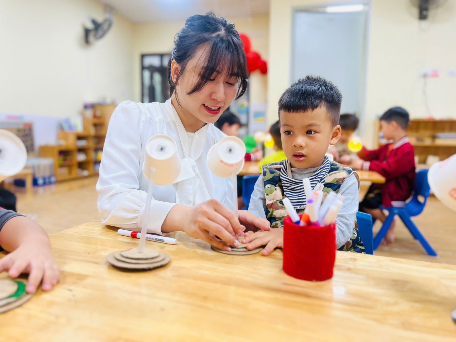 Dưới đây là một số hình ảnh trong buổi hoạt động làm đèn bàn: