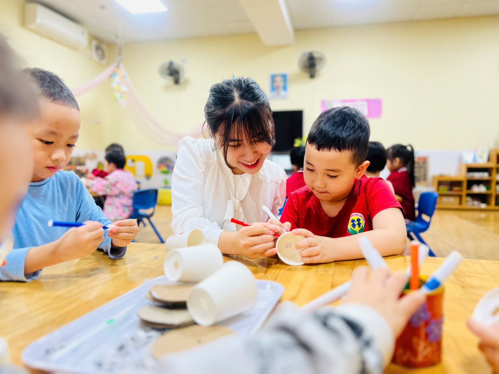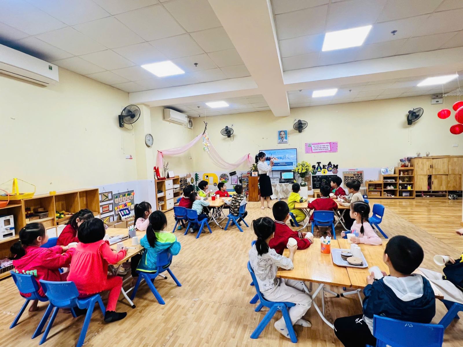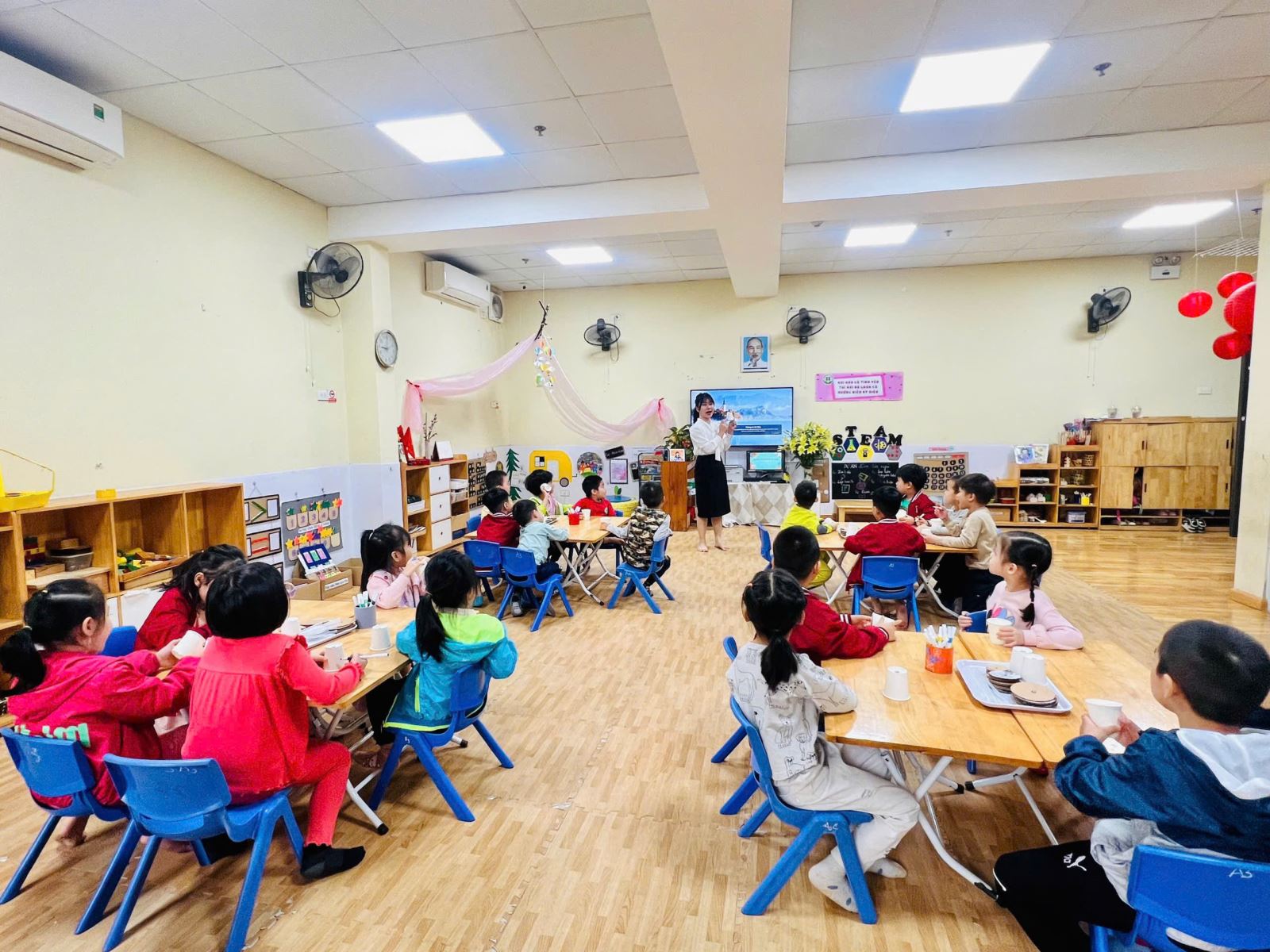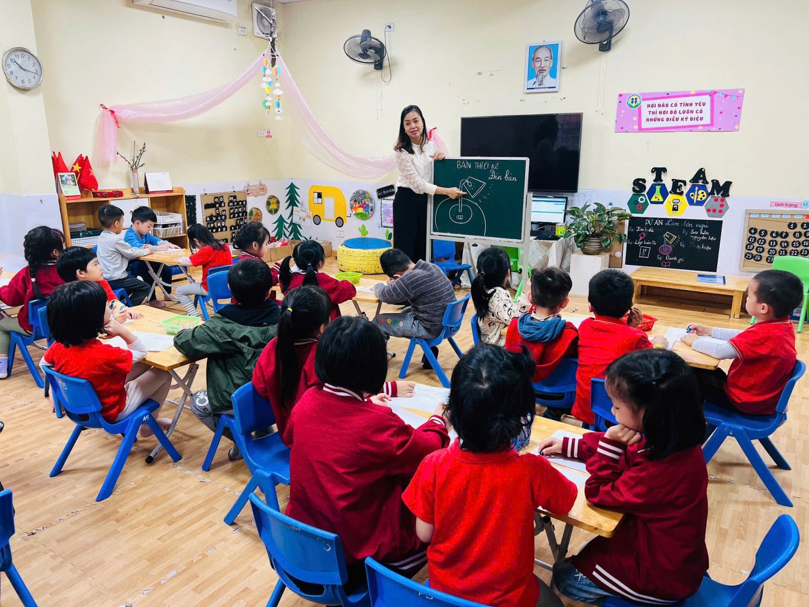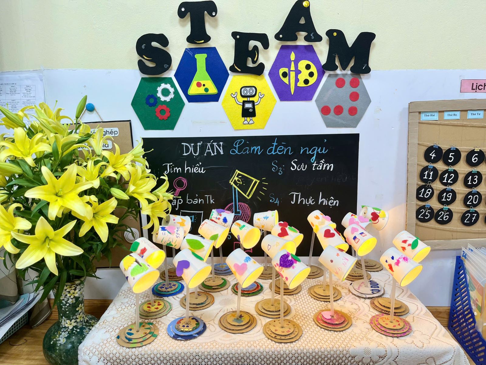 Hiểu được điều đó, các cô giáo lớp A4 đã xây dựng kế hoạch và lồng ghép nhiều hoạt động steam vào kế hoạch giáo dục, tham gia các hoạt động này trẻ sẽ được trực tiếp tự tay thiết kế, chế tạo, thí nghiệm, hoạt động nghệ thuật. Một trong số đó là hoạt động “ Làm đèn ngủ”, thông qua hoạt động này trẻ biết được cách làm việc nhóm, rèn sự tự tin mạnh dạn, tăng thêm hứng thú cho trẻ trong quá trình học tập.