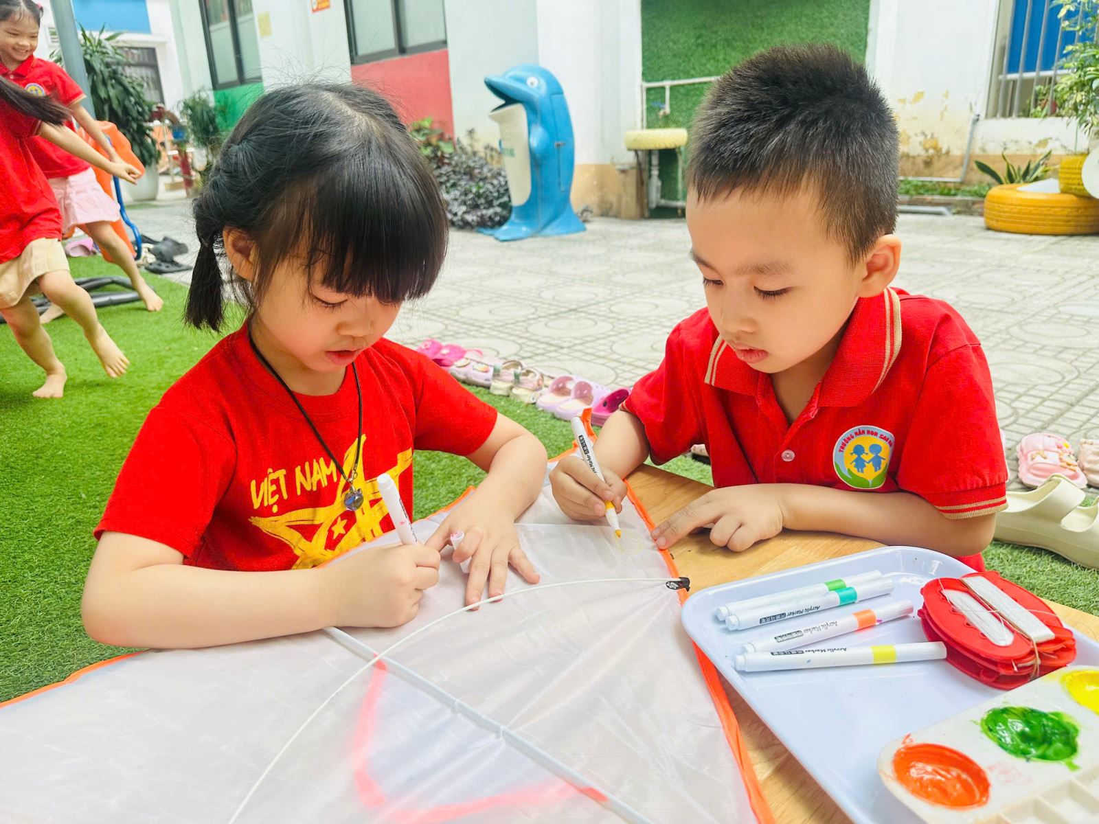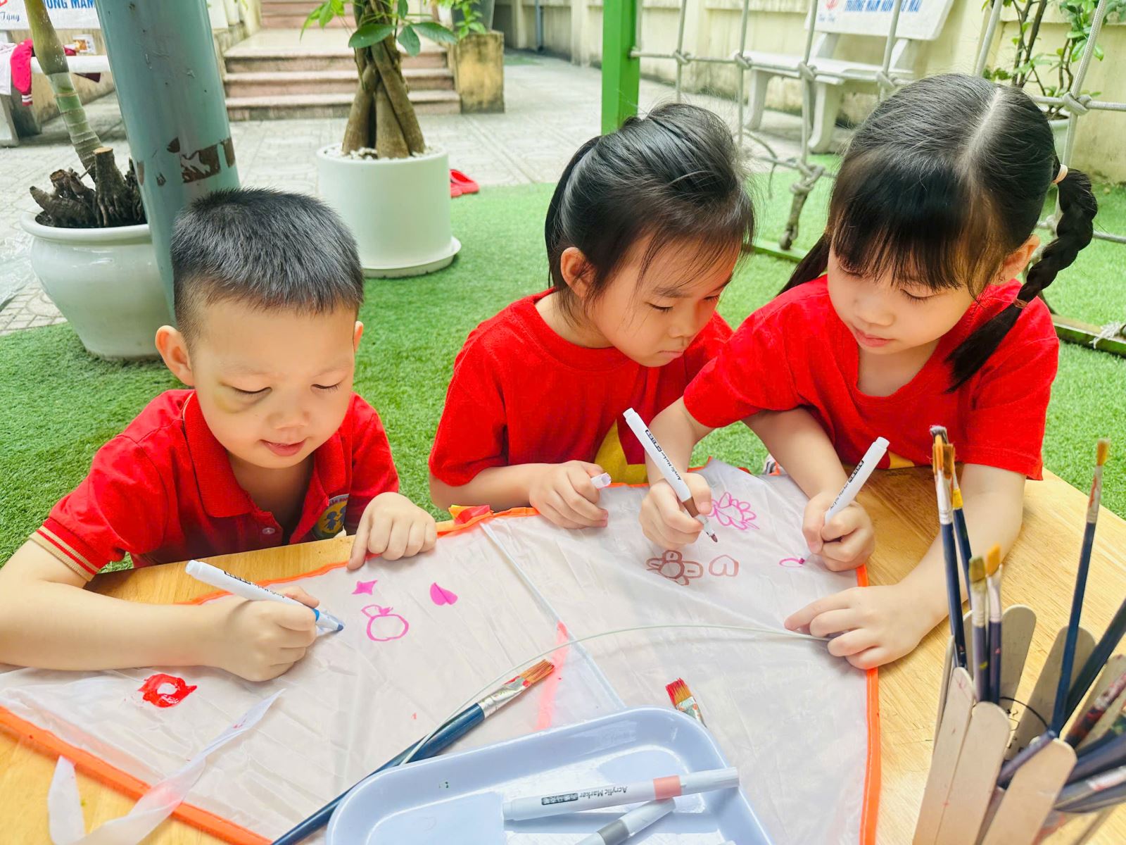 Trong hành trình khám phá này, các bạn nhỏ có cơ hội được thử sức với hoạt động trang trí và chơi với các loại diều làm từ giấy. Để giúp các bạn nhỏ hiểu rõ hơn về trò chơi đơn giản và hấp dẫn này, cô trò lớp A4 đã cùng nhau trang trí những chiếc diều thật xinh và cùng nhau chạy thả trên sân thật vui.